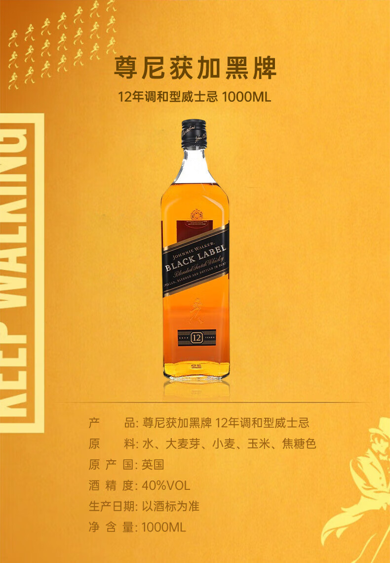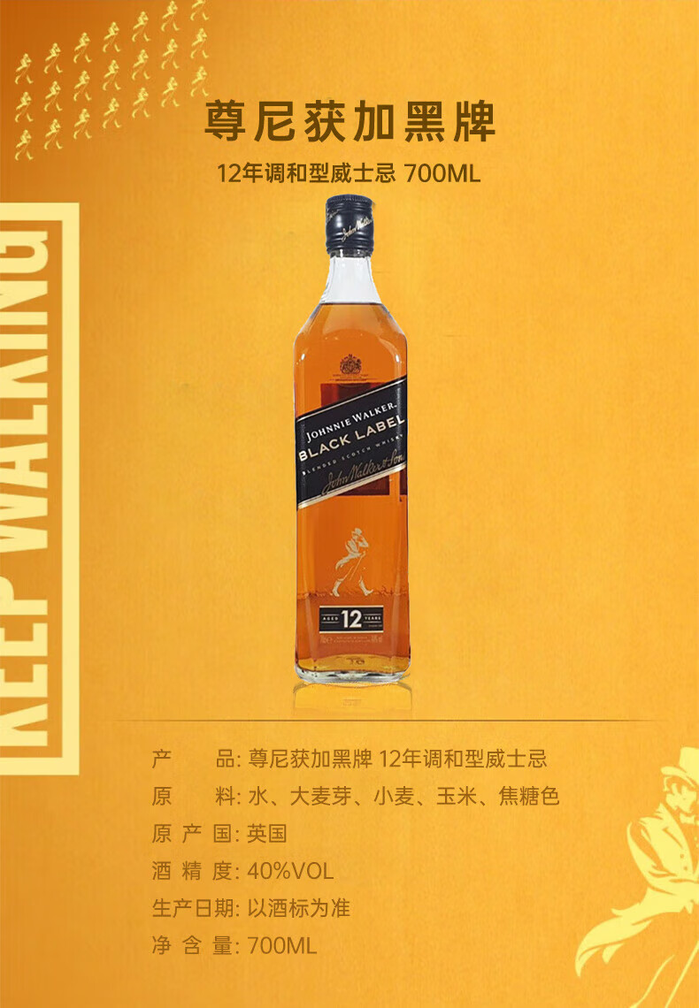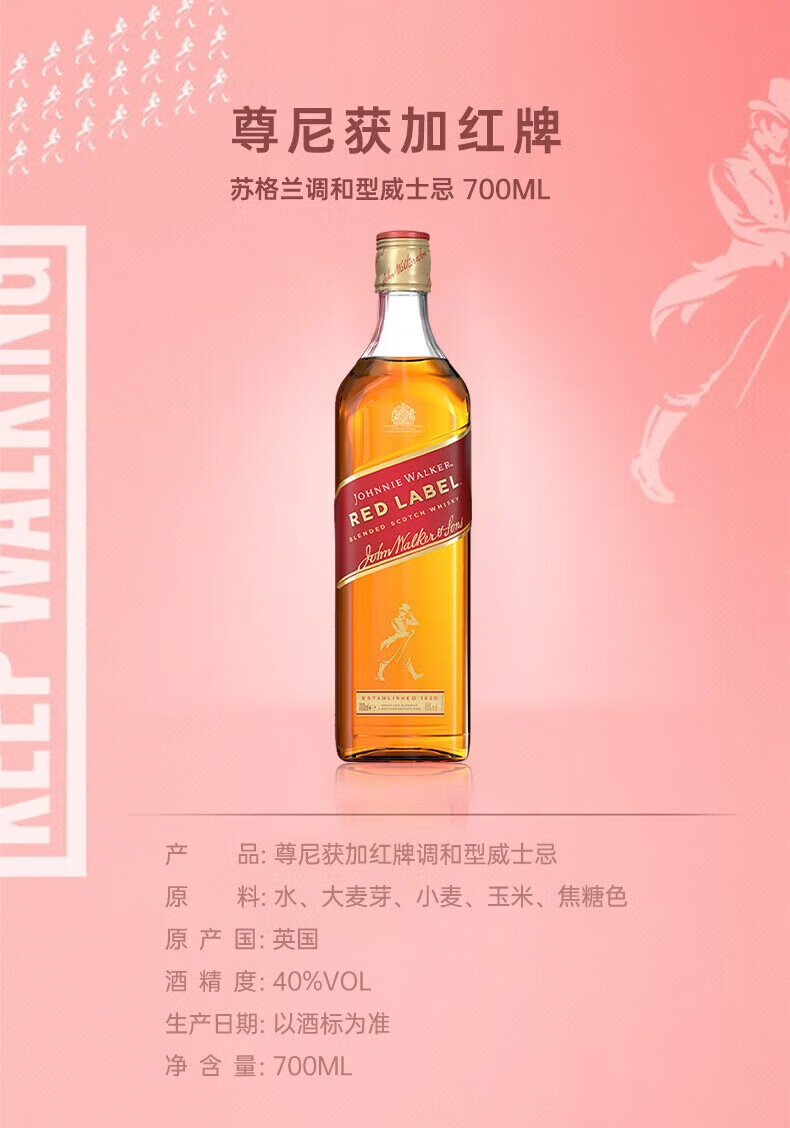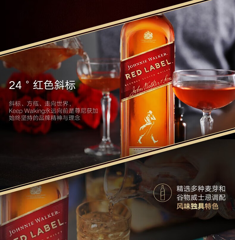 尊尼获加(JOHNNIE WALKER)黑牌/红牌/绿牌金方金牌蓝牌苏格兰调和威士忌节进口洋酒尊尼获加 红方红牌 700ml