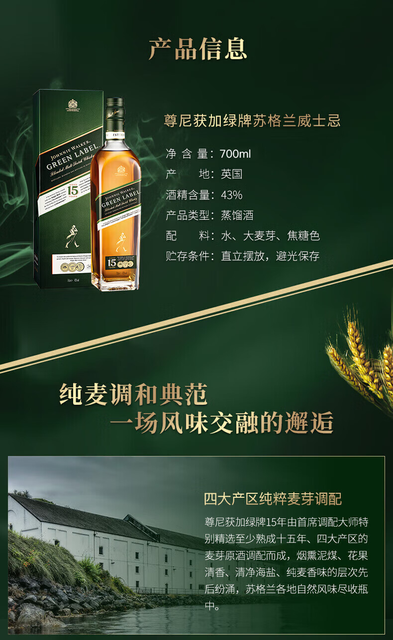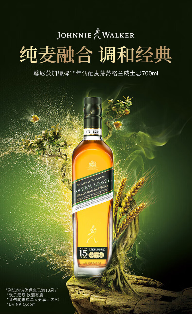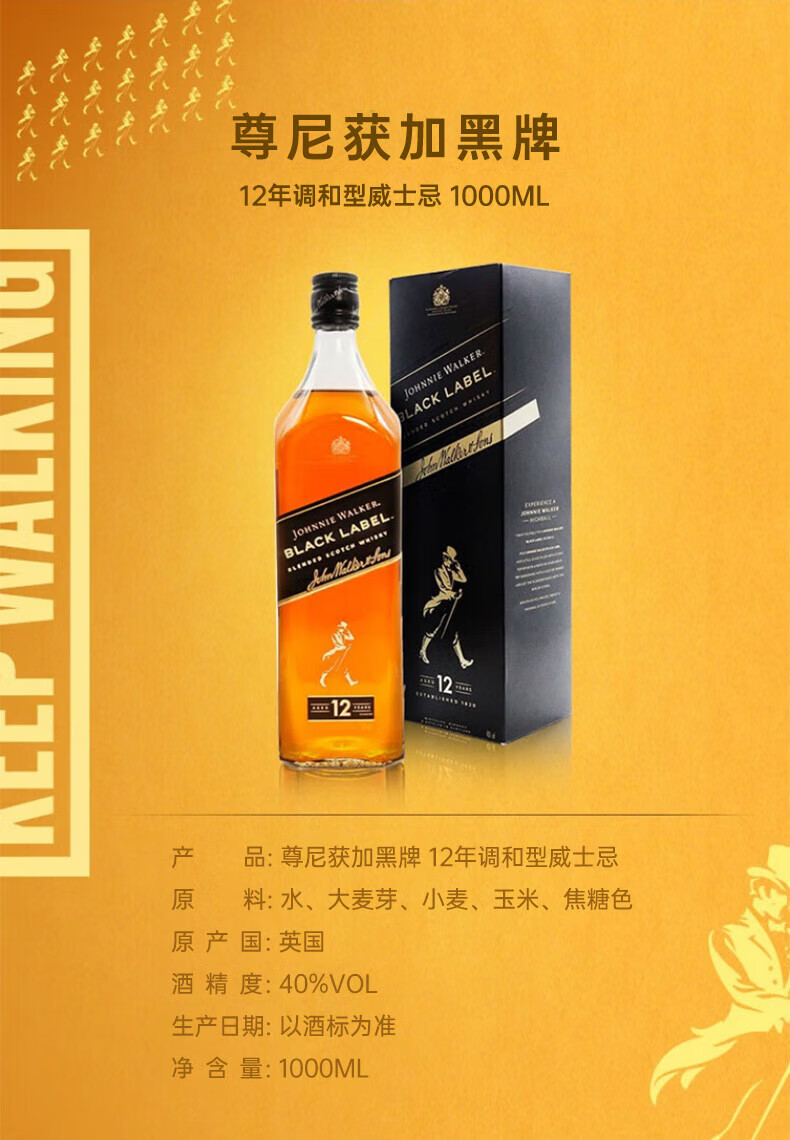 尊尼获加(JOHNNIE WALKER)黑牌/红牌/绿牌金方金牌蓝牌苏格兰调和威士忌节进口洋酒尊尼获加 红方红牌 700ml