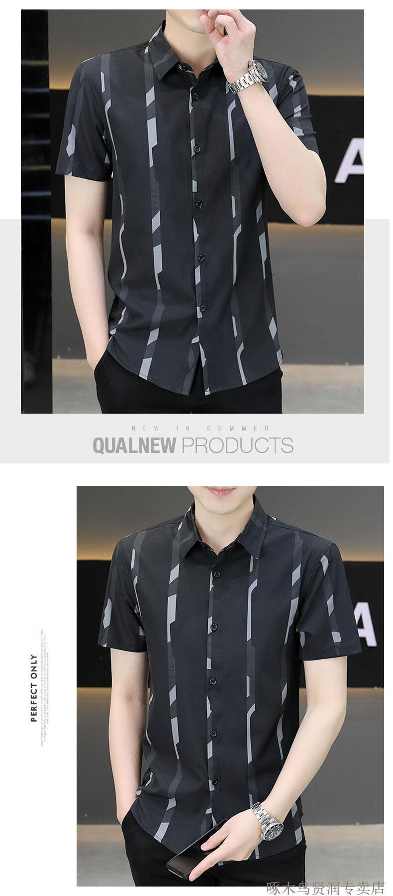 Woodpecker (TUCANO) Nouvelle chemise à manches courtes pour hommes d'été 2025 Tendance et belle chemise fine et fraîche en soie glacée 7027 Noir XL 125-140Jin Jin est égal à 0,5 kg