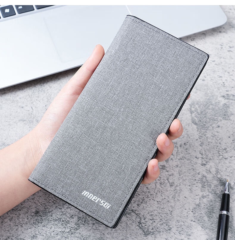 芸洛七夕钱包男款长款零钱包耐用青少年钱夹多卡位休闲西装包卡包 灰色