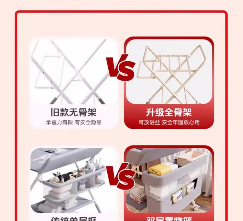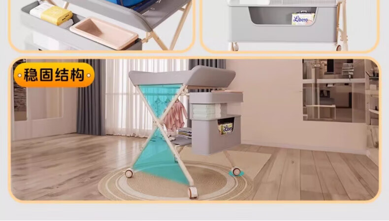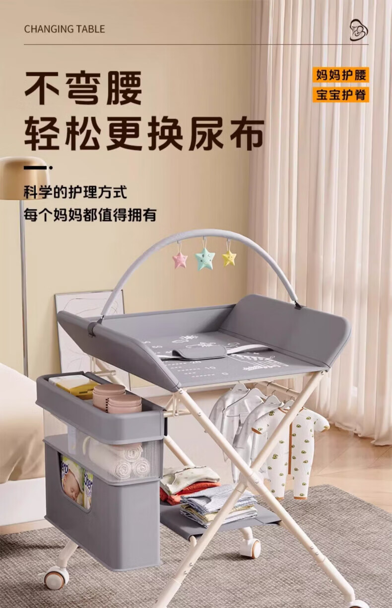 WCZ Table de soins pour bébé de qualité japonaise table à langer pliable massage de bain pour nouveau-né table tactile multifonctionnelle gris Plus modèle préféré - cadre amélioré (support à jouets + panier de rangement double couche