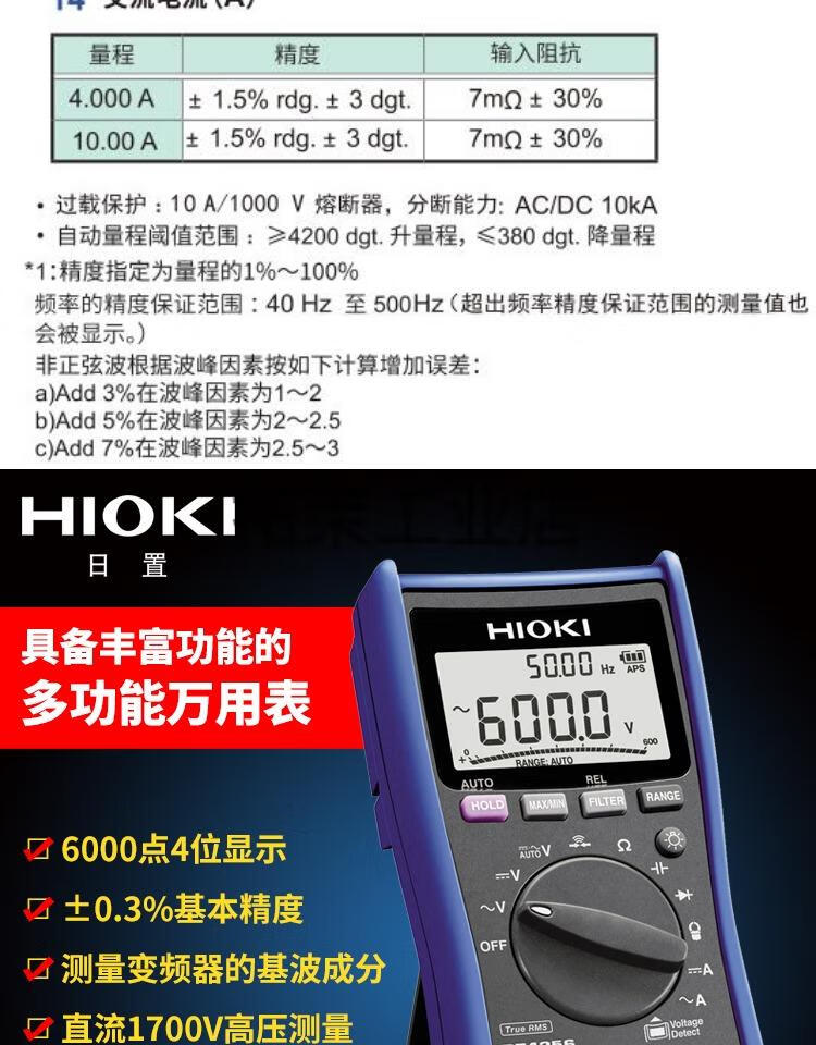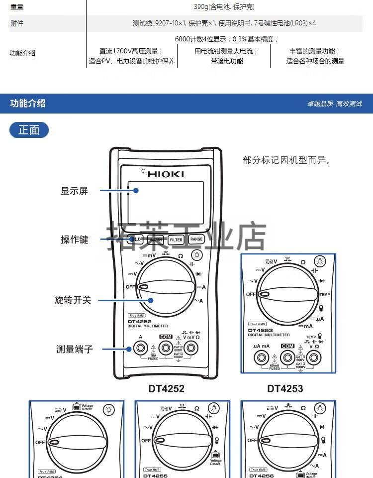 日置(HIOKI)日本DT4215日置万用表DT4222自动进口DT4254光伏1700V 线L9207-10