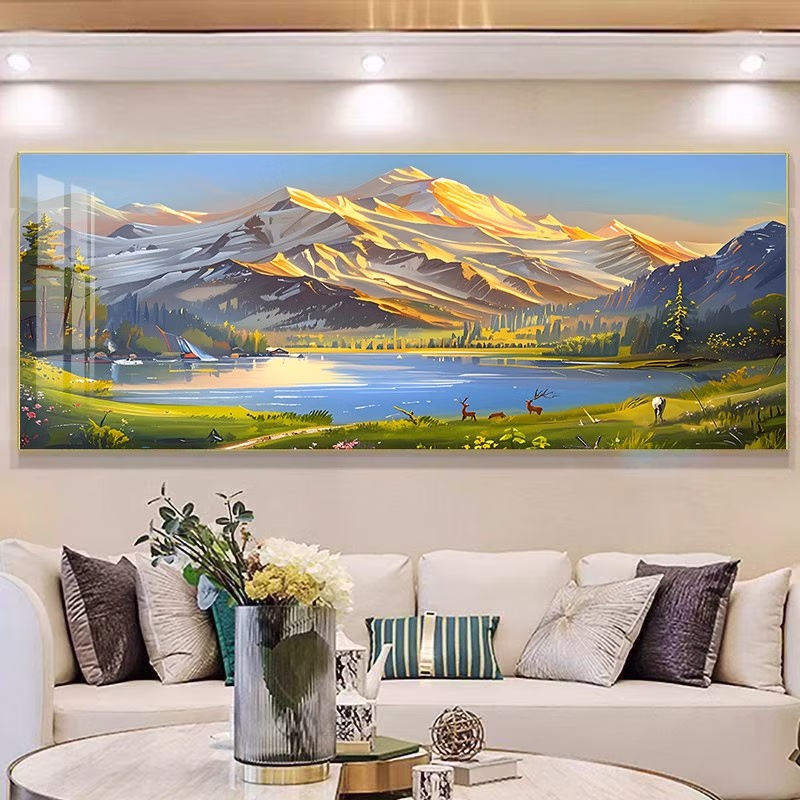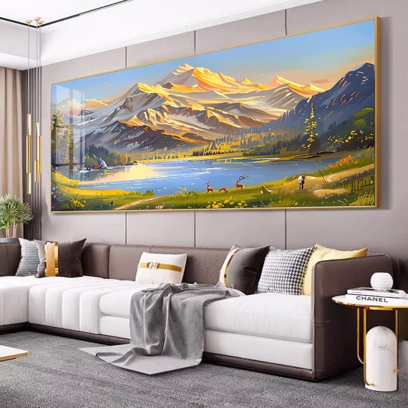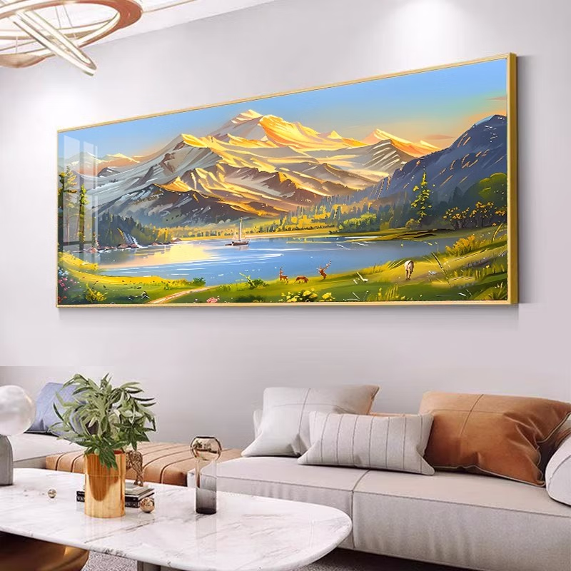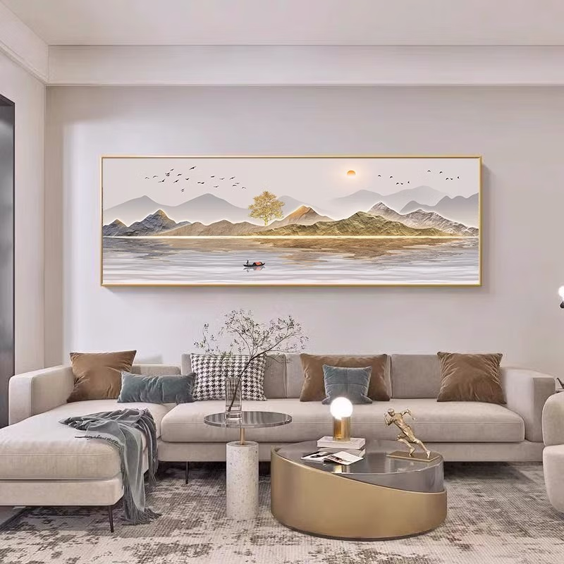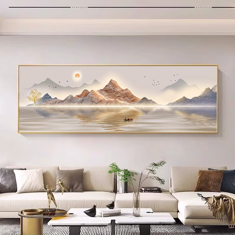LNGA LANDGRE moderne lumière luxe salon décoration peinture soleil levant canapé fond tenture murale peinture bonne signification paysage peinture horizontale T12178 240*80 CM