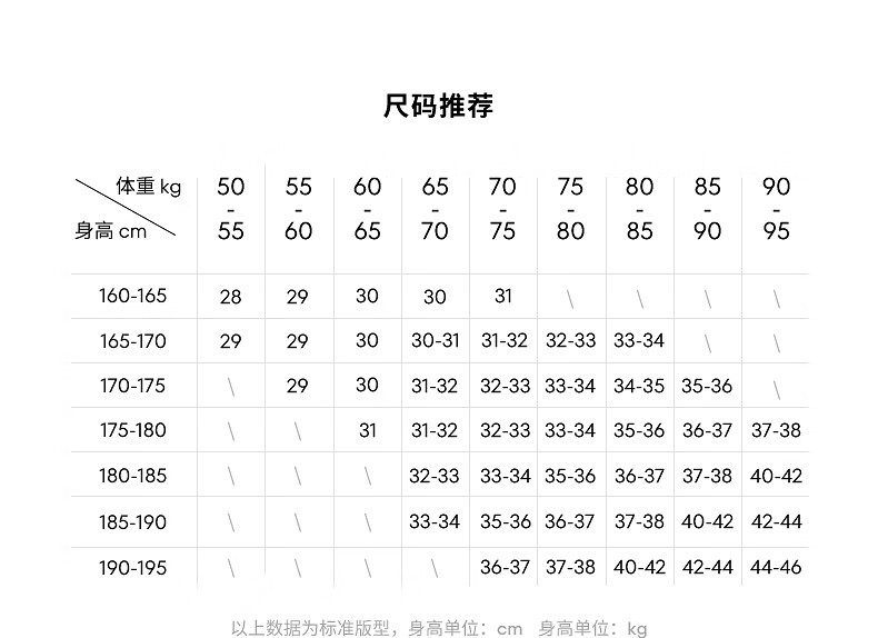 China (cm) 160-165/84-86 165-170 / 88-90 167-172 / 92-96 168-173 / 98-102 170-176 / 106-110