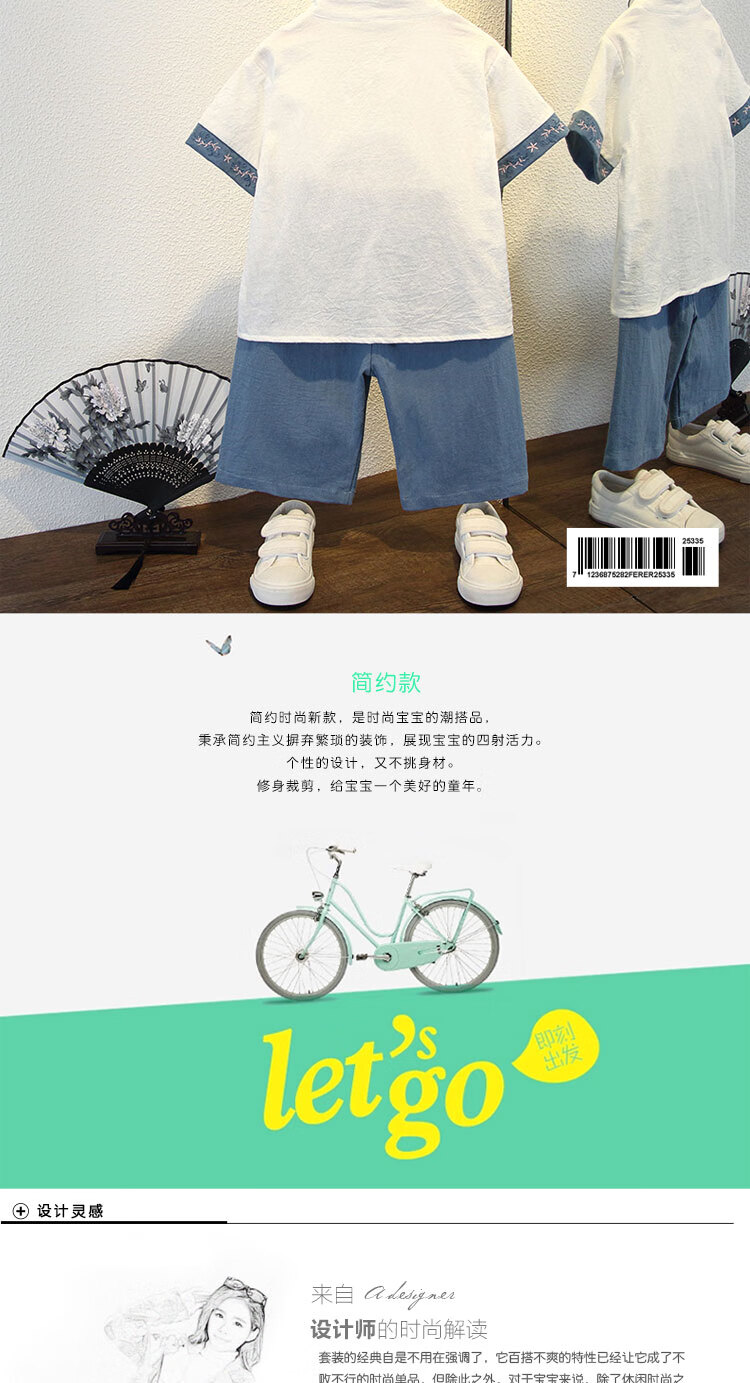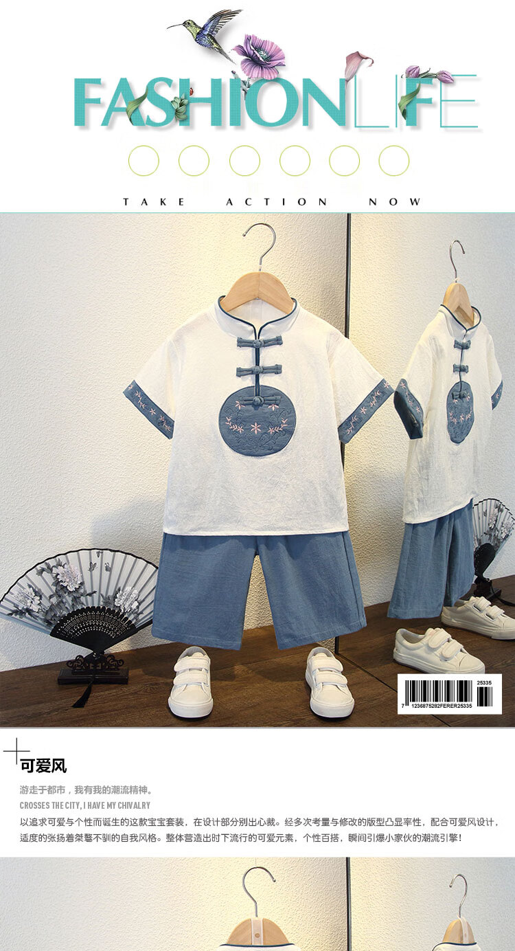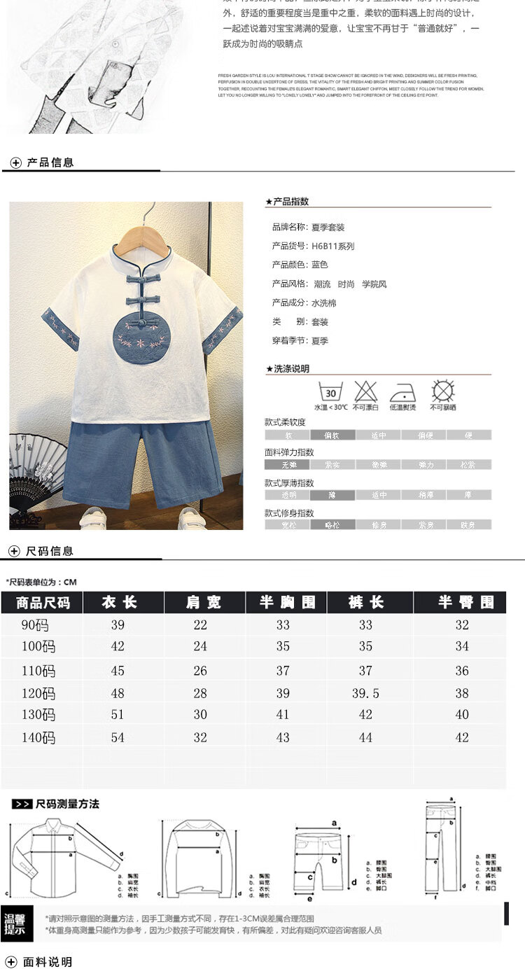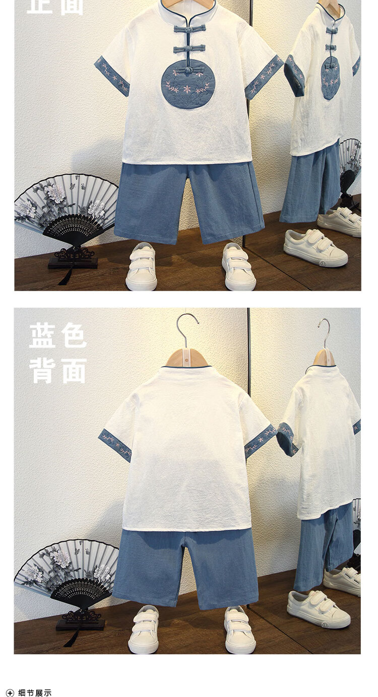 Traje Tang para niño Traje de verano de manga corta Vestido de estilo chino Hanfu para niños Ropa fina de algodón y lino para niños Conjunto de dos piezas Traje Xiaoyaolong azul 130