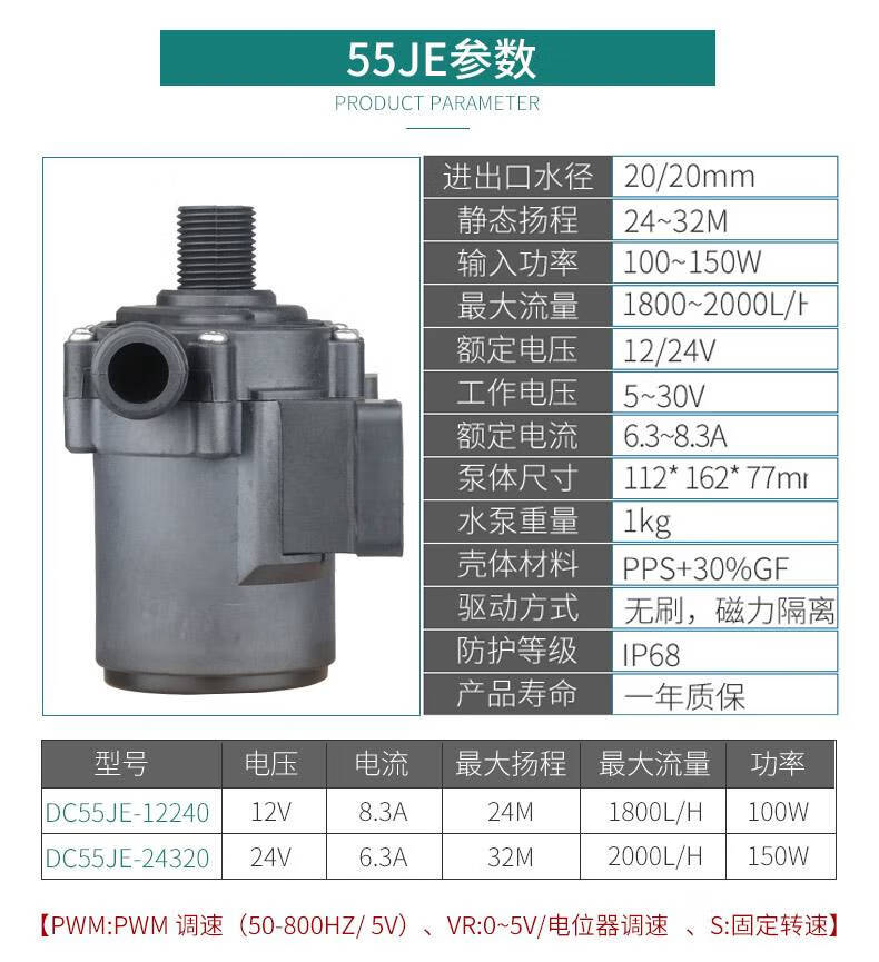 倪之尔定制中科12V/24V微型直流无刷32m高扬程家用供暖循热水循环泵DC55 DC55JE-12240外置调速(带保护)