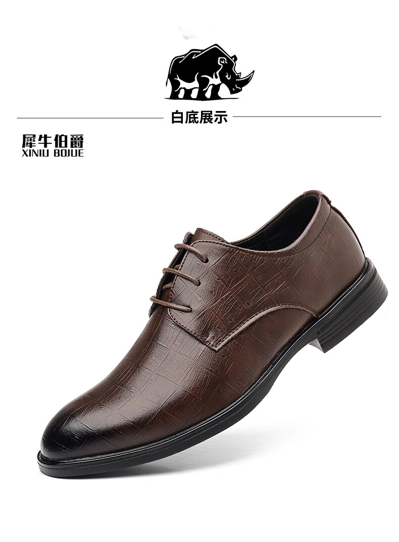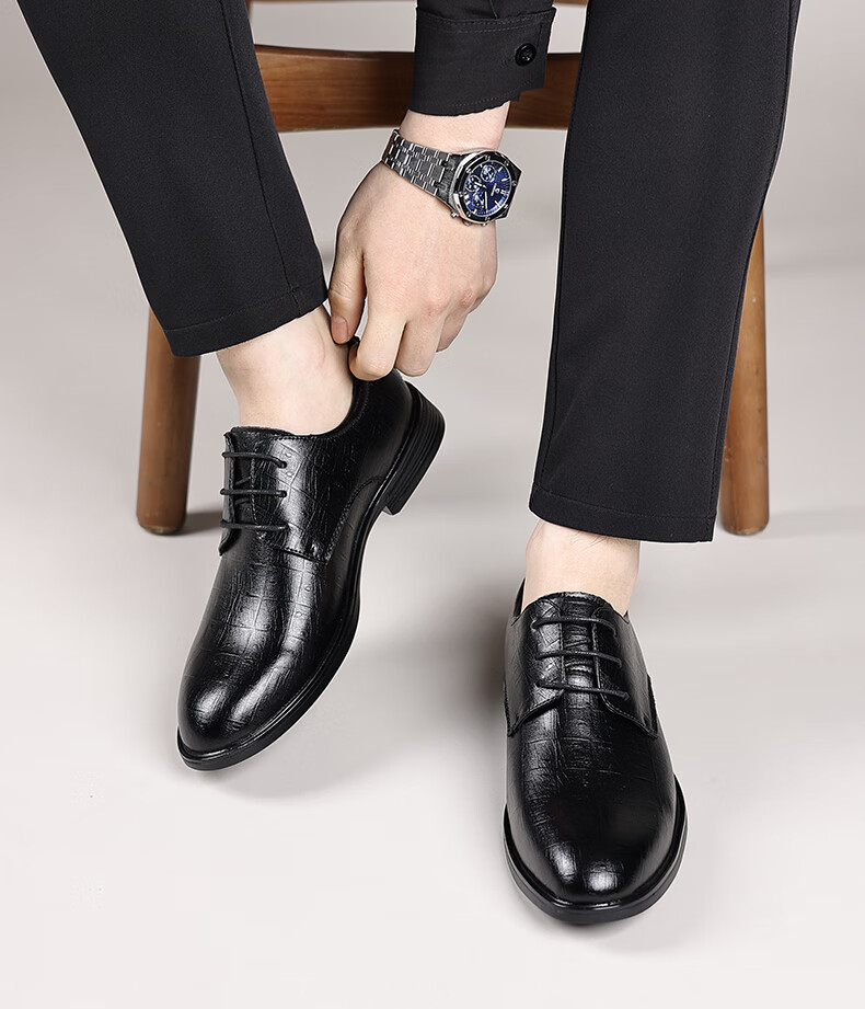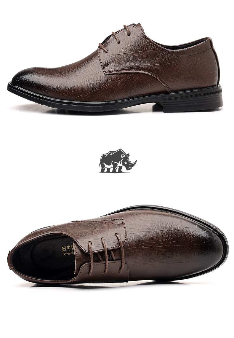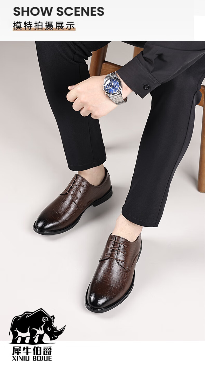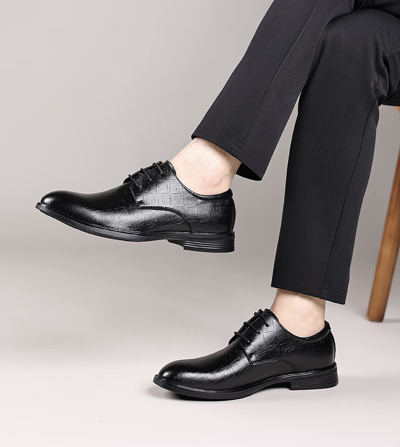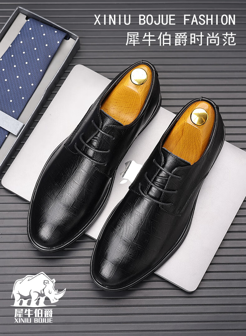 Earl Rhinoceros Men's Leather Shoes Men's Business Formal Genuine Leather Low-top Men's Shoes British Pointed Groom Wedding Derby Shoes Large Size 1369 Black Height Increased 7cm 40