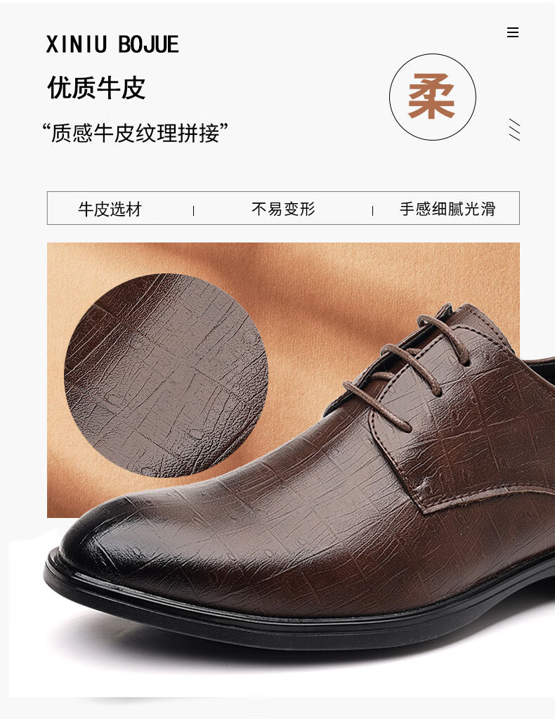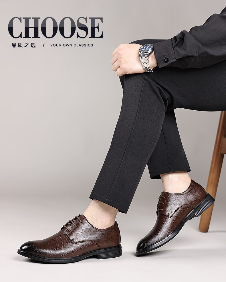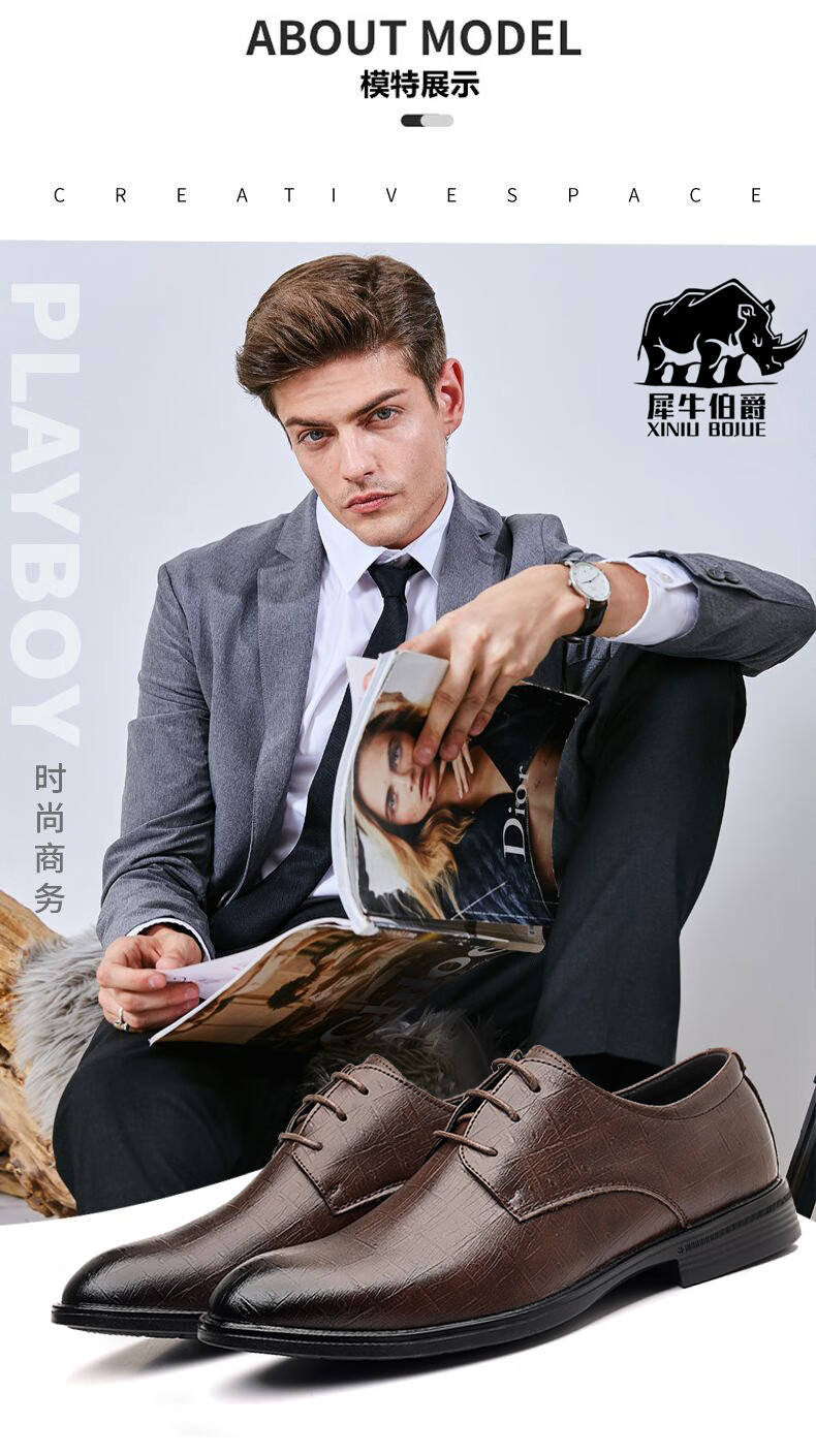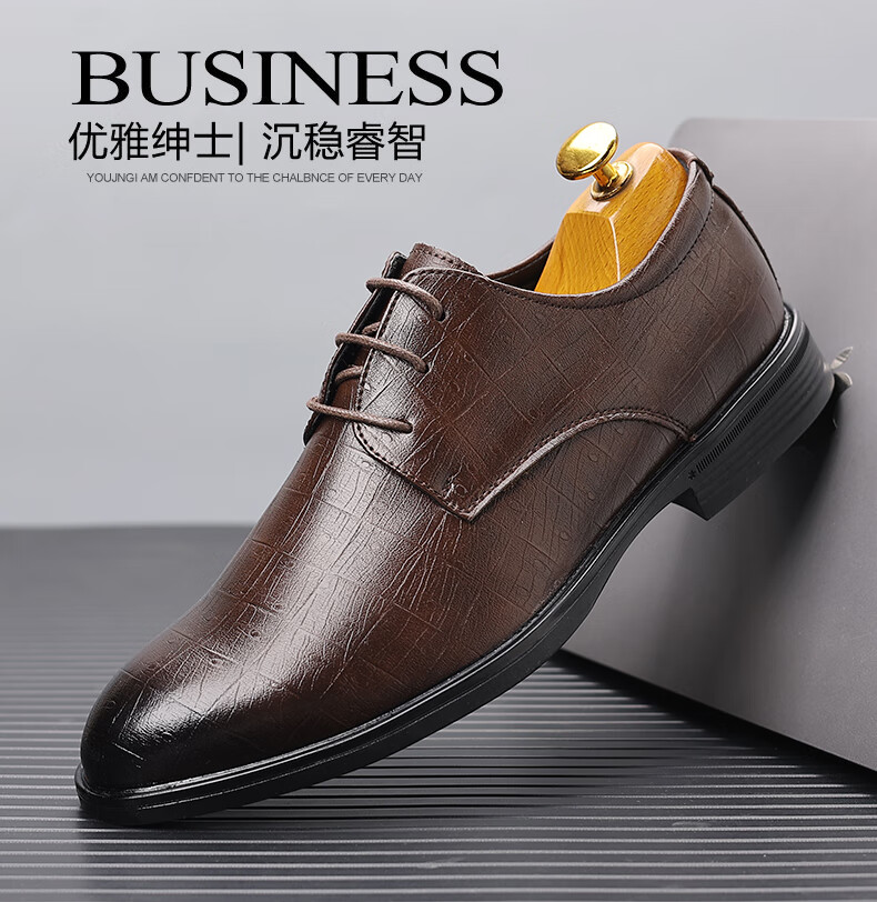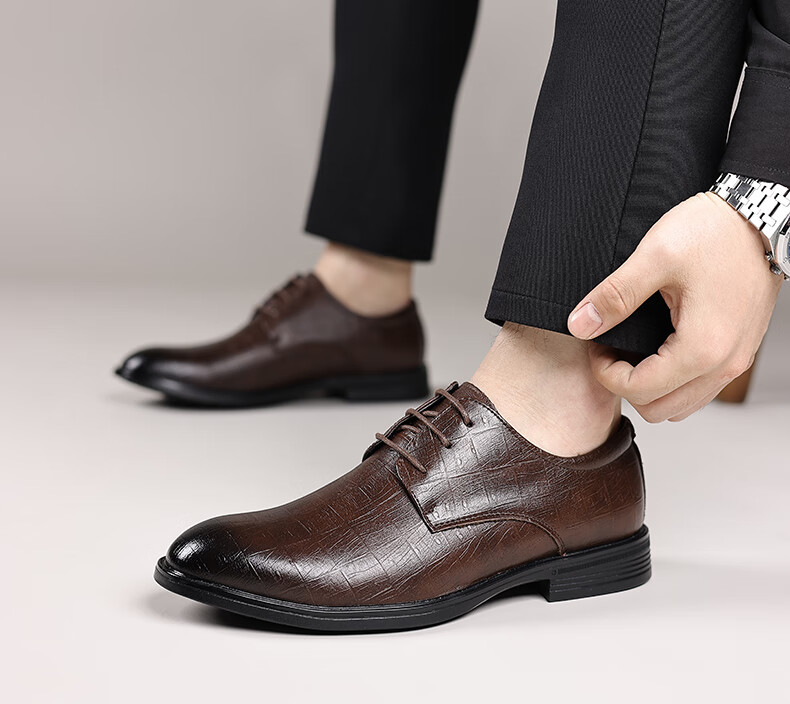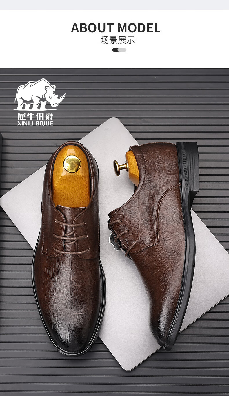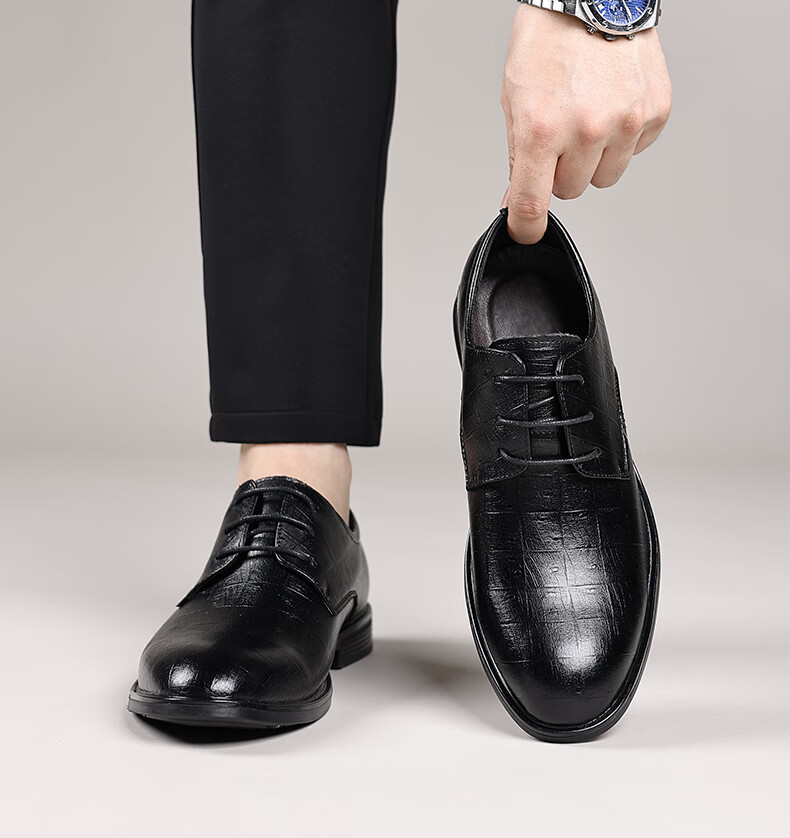 Earl Rhinoceros Men's Leather Shoes Men's Business Formal Genuine Leather Low-top Men's Shoes British Pointed Groom Wedding Derby Shoes Large Size 1369 Black Height Increased 7cm 40