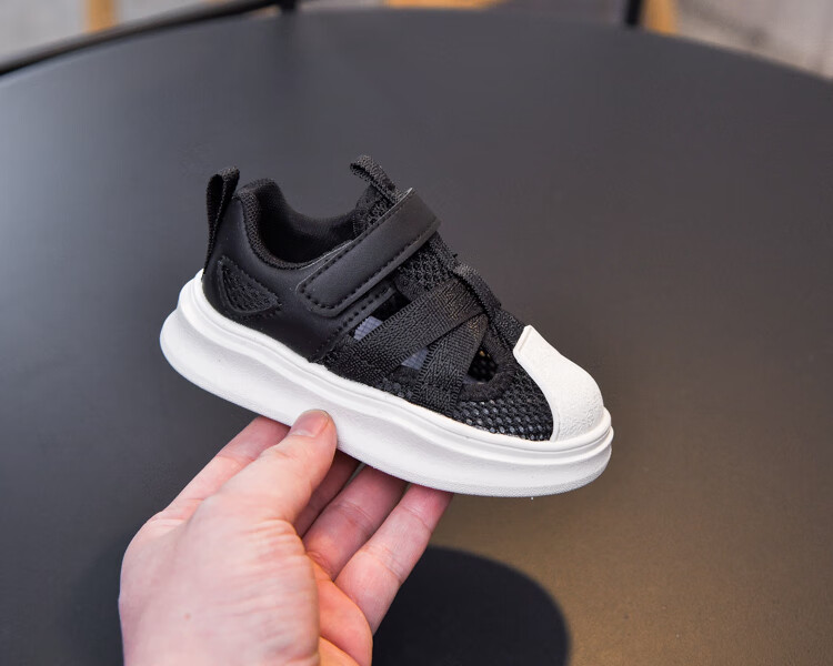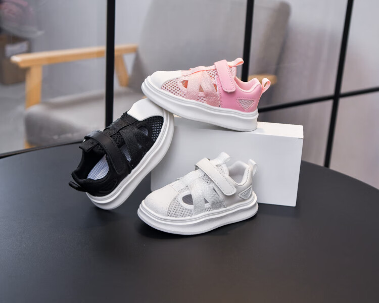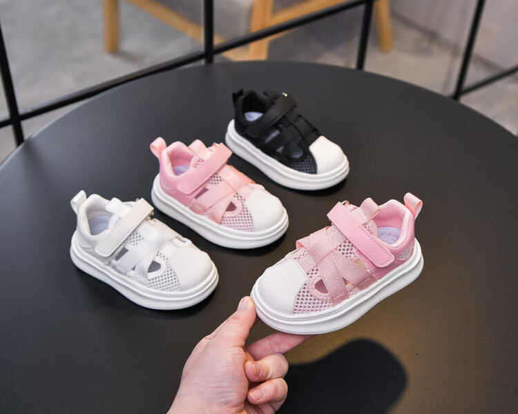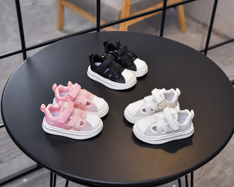 Sandalias para niño con puntera, malla transpirable, suela blanda, antideslizante, velcro ligero, nuevos zapatos de verano para niños pequeños y medianos, blanco SSL-2677 27, largo interior 16,5 cm