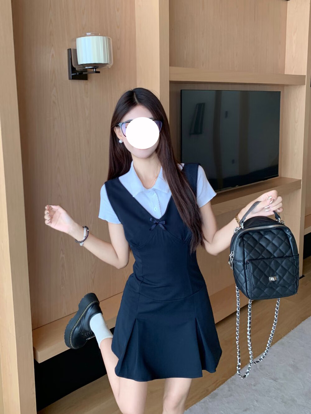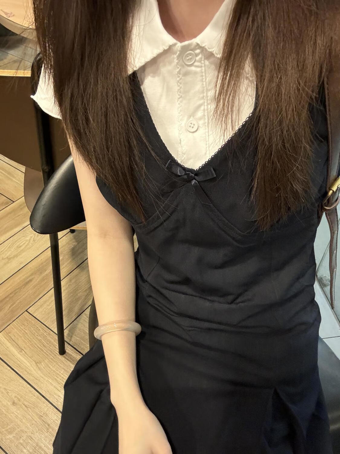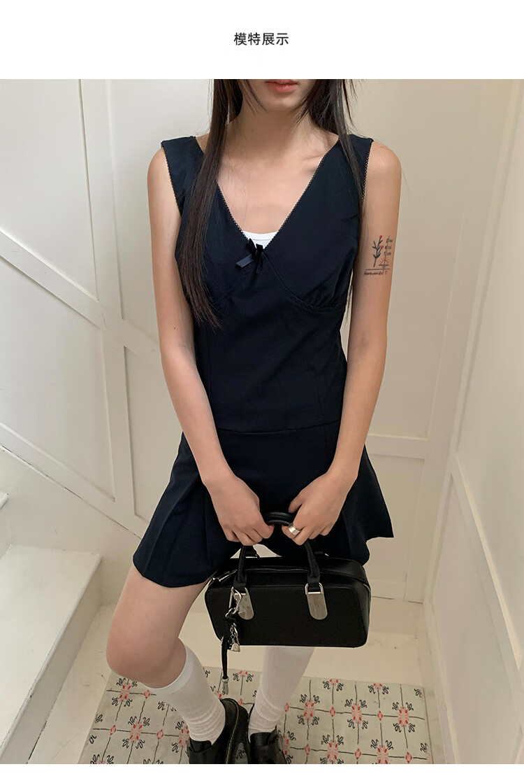 乐卡利学院风套装韩系无袖背心连衣裙吊带夏内搭白短袖T恤上衣A字短裙子 学院风套装【白上衣+背心裙】 L (115斤内)