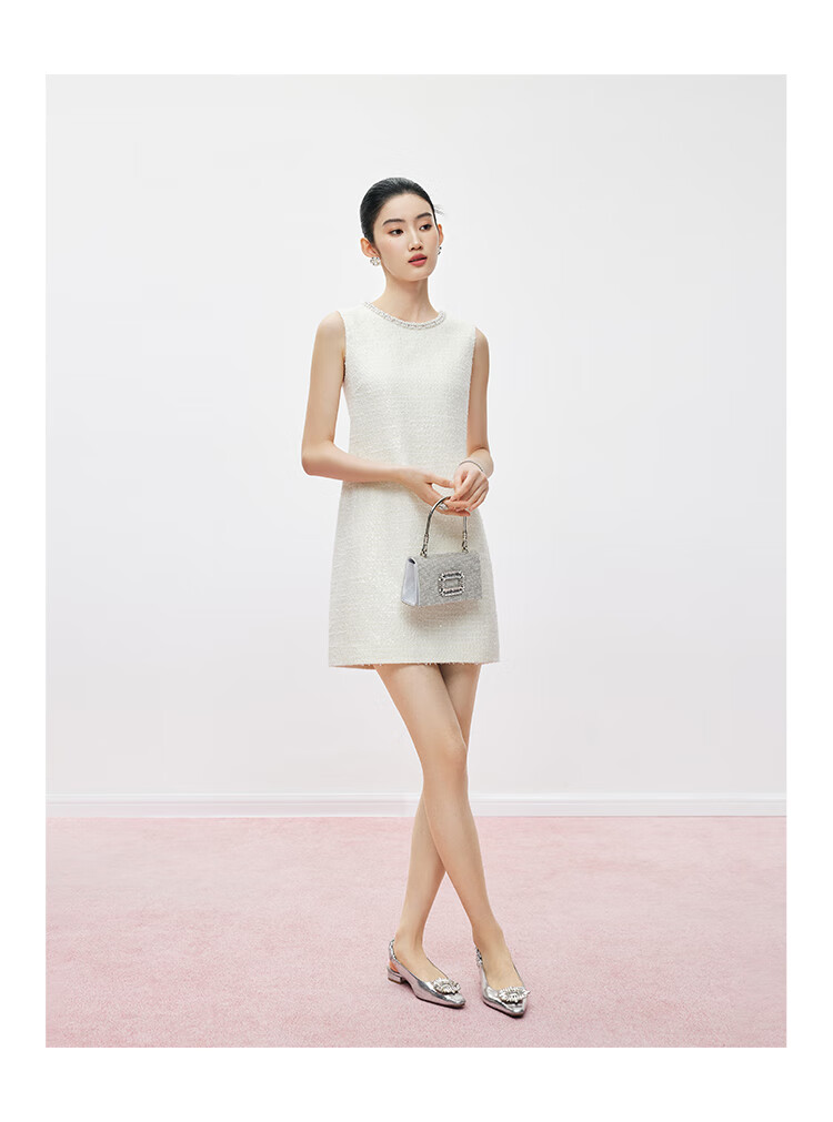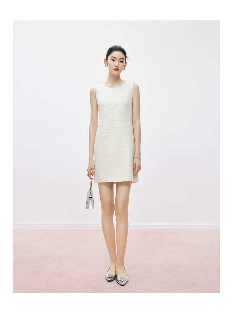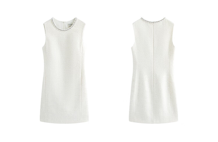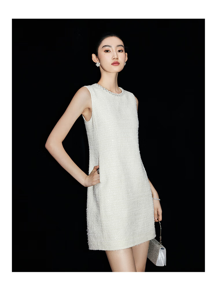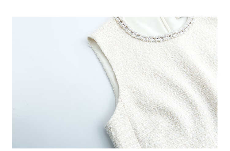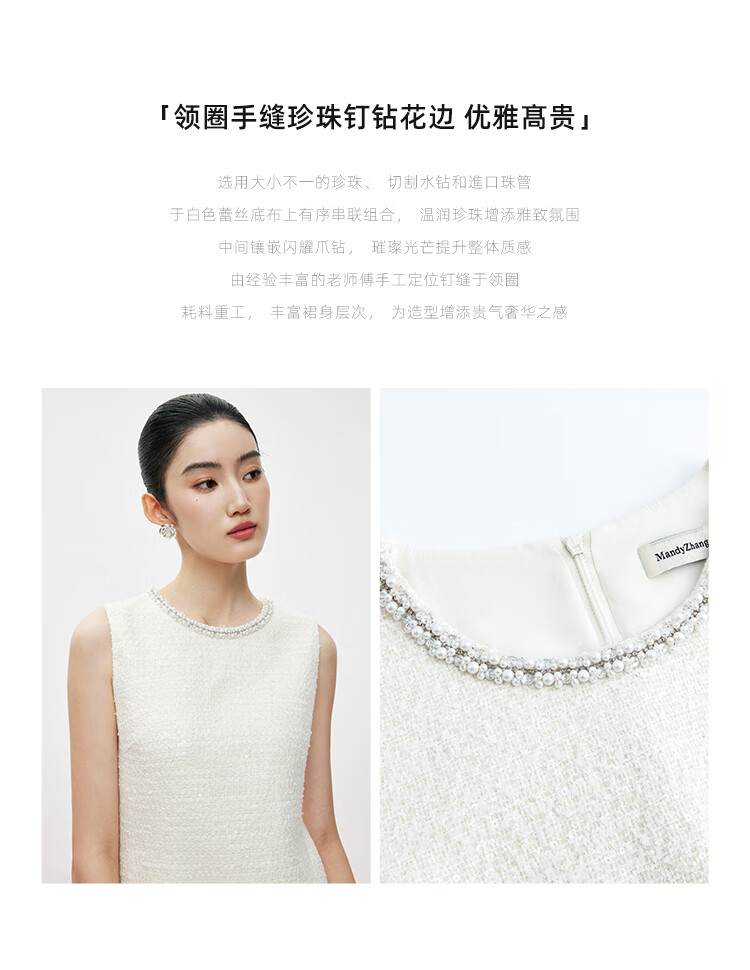 Mandy Zhang white daughter-in-law style beaded diamond collar vest dress women's summer temperament dress short skirt Gardenia White S