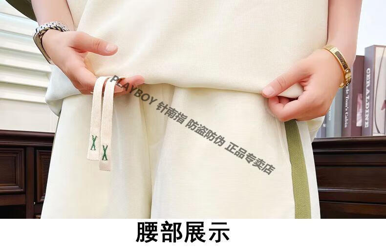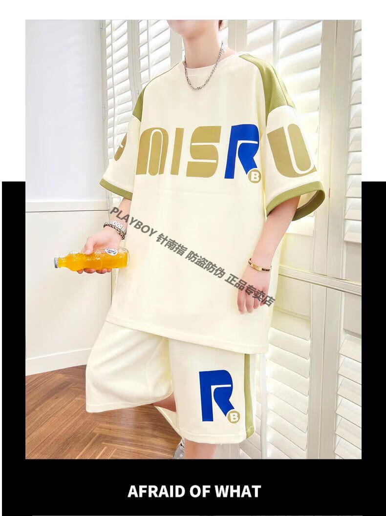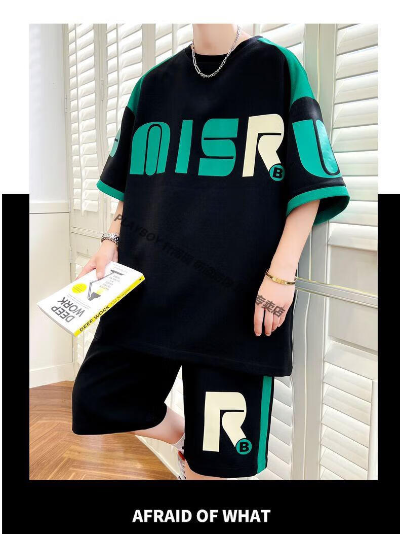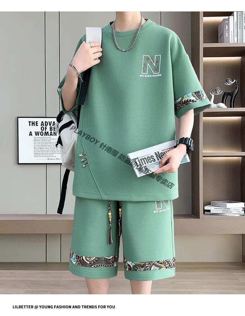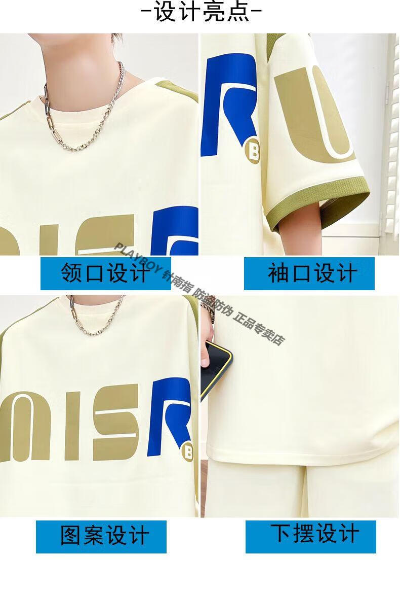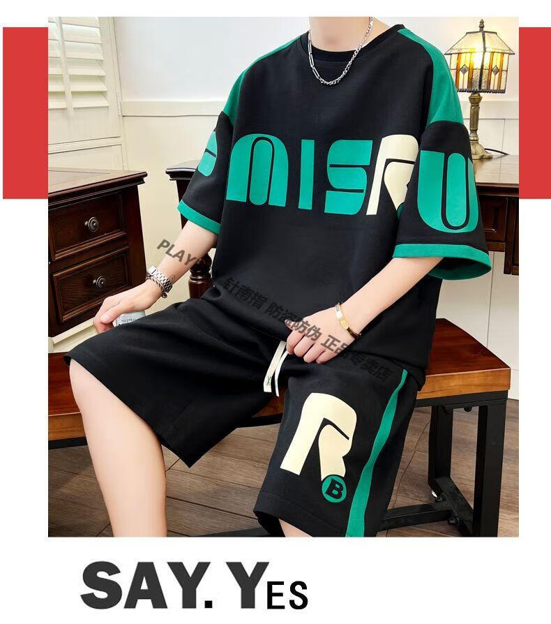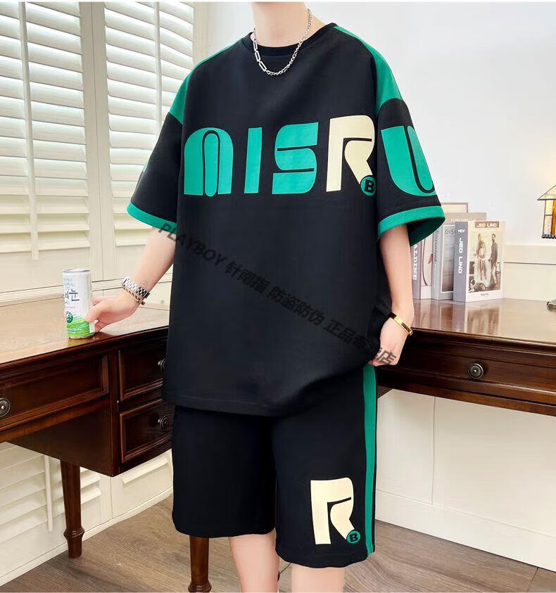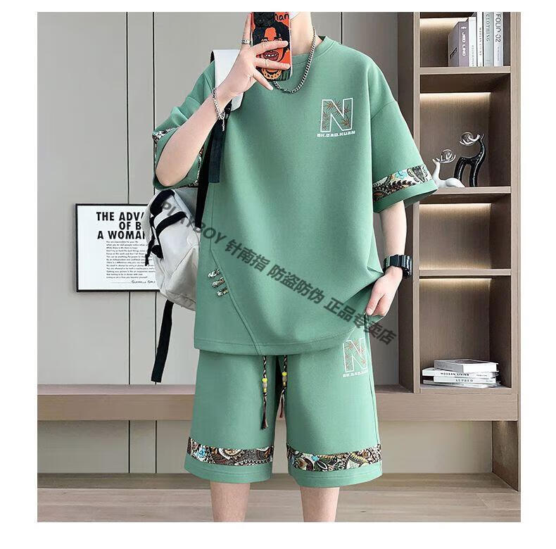 花花公子(PLAYBOY)短袖短裤套装男夏季潮流男款一套男士休闲运动男装一整套夏装 YYW6195绿色套装 品质保证 4XL 建议180-200斤