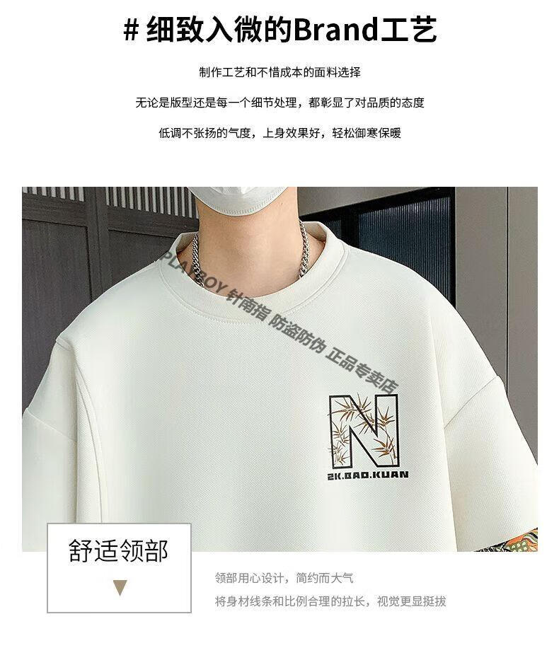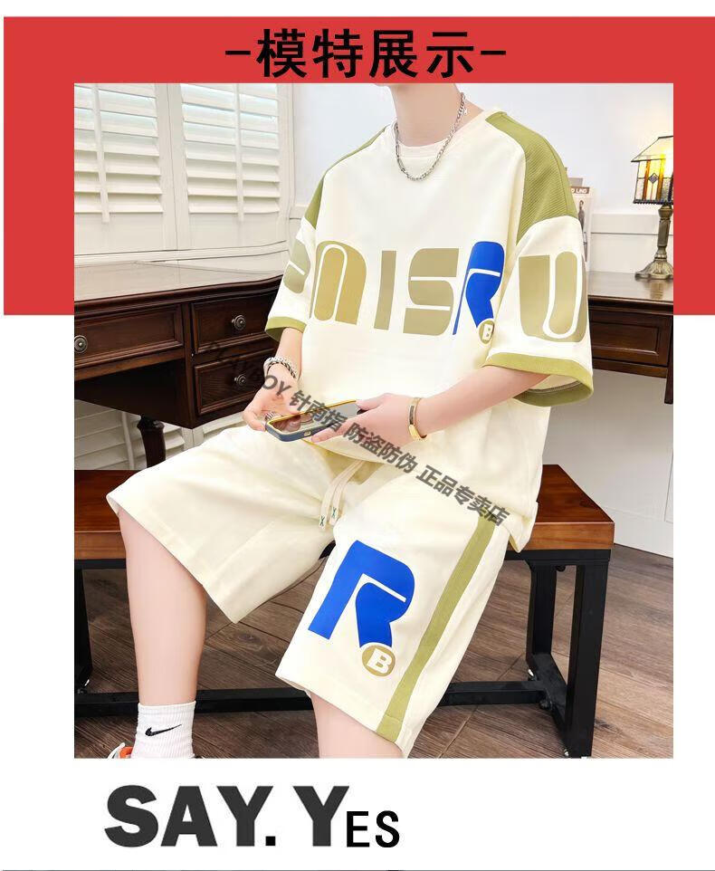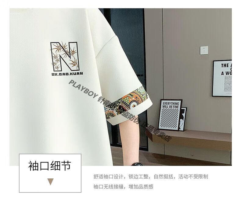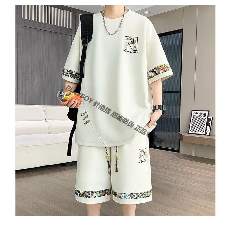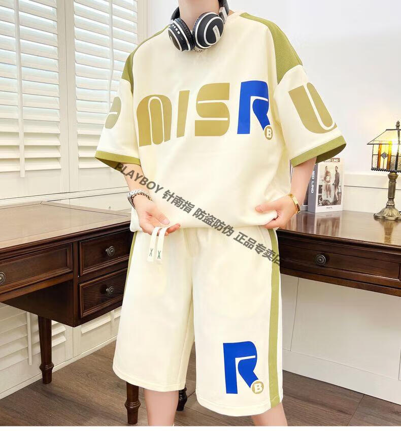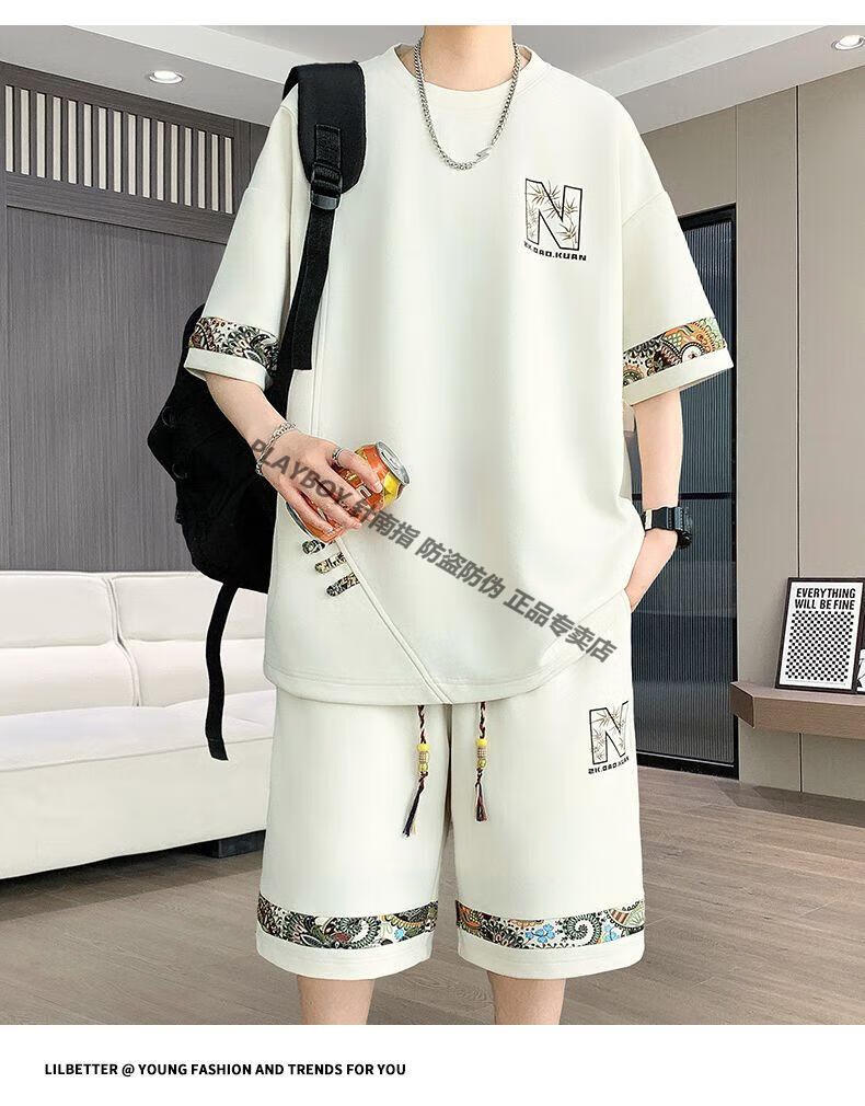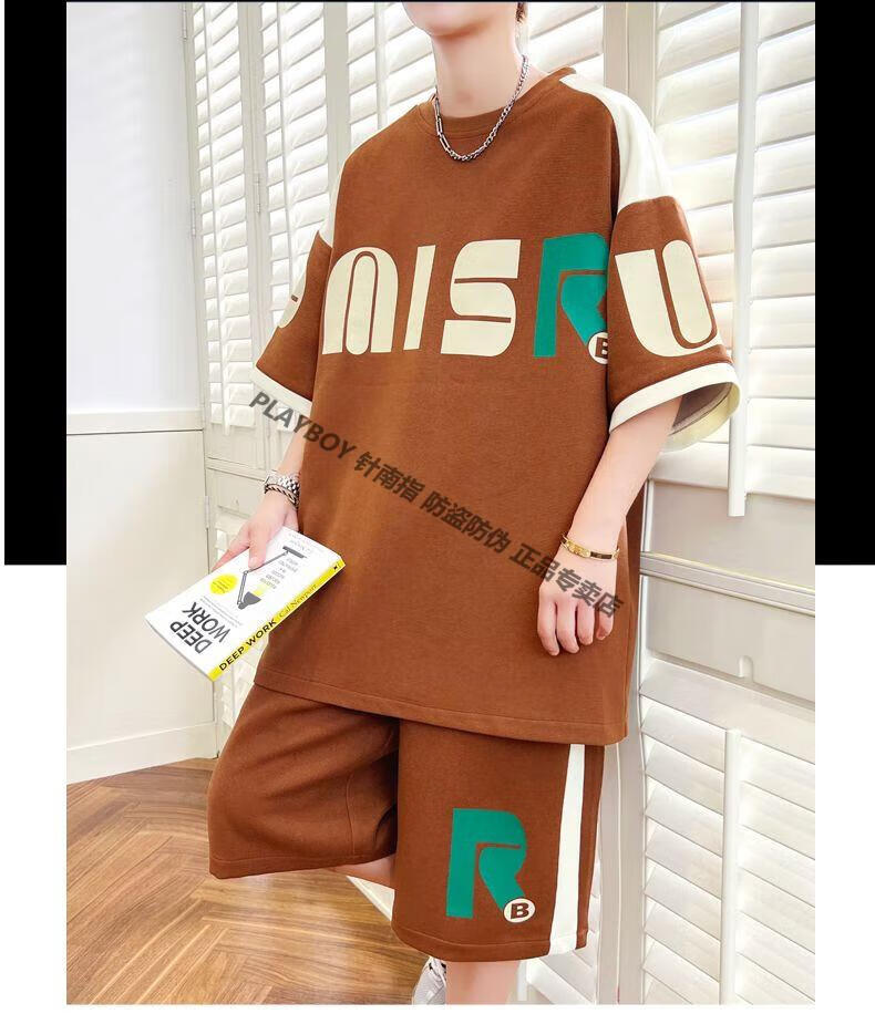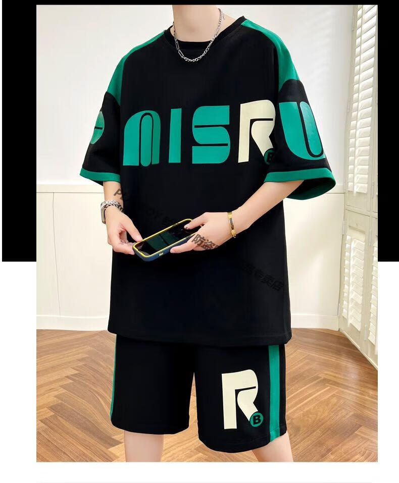 花花公子(PLAYBOY)短袖短裤套装男夏季潮流男款一套男士休闲运动男装一整套夏装 YYW6195绿色套装 品质保证 4XL 建议180-200斤