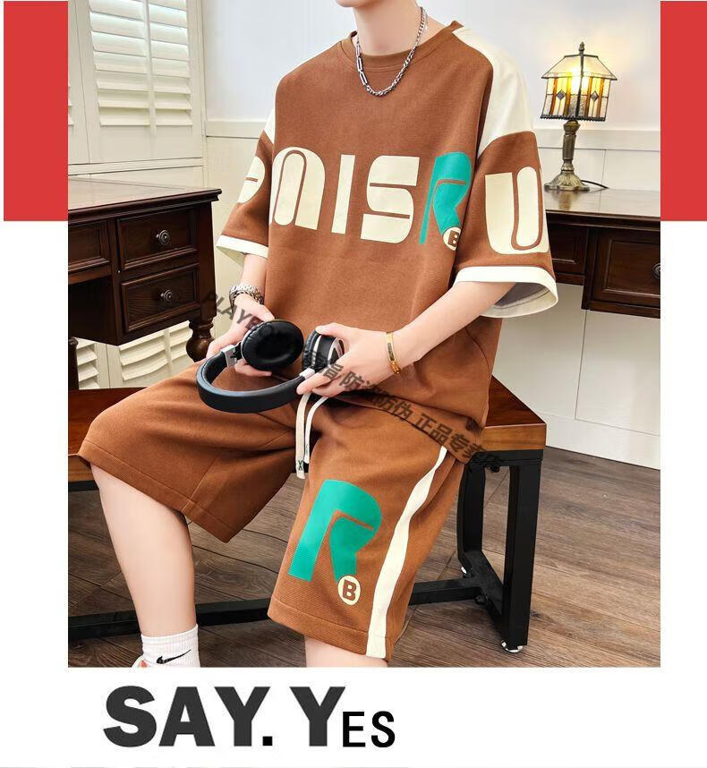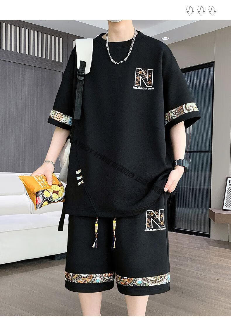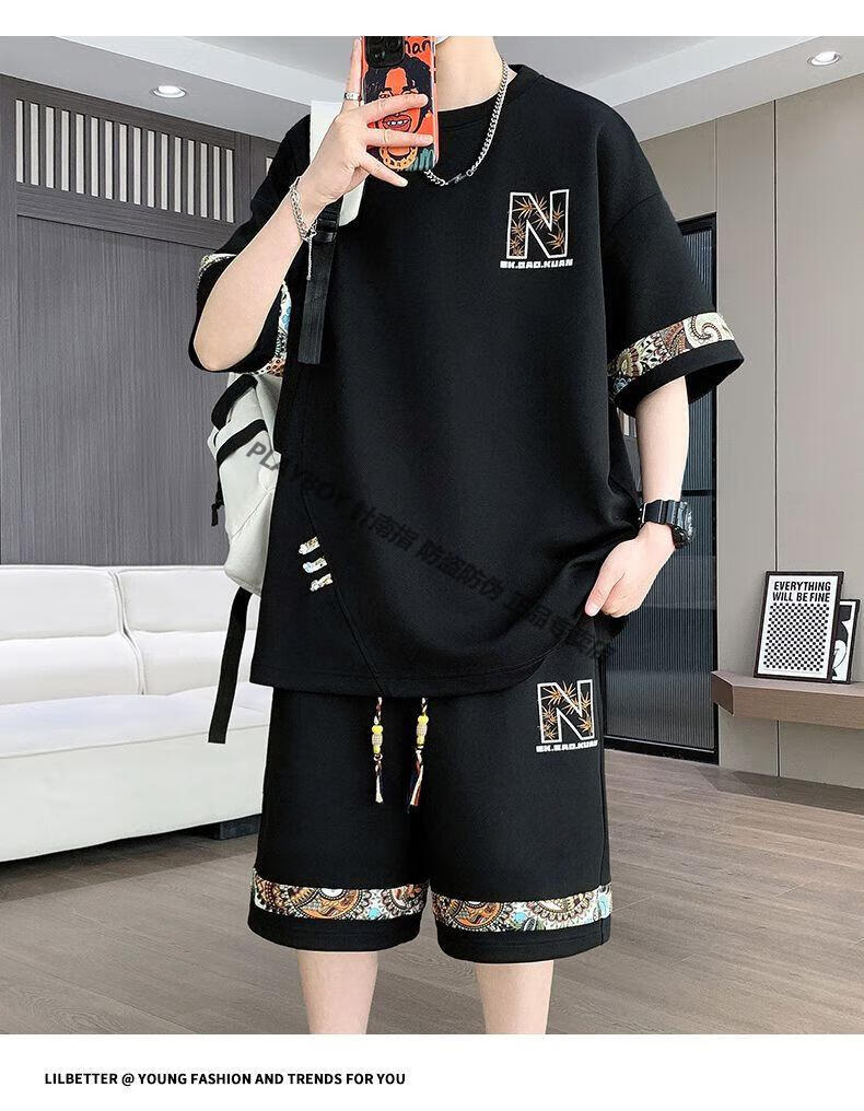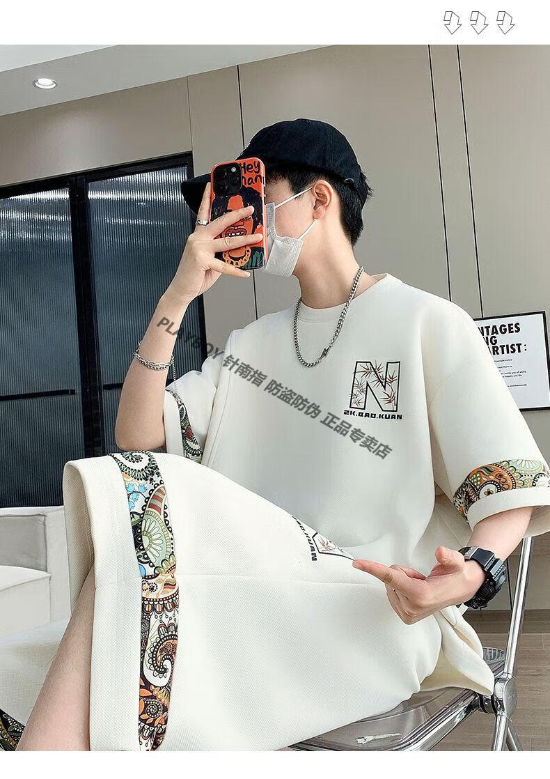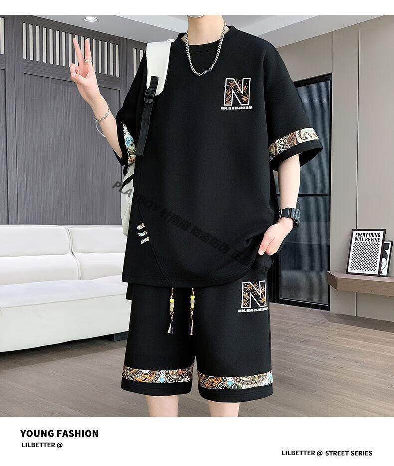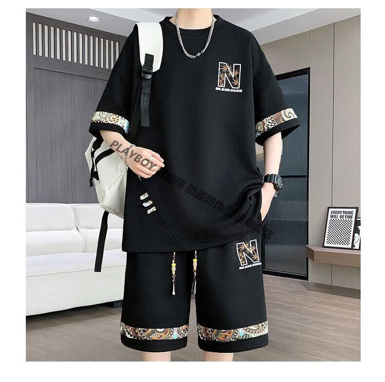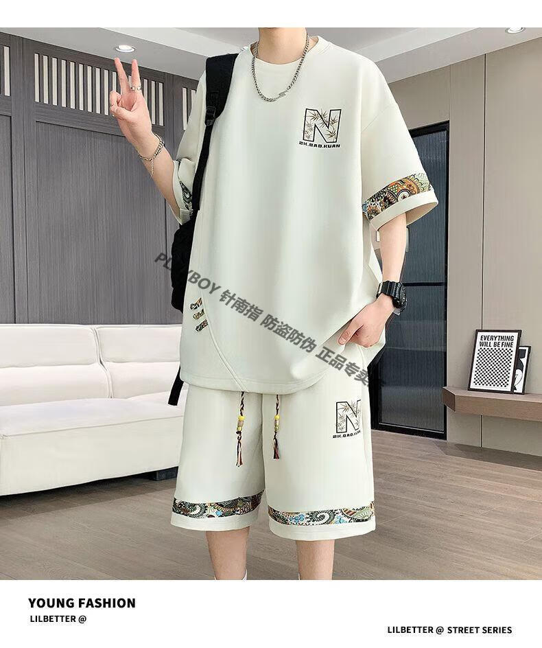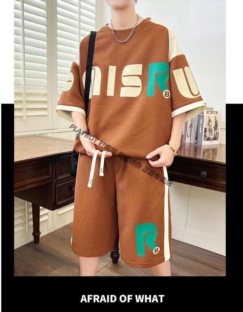花花公子(PLAYBOY)短袖短裤套装男夏季潮流男款一套男士休闲运动男装一整套夏装 YYW6195绿色套装 品质保证 4XL 建议180-200斤