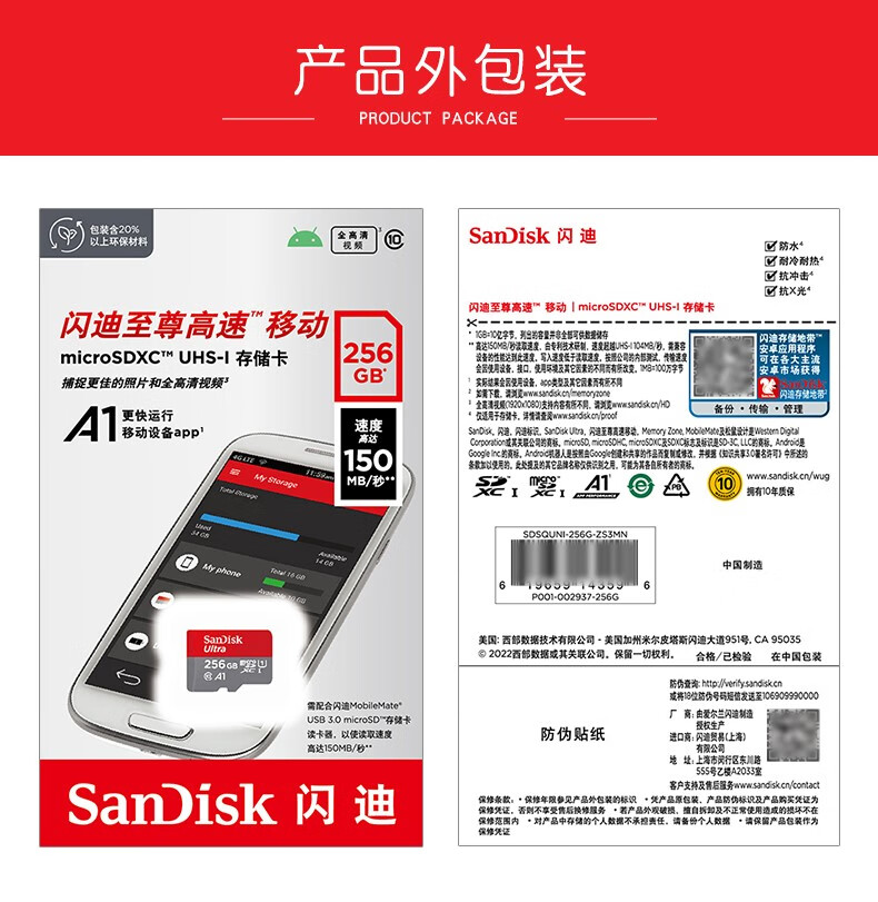 Tarjeta TF original SanDisk 256g interruptor de tarjeta de memoria para teléfono móvil tarjeta Micro sd de alta velocidad grabadora de conducción tarjeta de memoria QUNI-256 Paquete 2