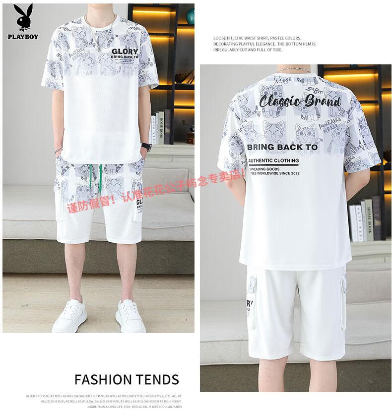 花花公子品牌男装2025夏季新款短袖T恤短裤套装百搭休闲运动两件套渐变 6187蓝色 L