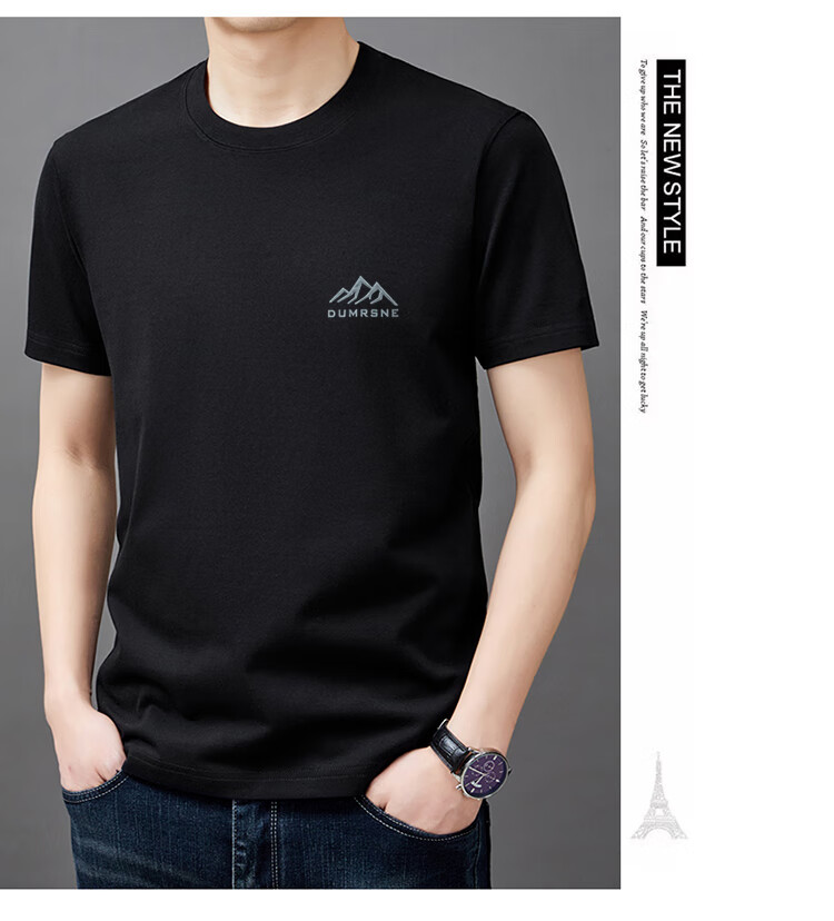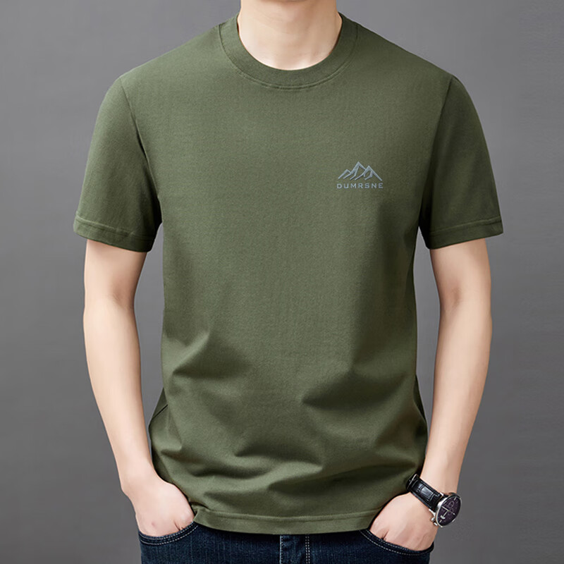 老爷车100%纯棉短袖t恤男士夏季薄款圆领半袖上免烫衣休闲凉感体恤衫 短衣袖山峰9929枫叶红 L 170建议120-135斤