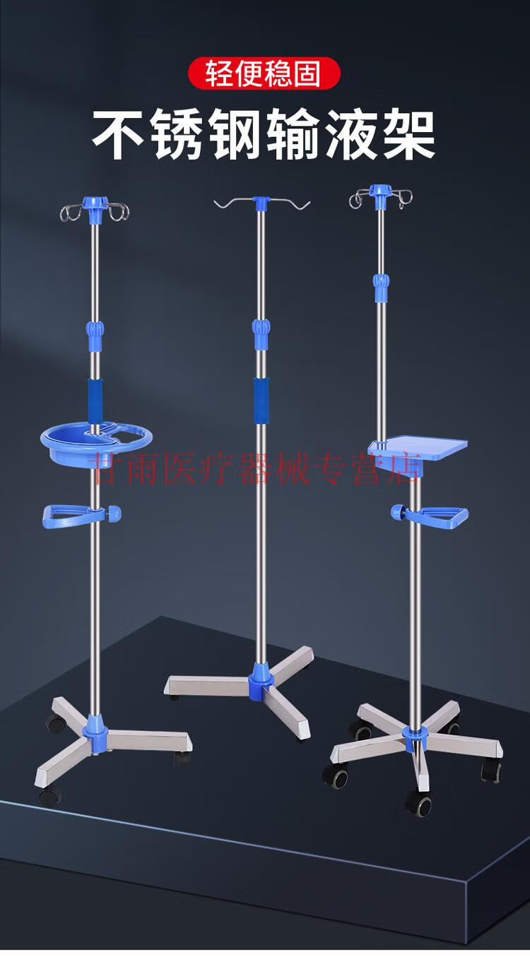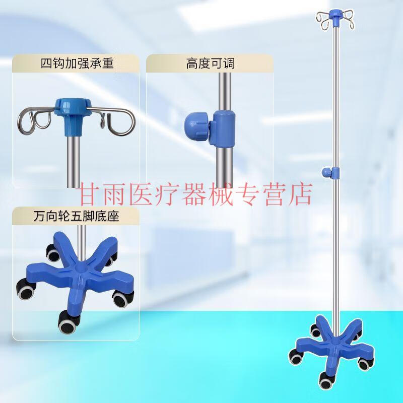 礼达康【9276人好评】移动输液架带轮点滴支架加厚不锈钢输液架盐水吊瓶 ABS五角底座+4钩+轮+方形托盘