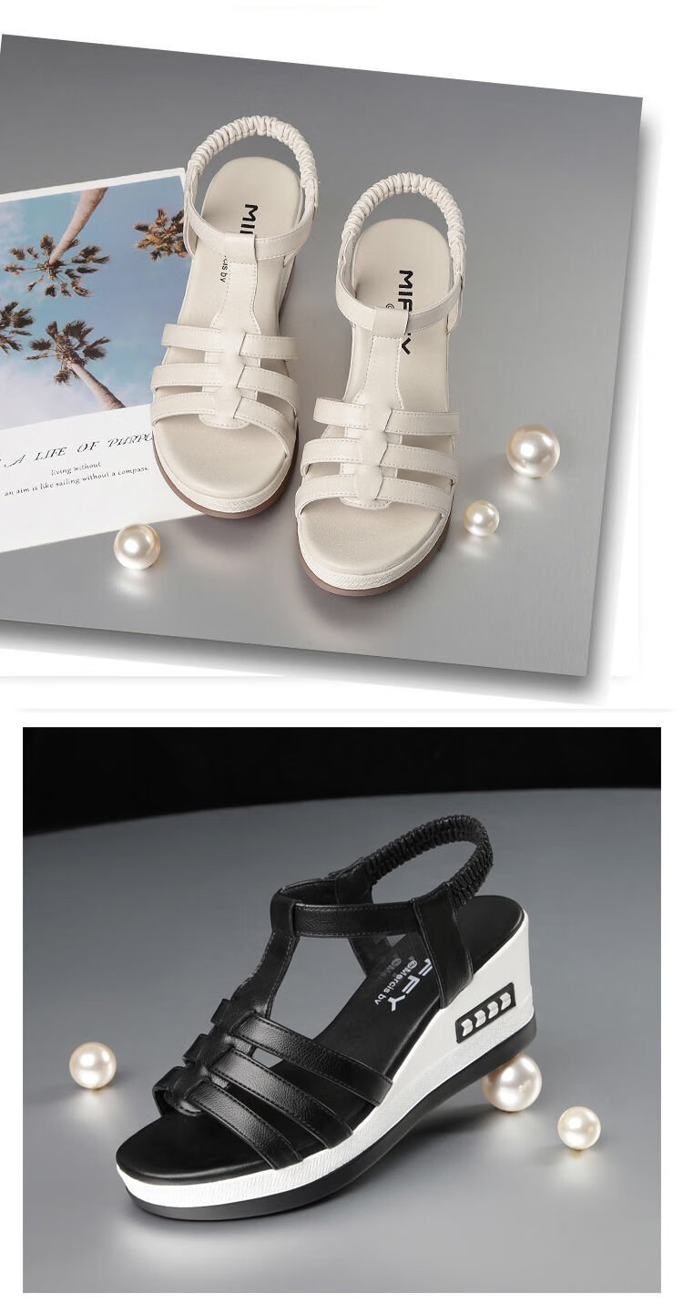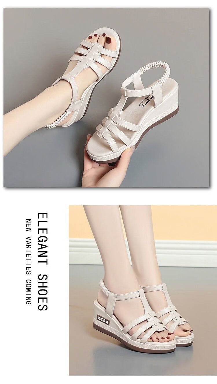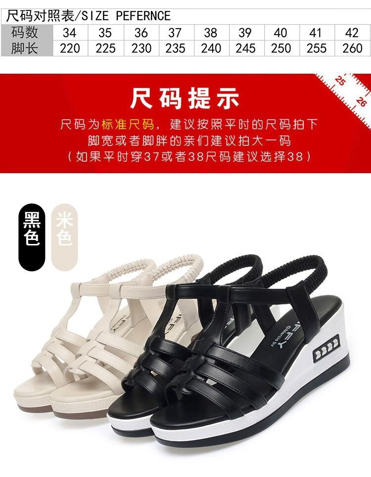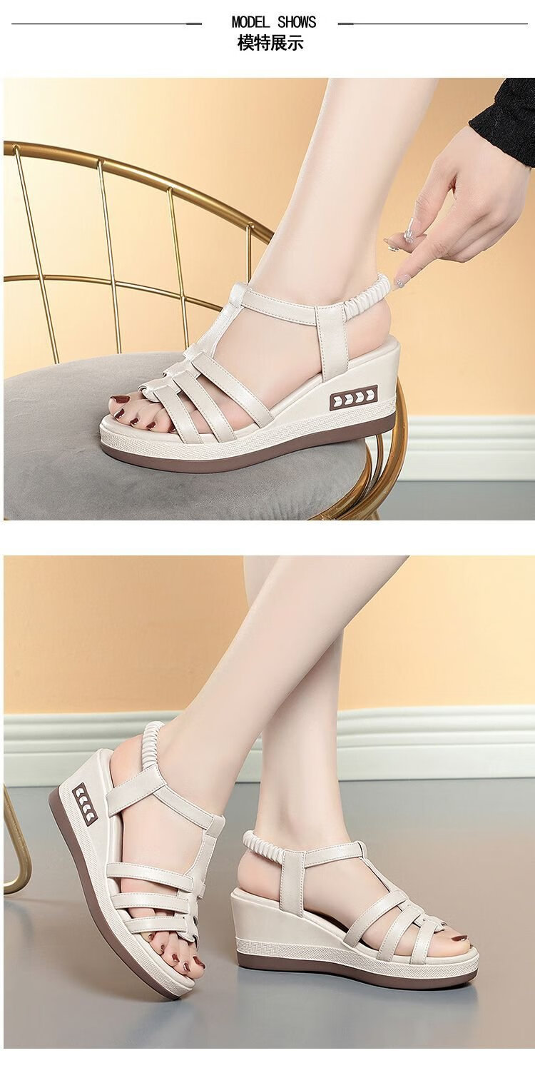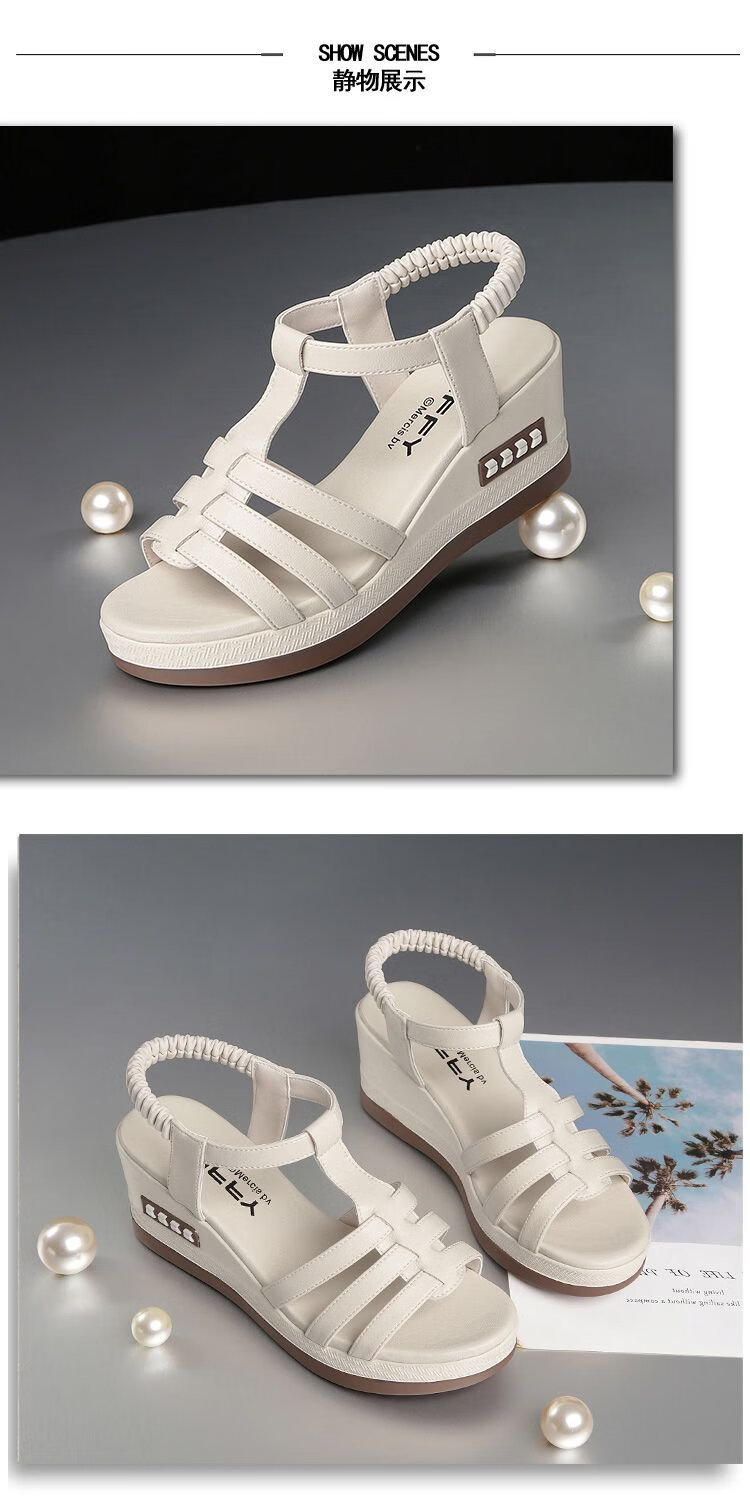 品牌特价妈妈凉鞋女坡跟2025新款百搭夏季松糕厚底鱼嘴罗马鞋 白色 38