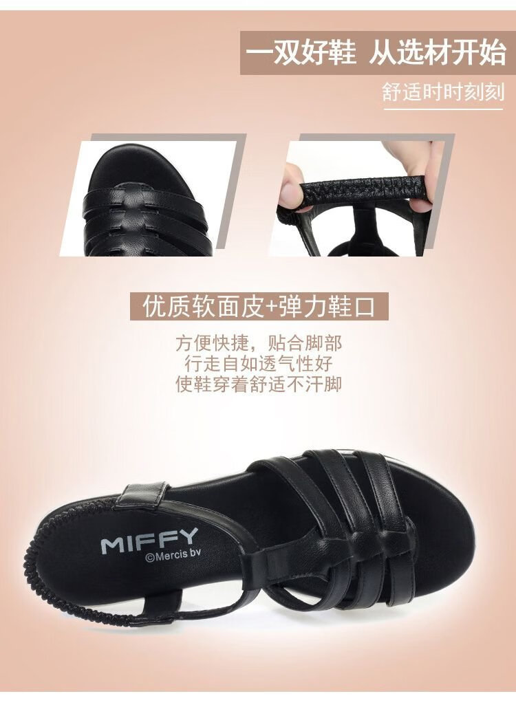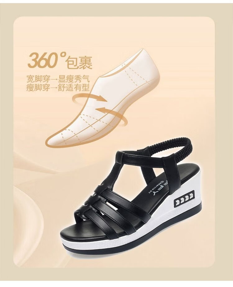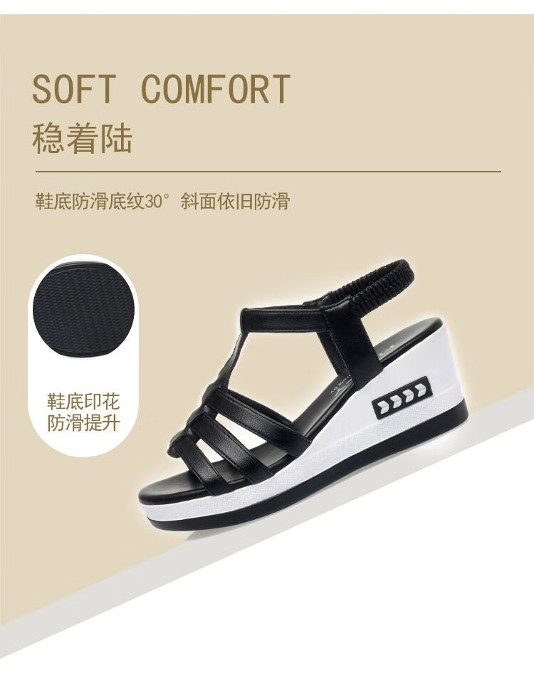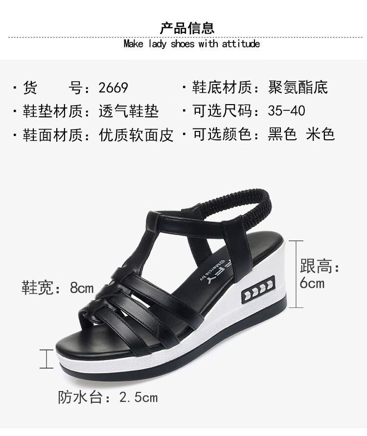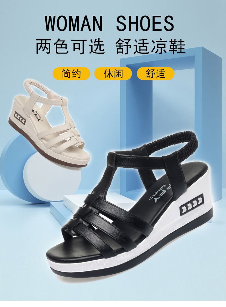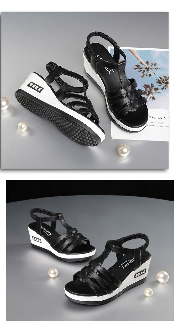 品牌特价妈妈凉鞋女坡跟2025新款百搭夏季松糕厚底鱼嘴罗马鞋 白色 38