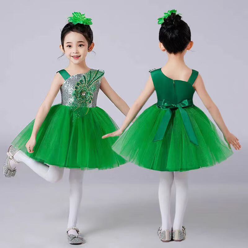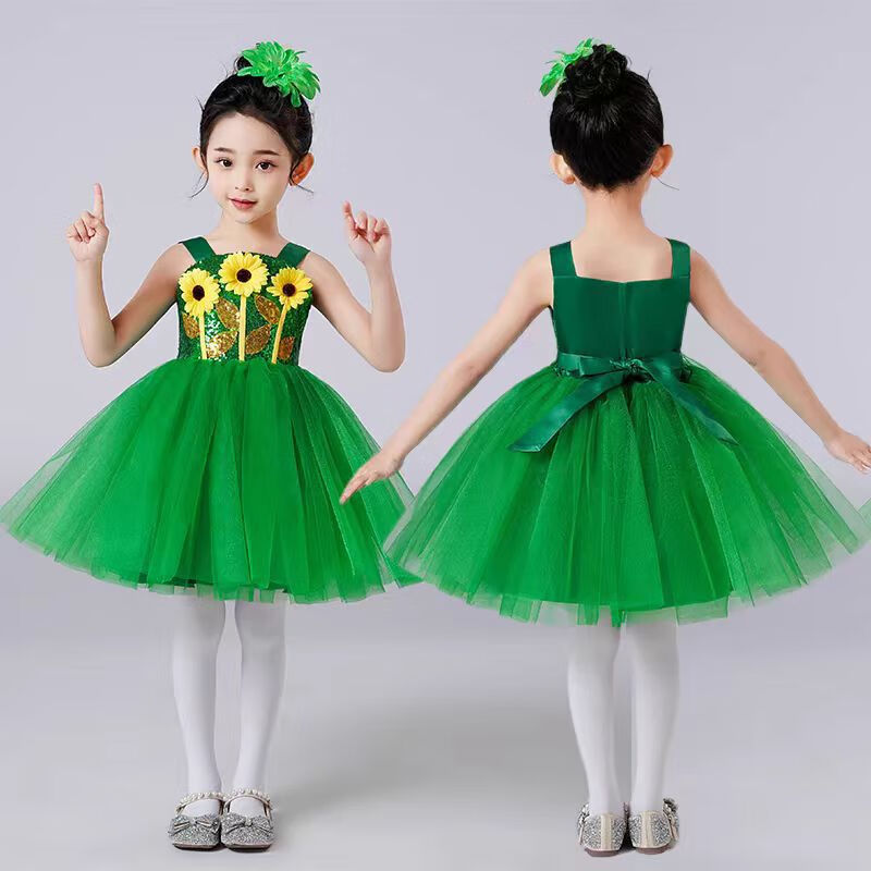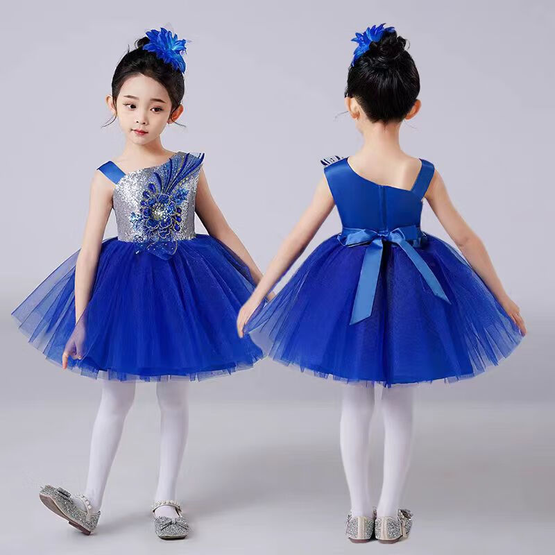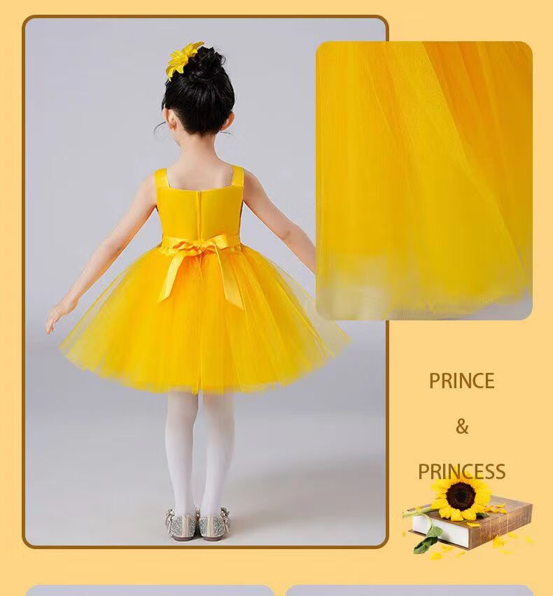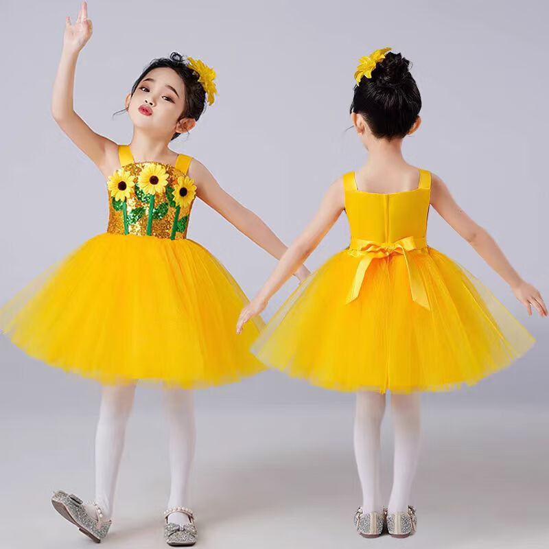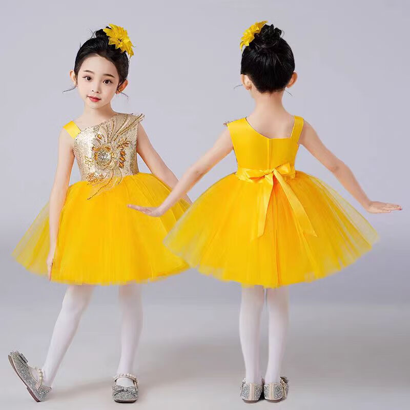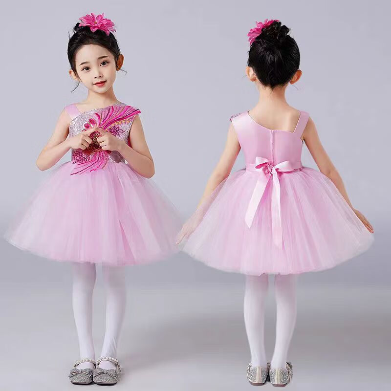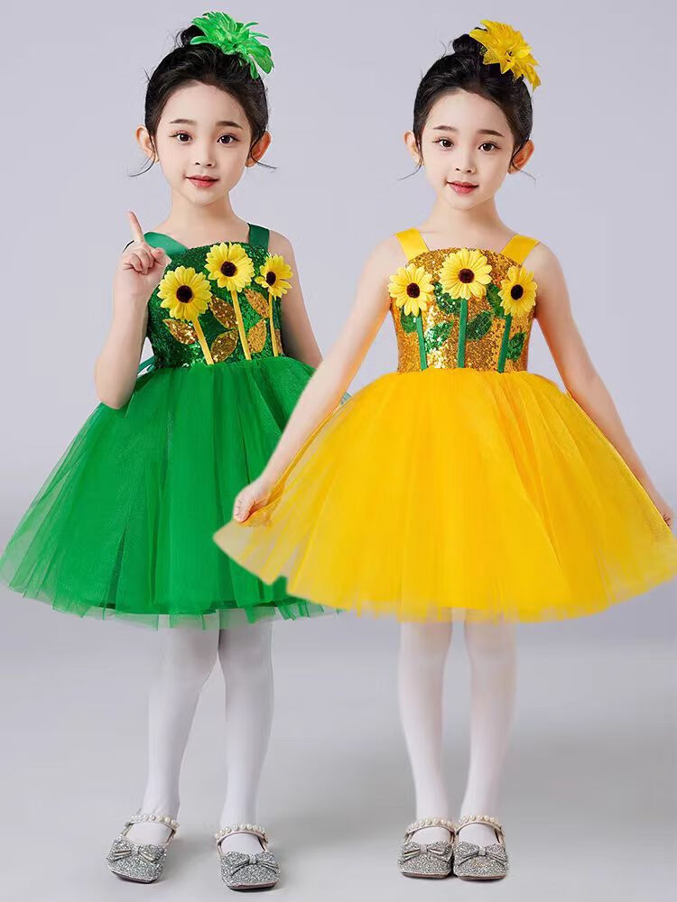 Disney Children's Performance Costumes Girl Princess Puff Dress Evening Gown Sequined Veil Skirt Dance Performance Suit Lotus Colorful Skirt + Bow 100 cm