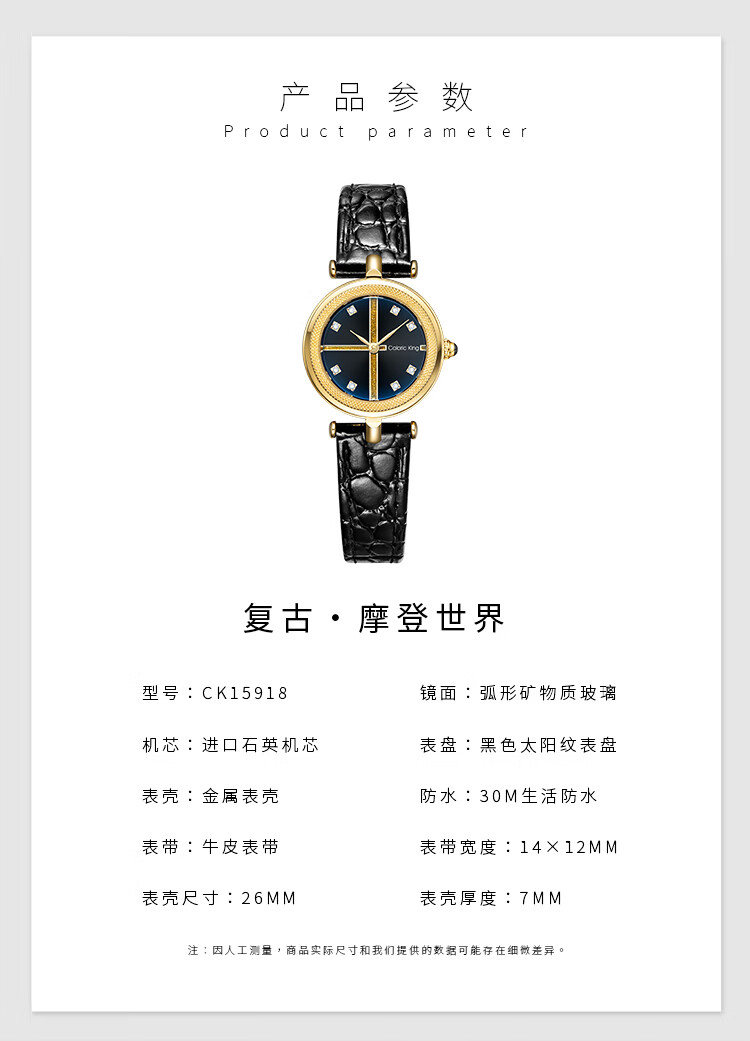 Caloric King复古·摩登世界腕表感手表女款皮带防水百搭送礼 CK15918