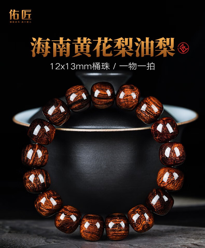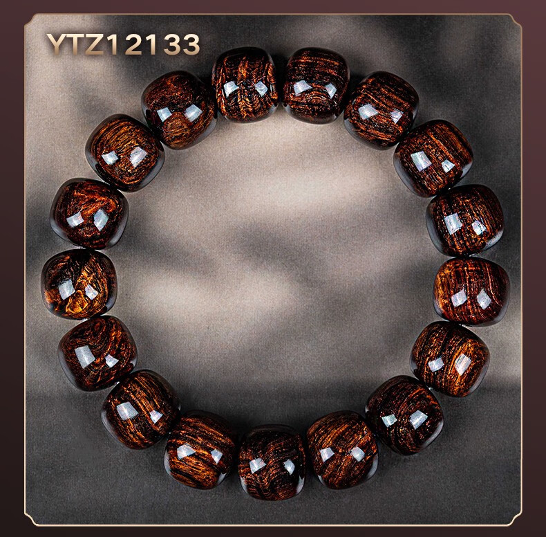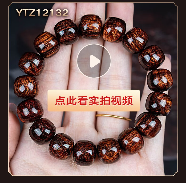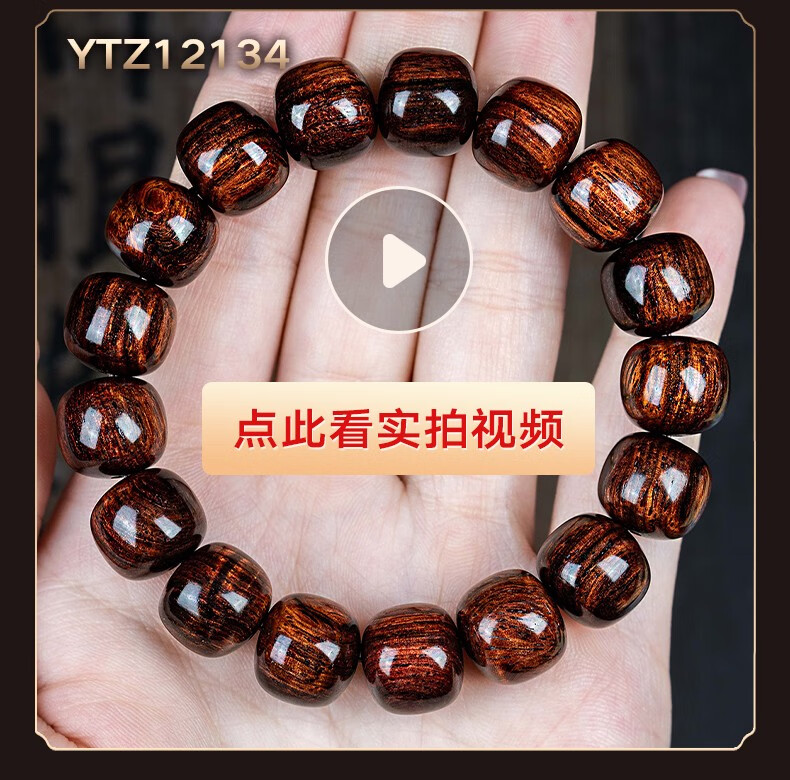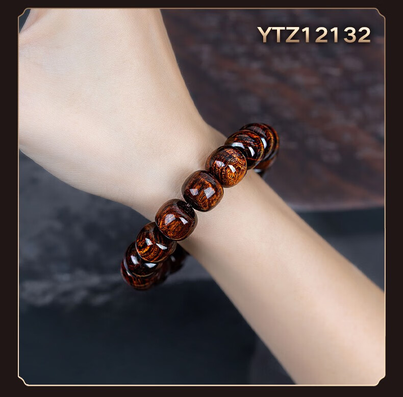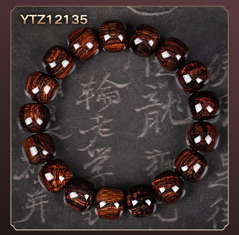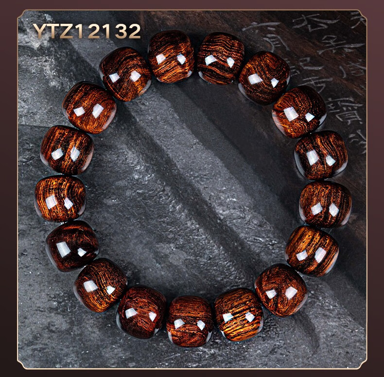 恒久叶海南紫油梨老料满水波纹藏式桶珠佛珠手串文玩手链把件男女 YTZ12137