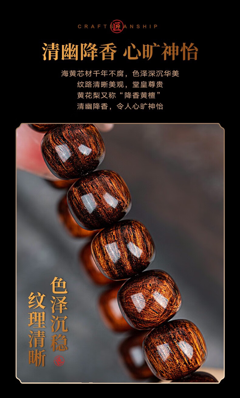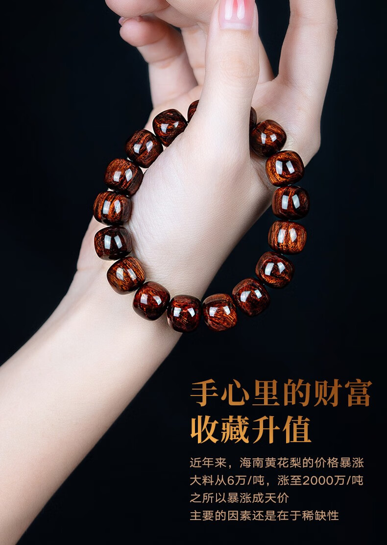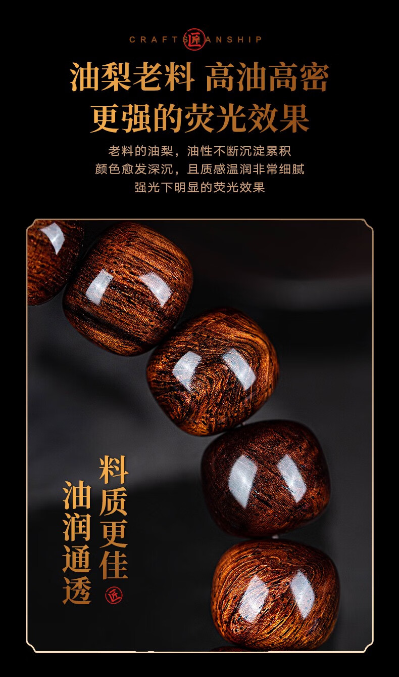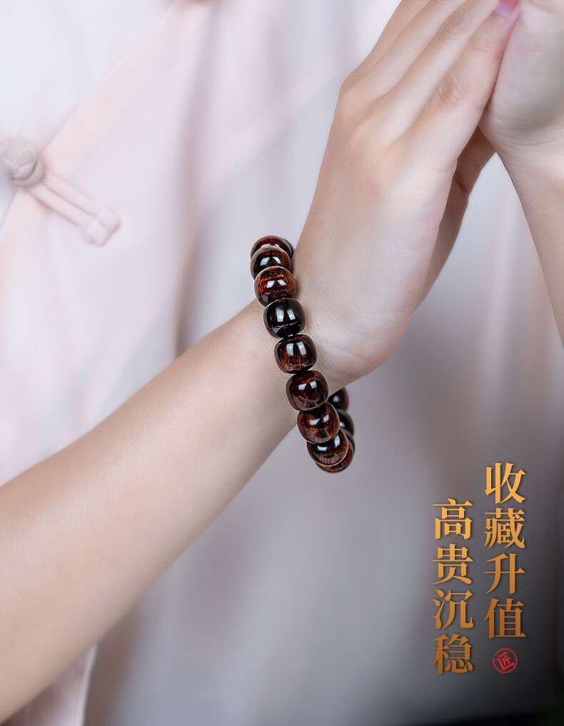 恒久叶海南紫油梨老料满水波纹藏式桶珠佛珠手串文玩手链把件男女 YTZ12137