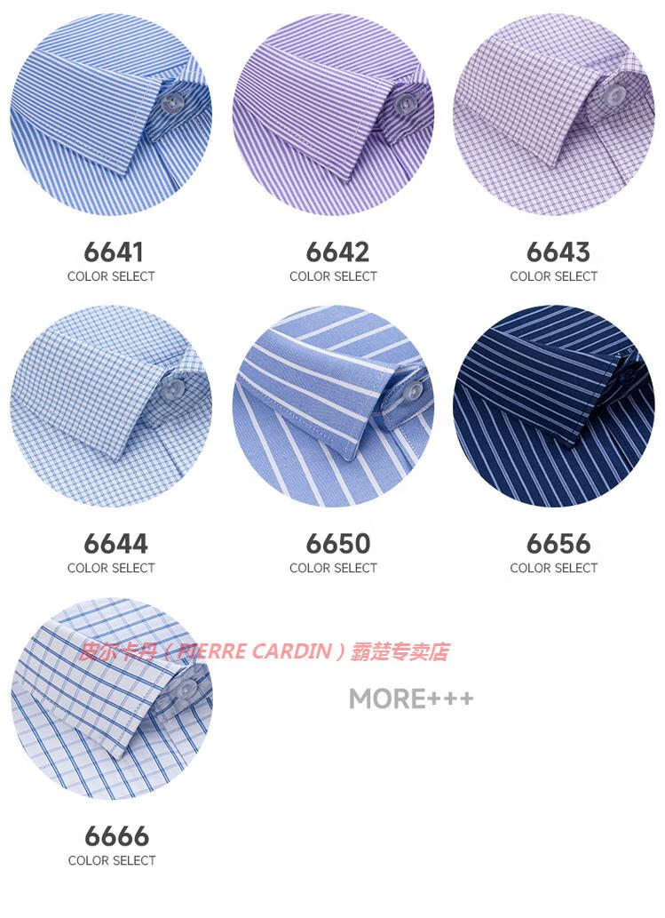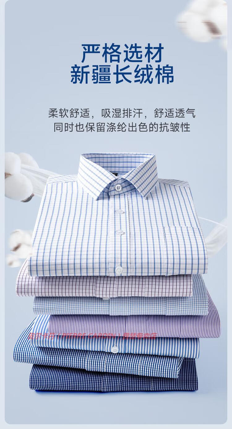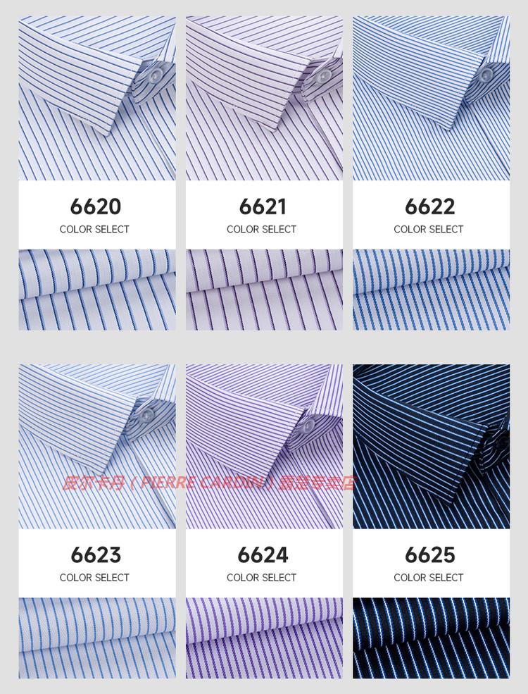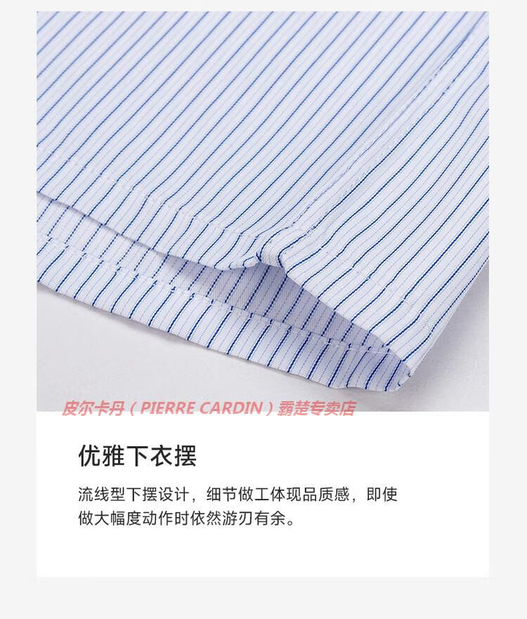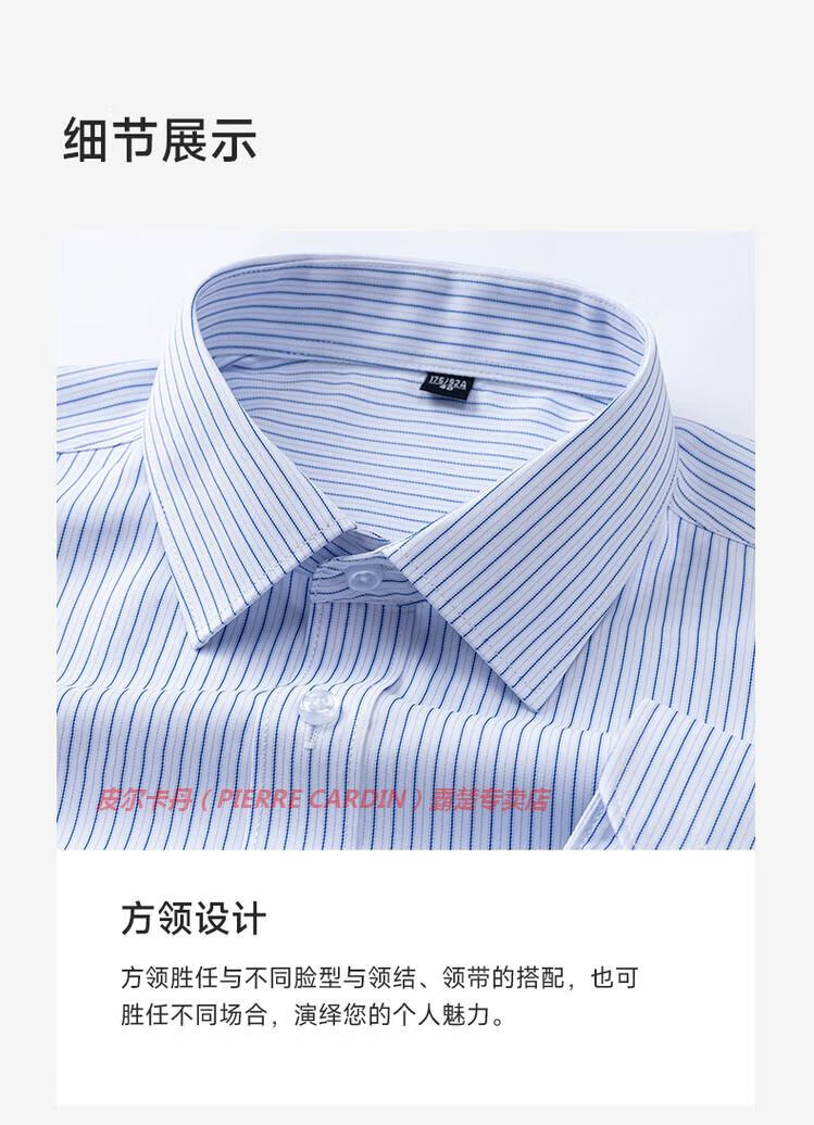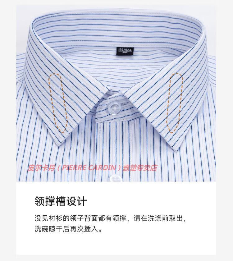 皮尔卡丹(pierre cardin)夏季棉质男士短袖衬衫中年商务休闲条纹免烫衬衣男爸爸装 6627 38