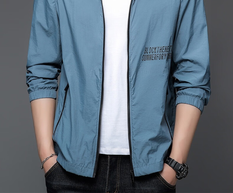 老爷车防晒衣服男士2025年夏季薄款皮肤衣冰丝凉感休闲夹克外套男 N9928雾蓝 M 170【90-110斤】