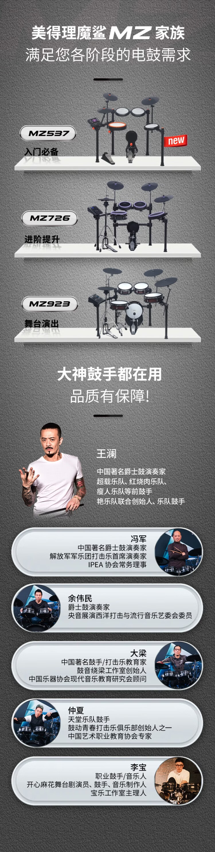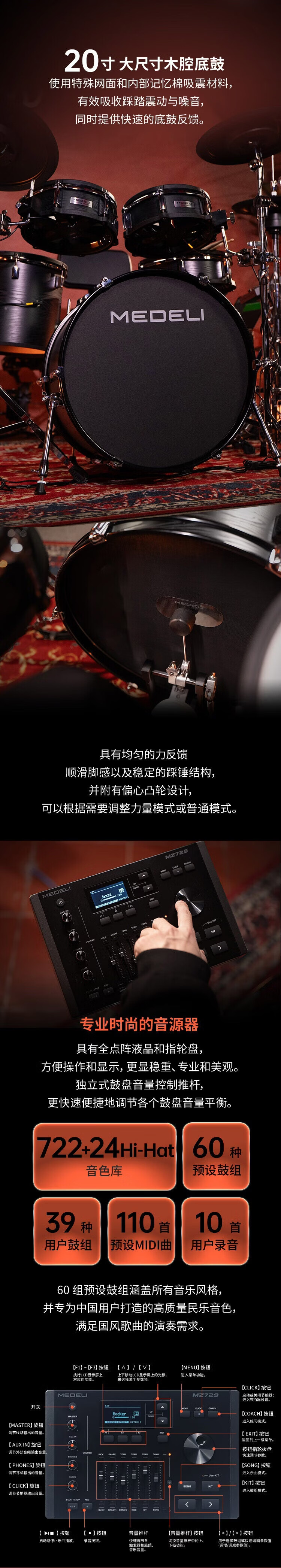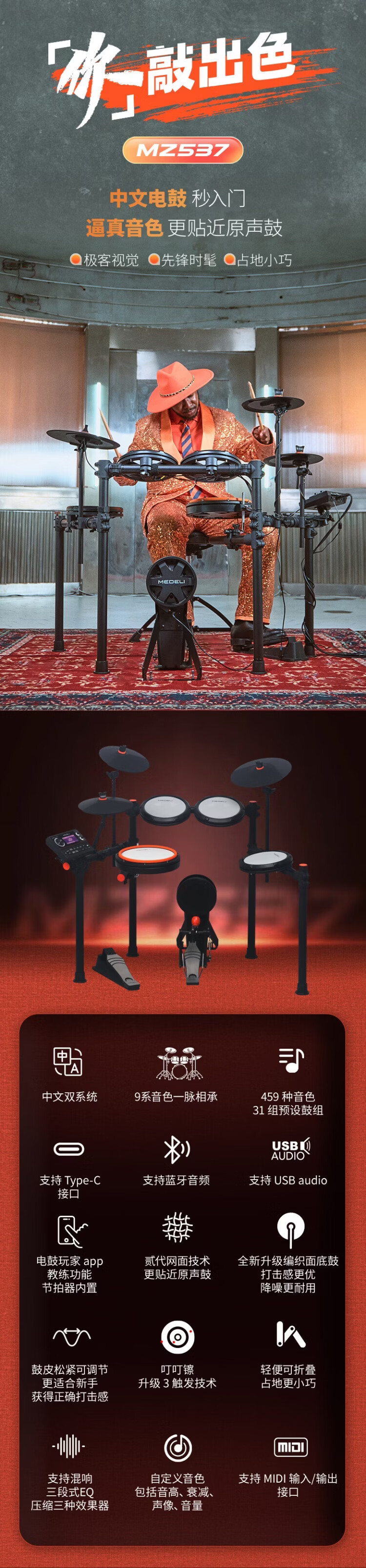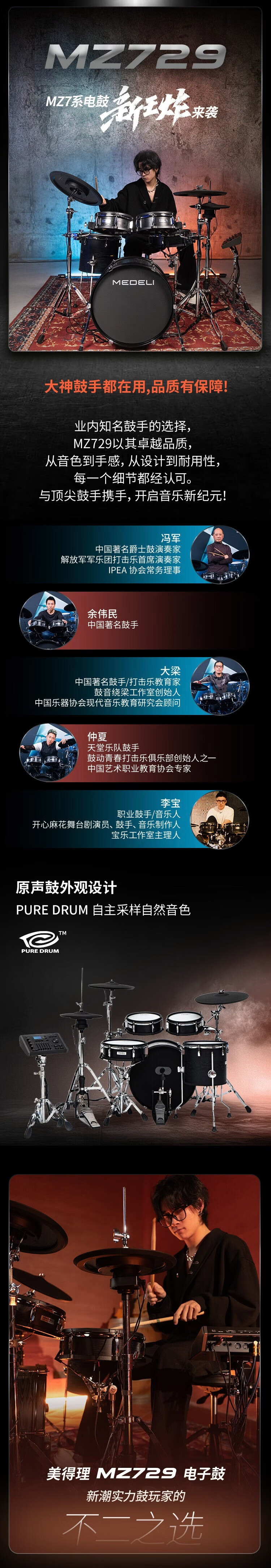 MEDELI Magic Shark Electronic Drum MZ726 MZ79 Nuevo juego de batería profesional práctica de rendimiento tambor eléctrico inteligente universal 5 tambores 4 platillos MZ729 MZ928 platillo extendido del mismo estilo