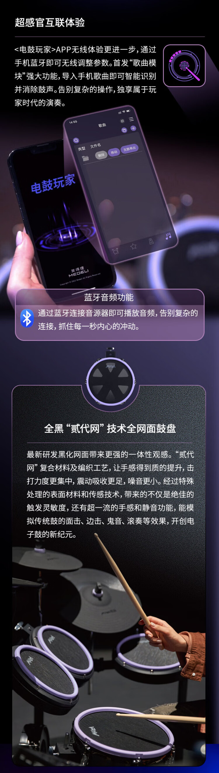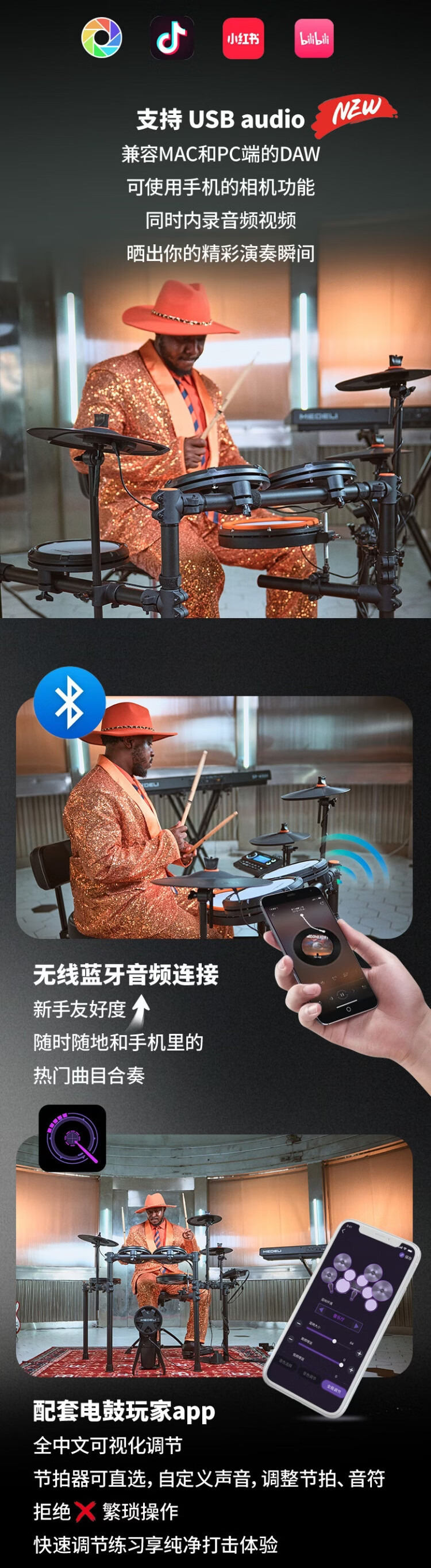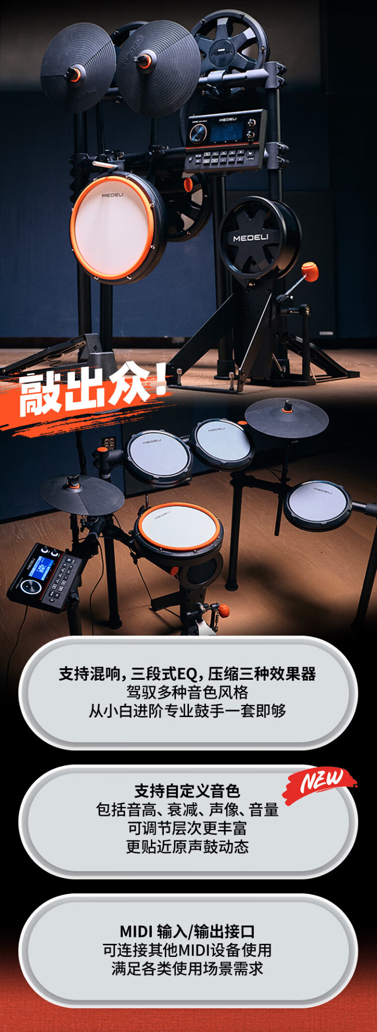 MEDELI Magic Shark Electronic Drum MZ726 MZ79 Nuevo juego de batería profesional práctica de rendimiento tambor eléctrico inteligente universal 5 tambores 4 platillos MZ729 MZ928 platillo extendido del mismo estilo