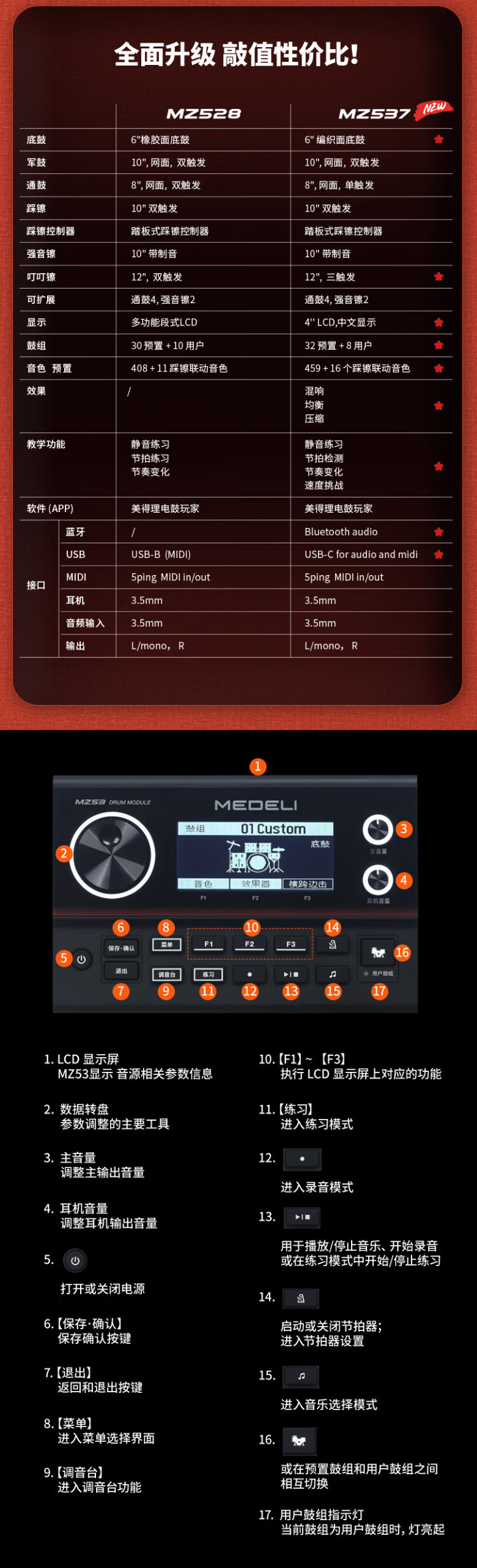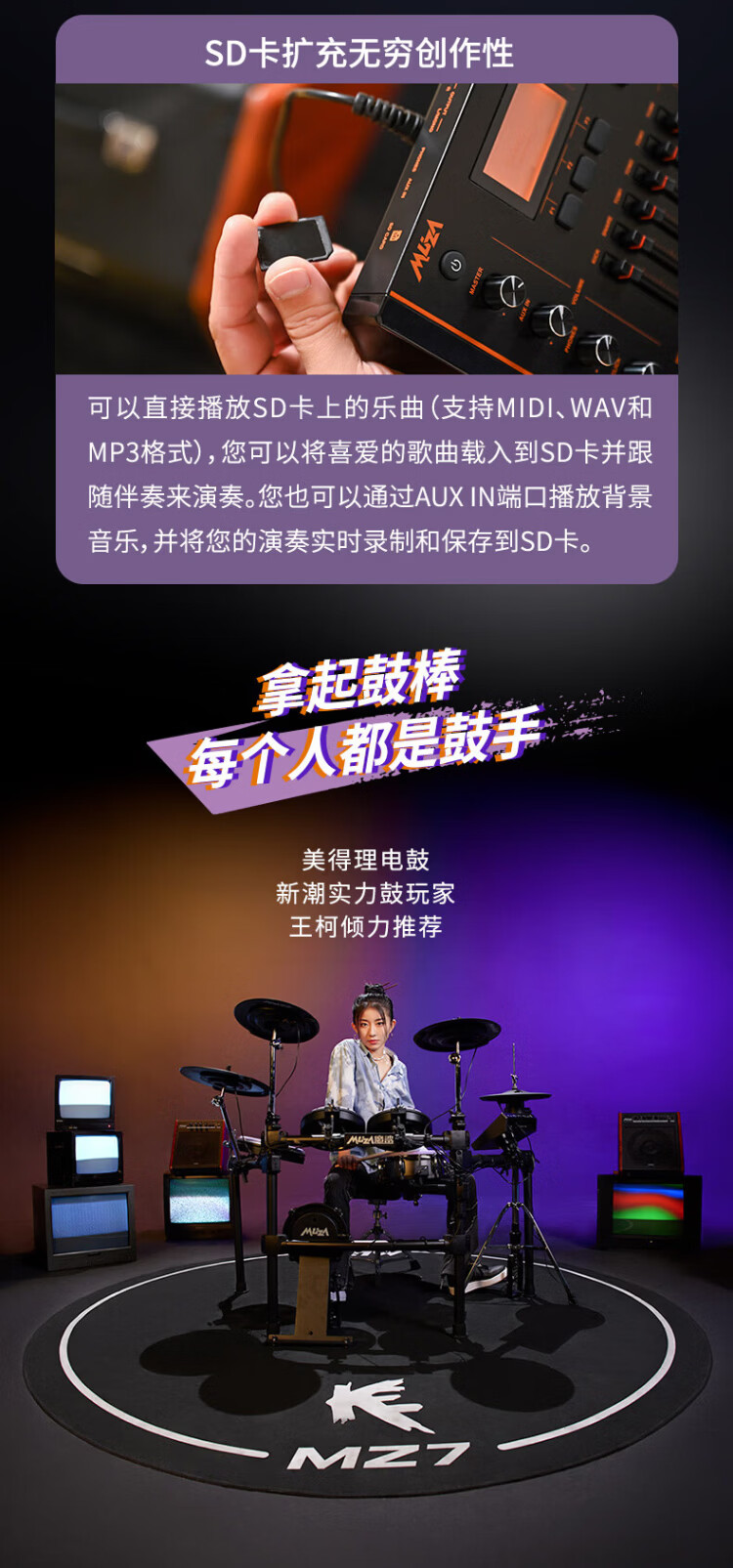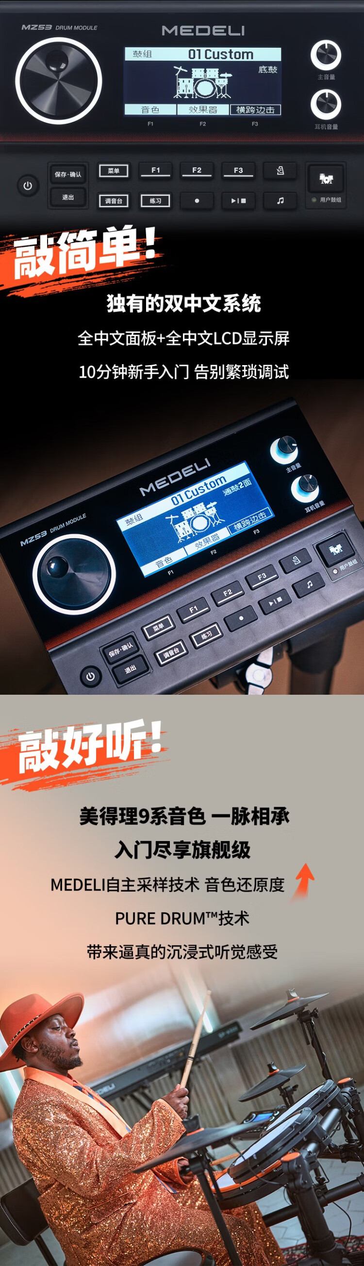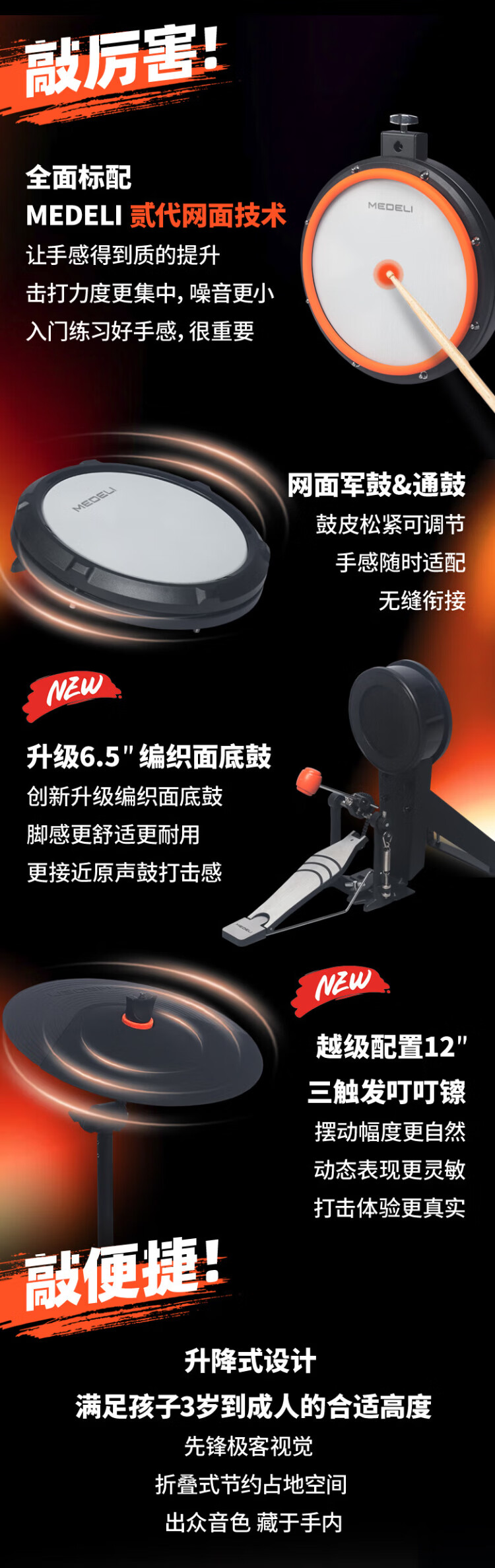 MEDELI Magic Shark Electronic Drum MZ726 MZ79 Nuevo juego de batería profesional práctica de rendimiento tambor eléctrico inteligente universal 5 tambores 4 platillos MZ729 MZ928 platillo extendido del mismo estilo
