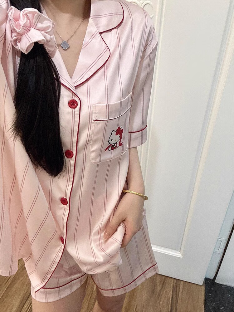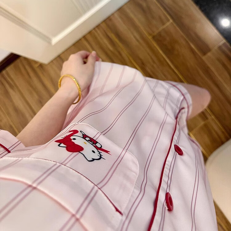 梦特娇(MONTAGUT)甜美可爱Kitty冰丝睡衣女2025新款感夏天薄款家居服套装 kad#13546 均码 m建议75-95斤