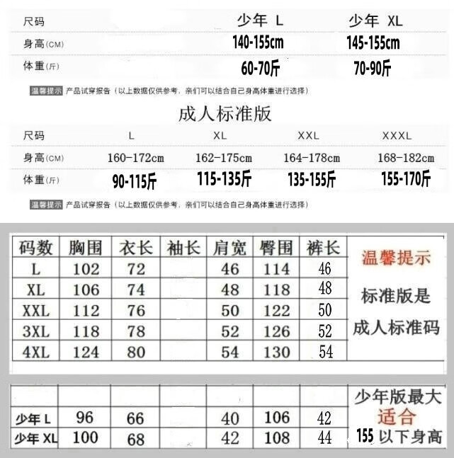 China (cm) 165 / 88-90 170 / 96-98 175 / 108-110 180 / 118-122 185 / 126-130