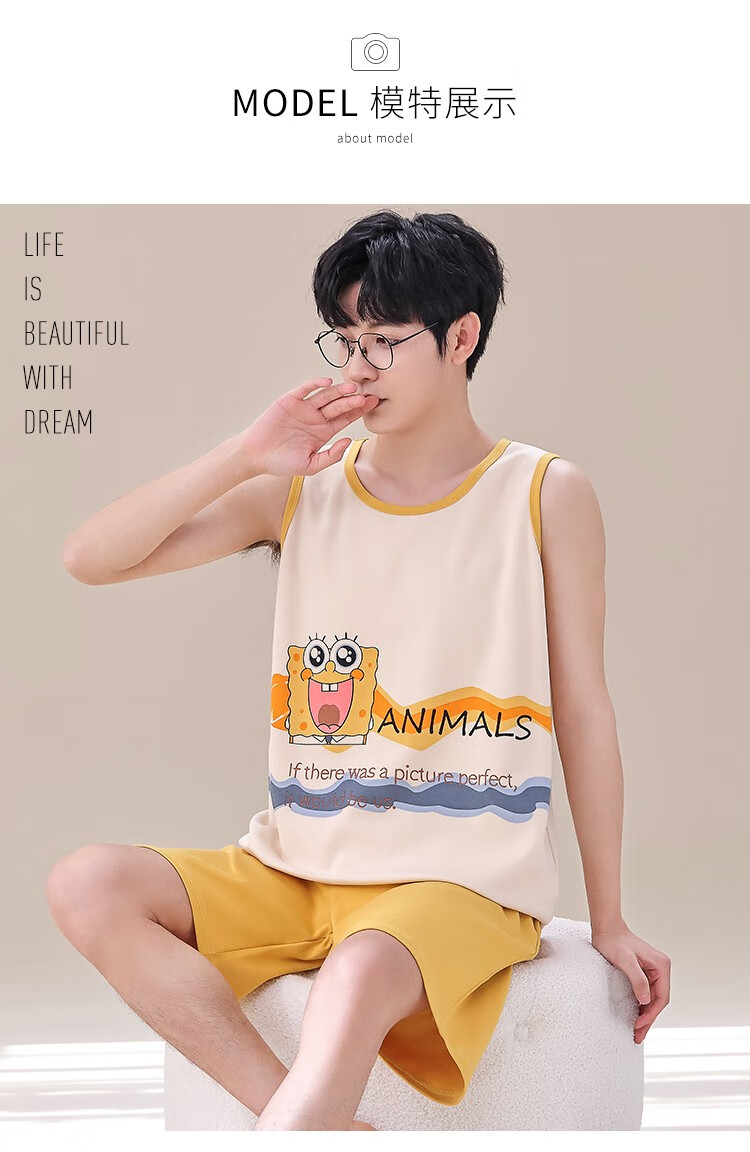 Chaleco Ran Yilan, pijama sin mangas para niños y niñas, chaleco fino de algodón modal de verano para hombres, traje para el hogar q1349 Bob Esponja de cúrcuma para hombres Talla única Versión junior l60-70 Jin Jin pesa 0,5 kg La altura es inferior a 150