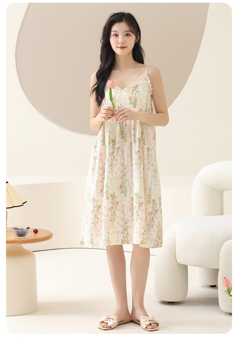 莫代尔睡裙女夏季2025新款吊带性感薄款睡衣带胸垫一体可外穿背心碎花裙 CM:6627# 【带胸垫】 M (80-100斤)
