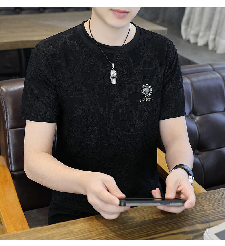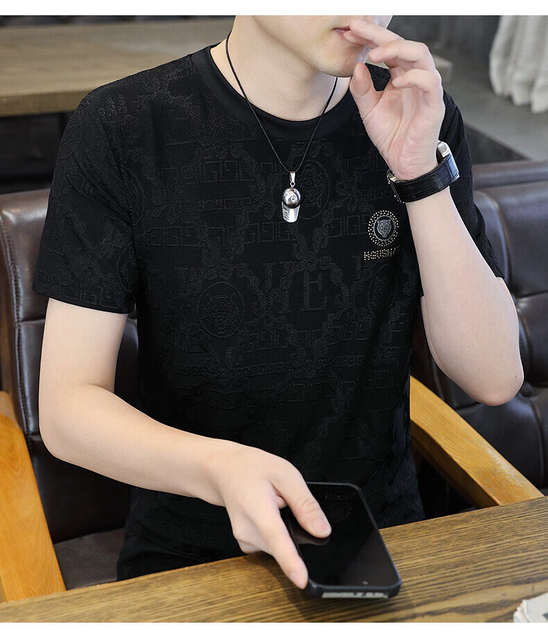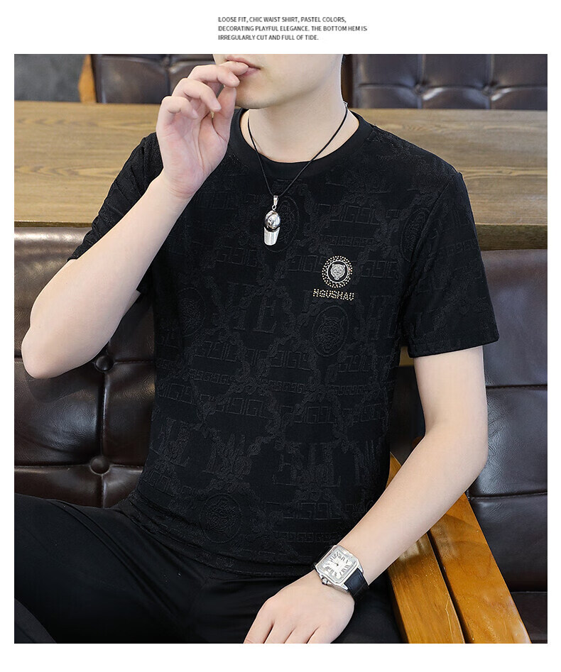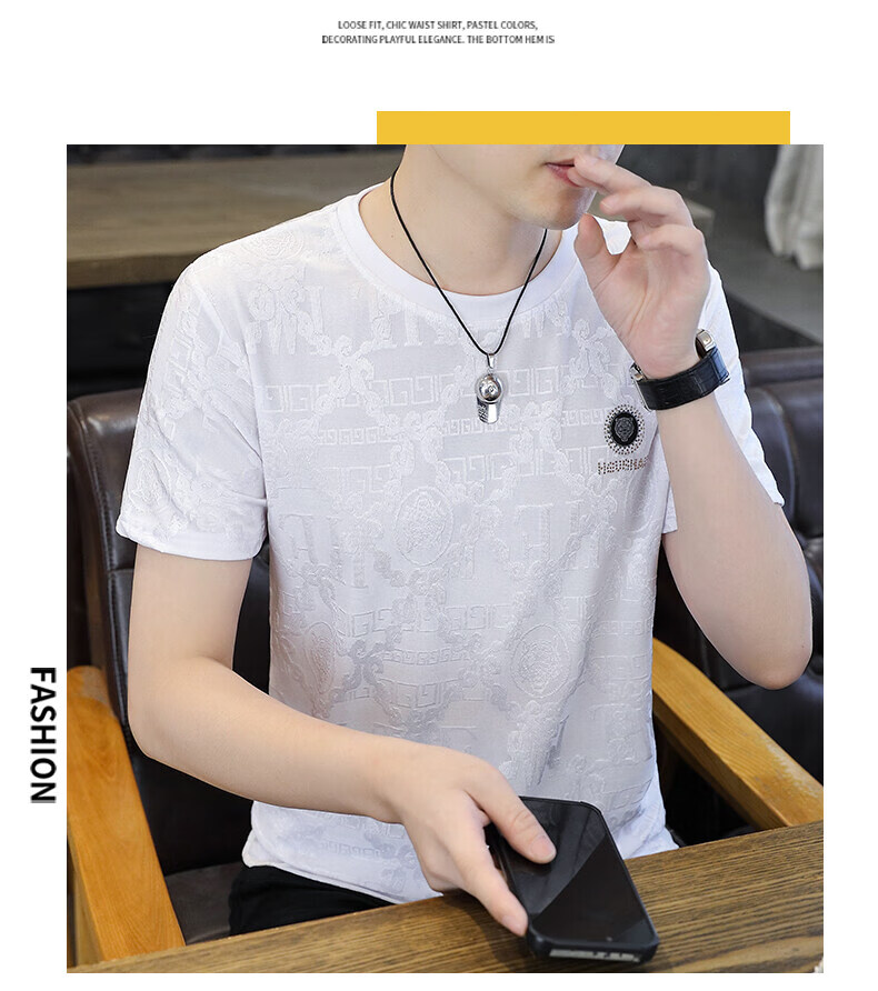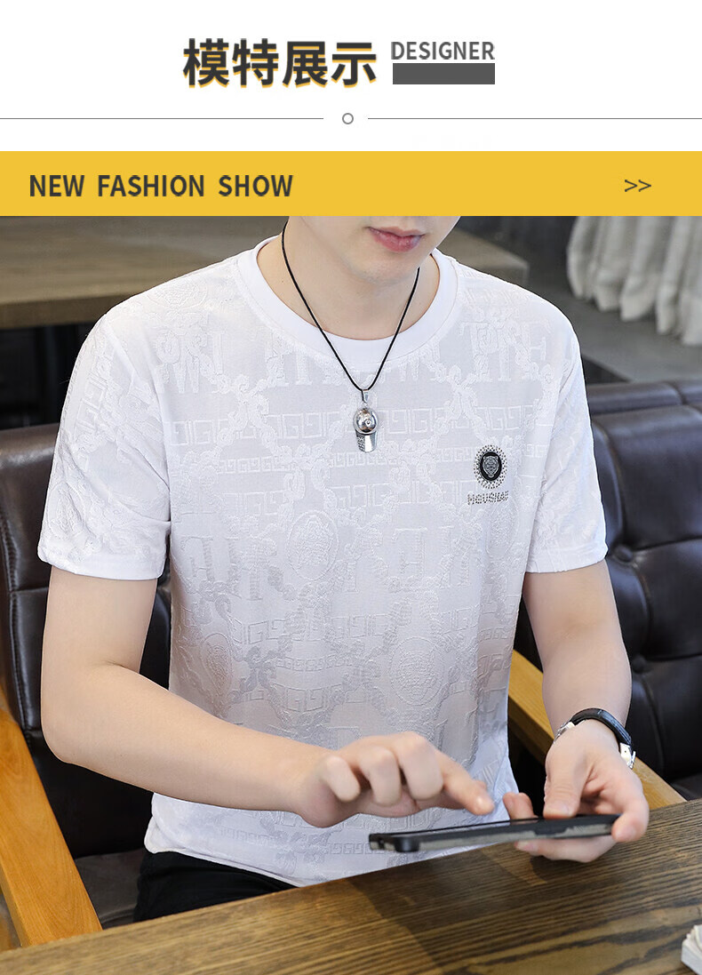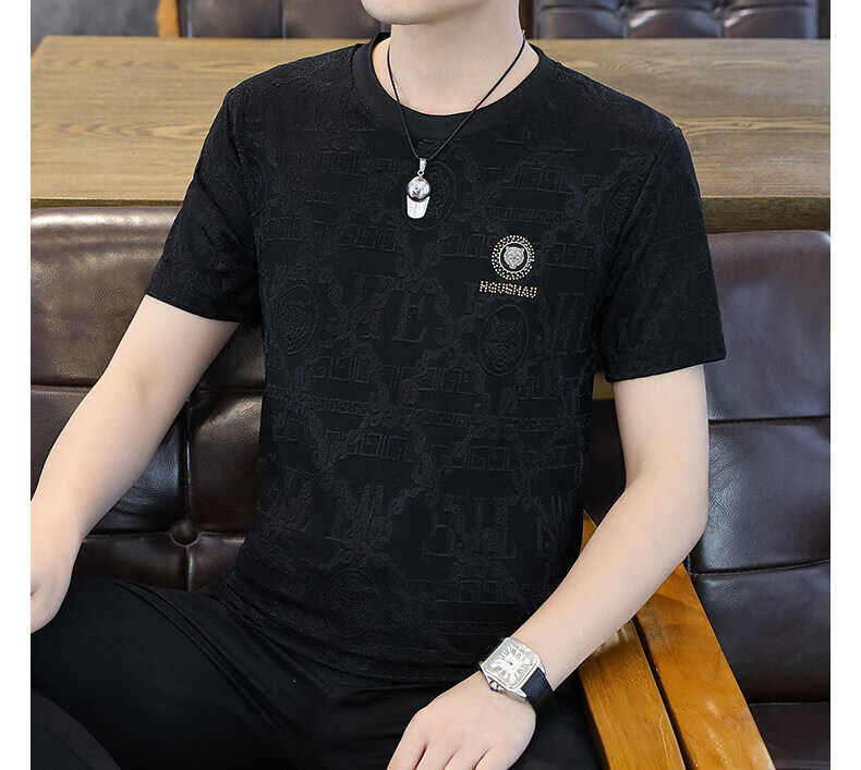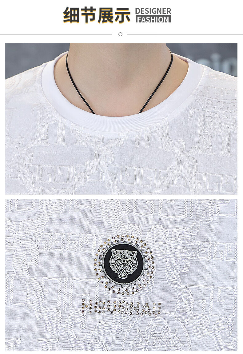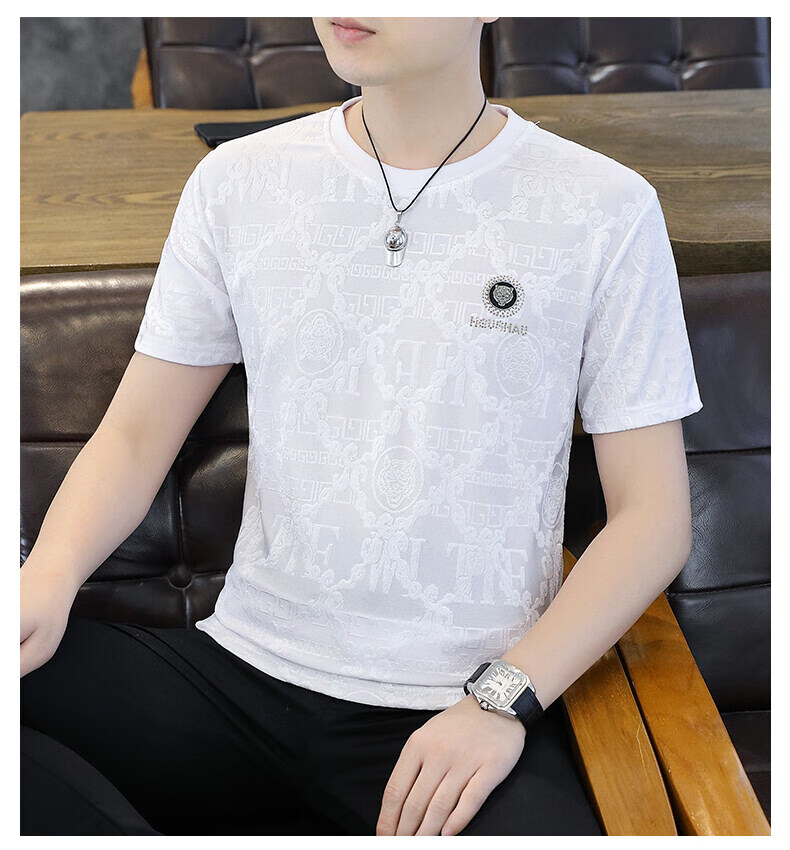 皮尔卡丹冰丝短袖t恤男士夏季2025新款高端虎头烫钻潮流上衣冰感半袖 753白色 3XL 170-190斤