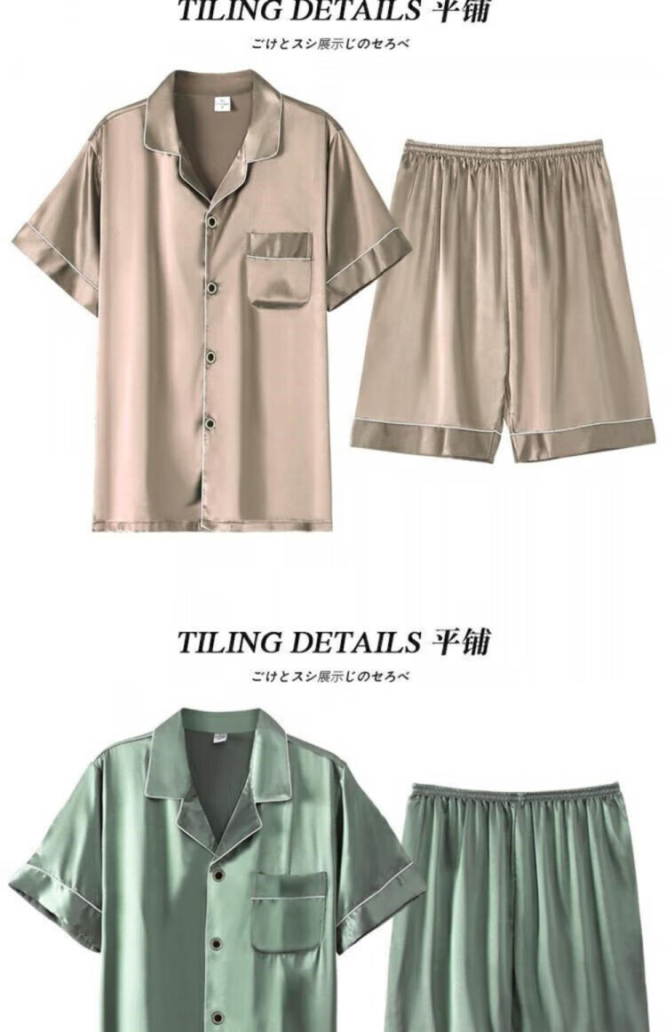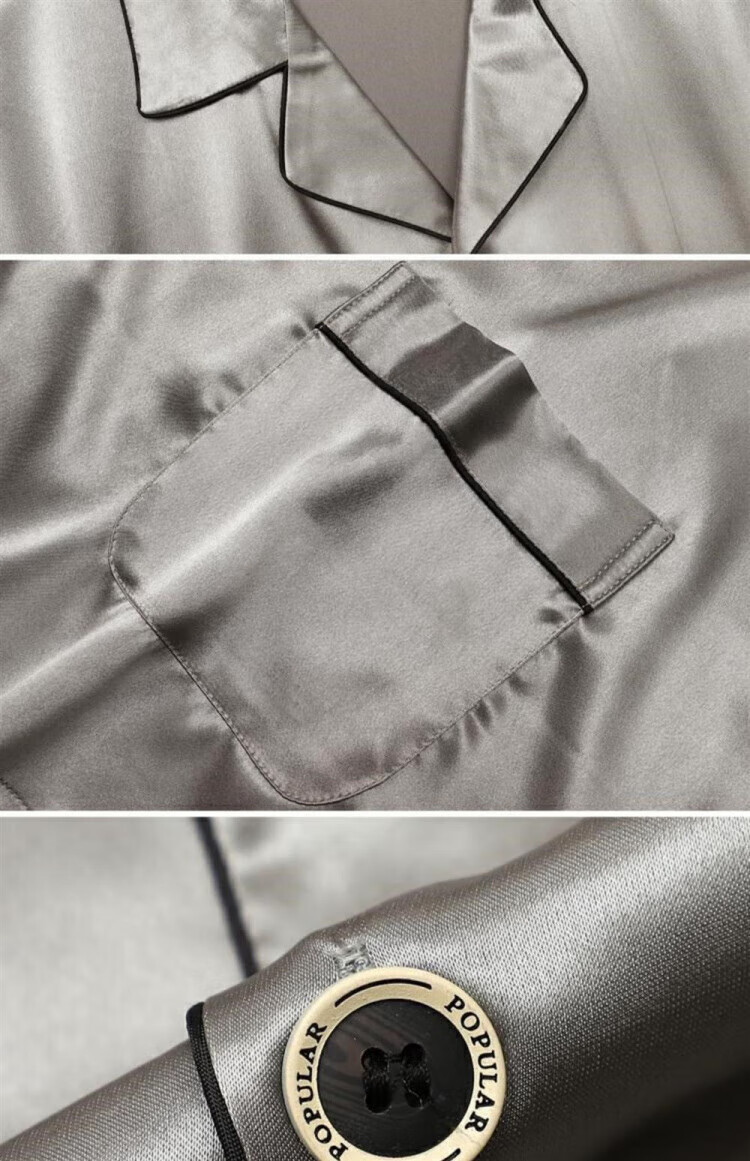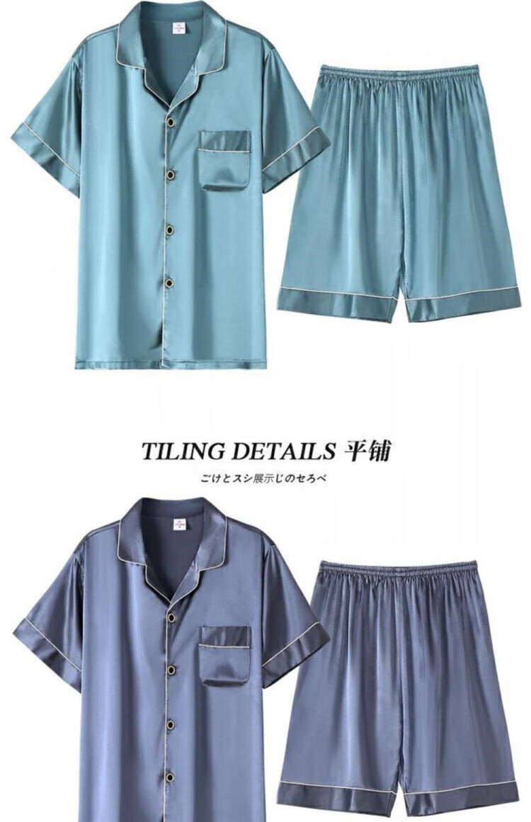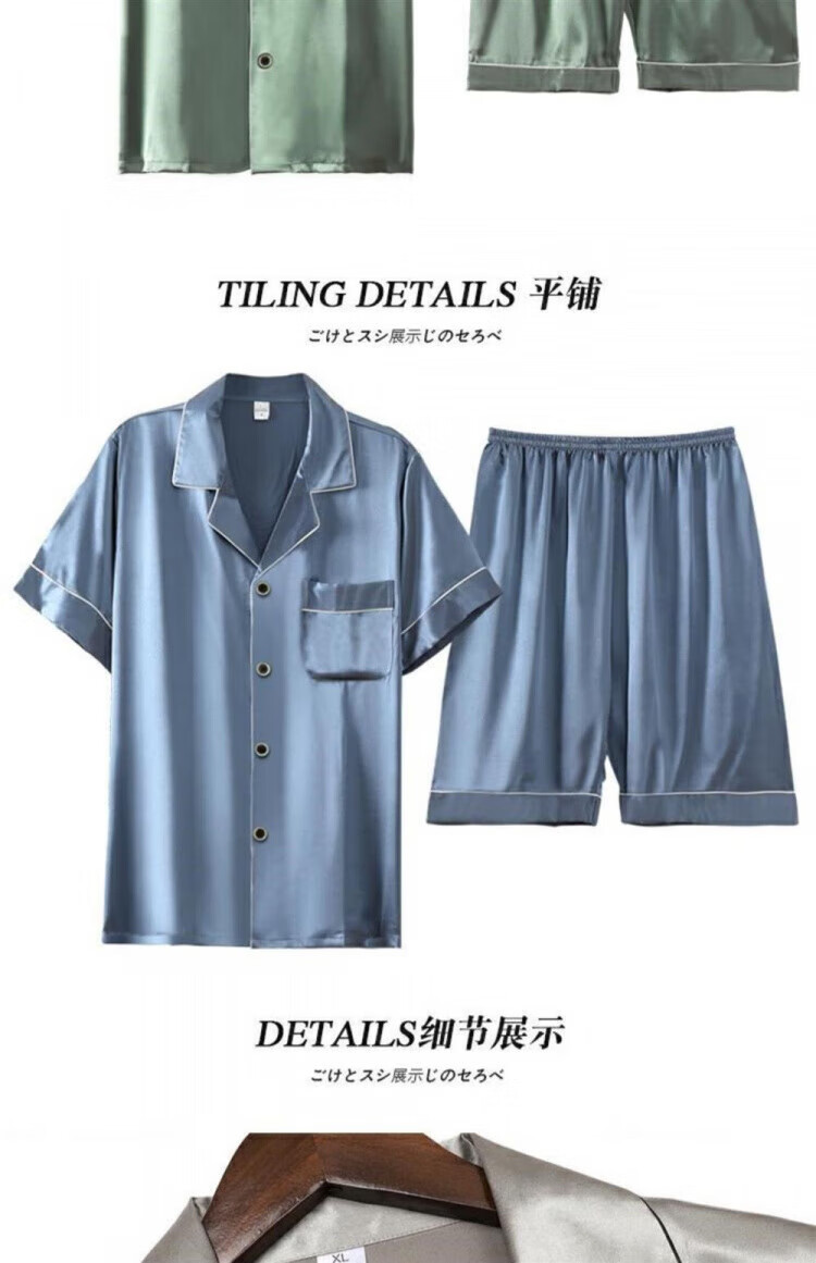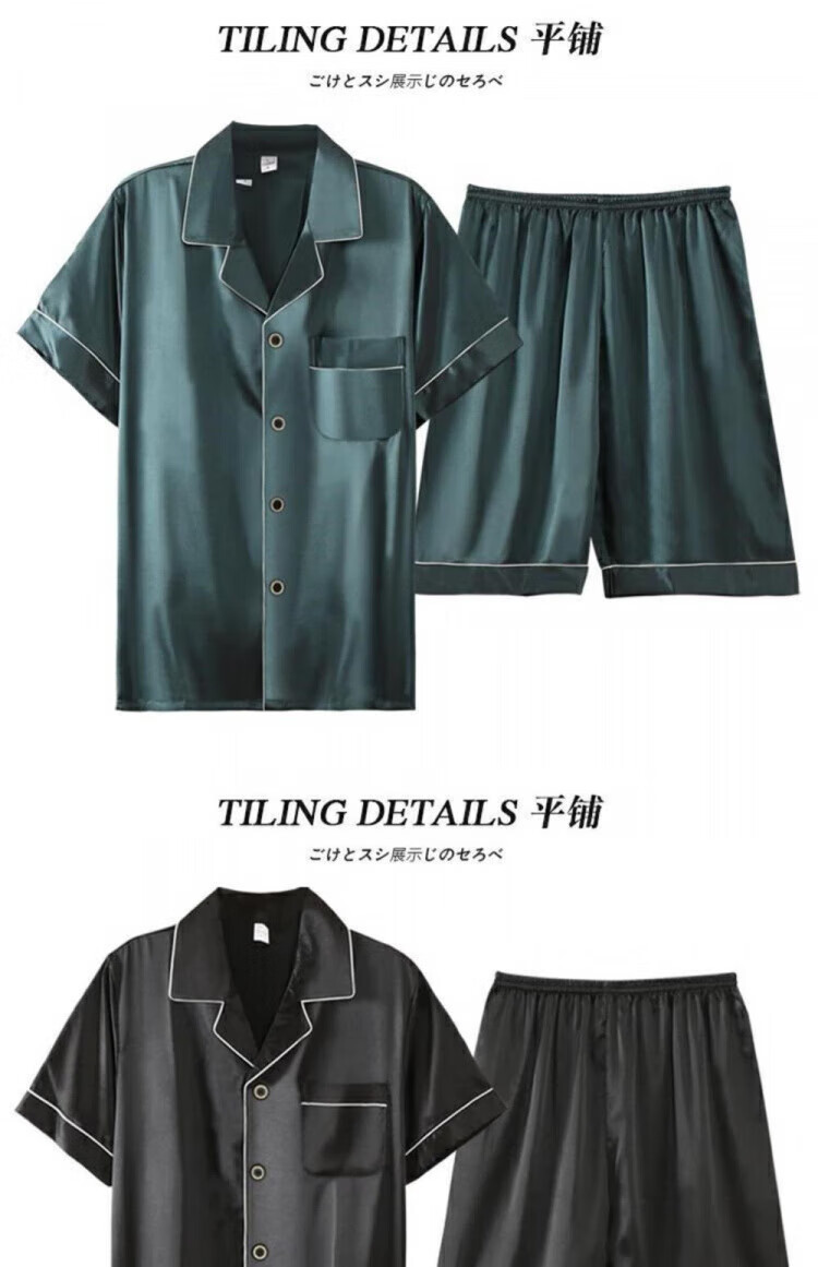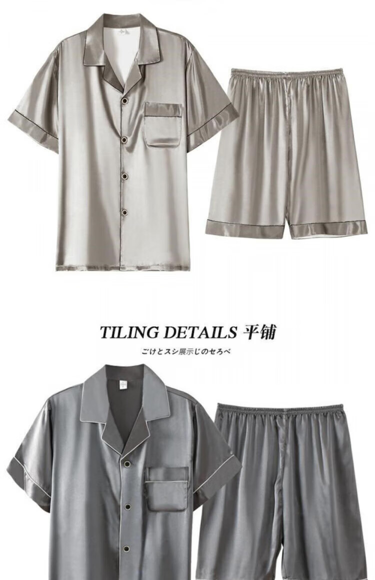 Yalu silk pajamas for men summer thin short-sleeved shorts large size silk home clothes set dark gray 6630 2XL