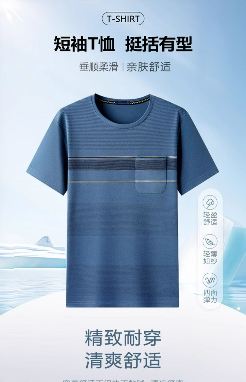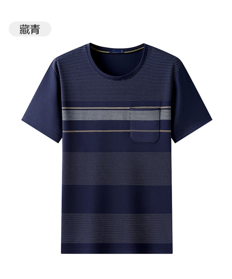 Kangaroo 7A men's summer striped casual short-sleeved T-shirt middle-aged and elderly dad summer round-neck T-shirt 691 Navy One size m80-110Jin Jin equals 0.5 kg