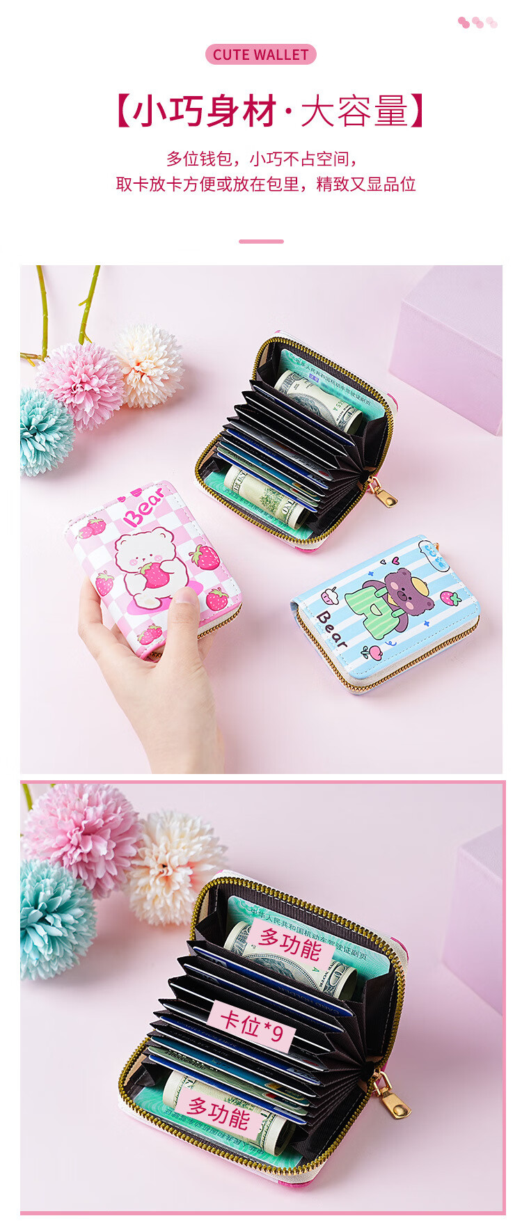 0.01 after new coupon, zipper card holder for women, multiple card slots, anti-degaussing, cute cartoon bank card, credit card zero, style 1
