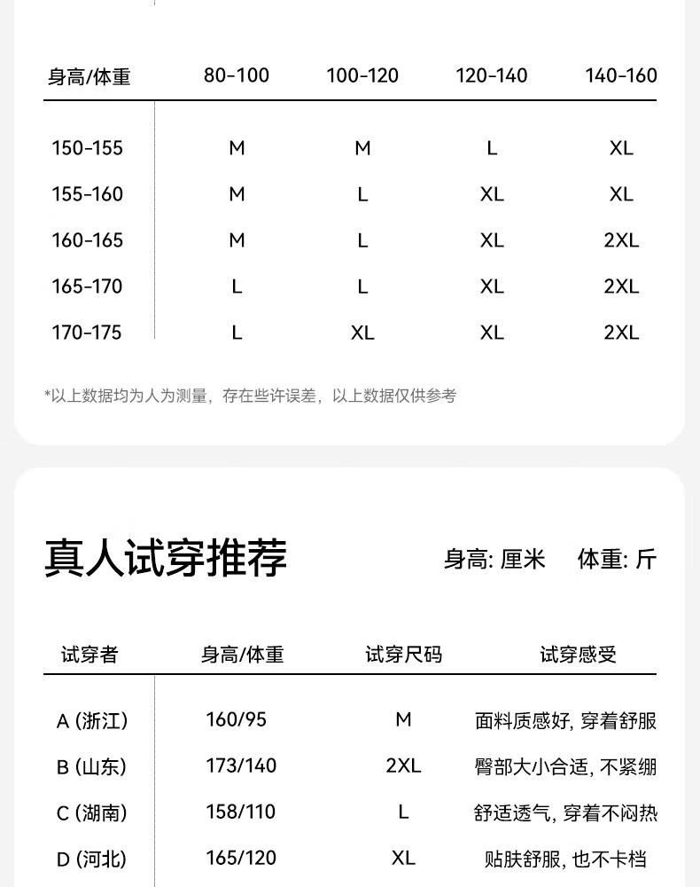 China (cm) 160-165/84-86 165-170 / 88-90 167-172 / 92-96 168-173 / 98-102 170-176 / 106-110
