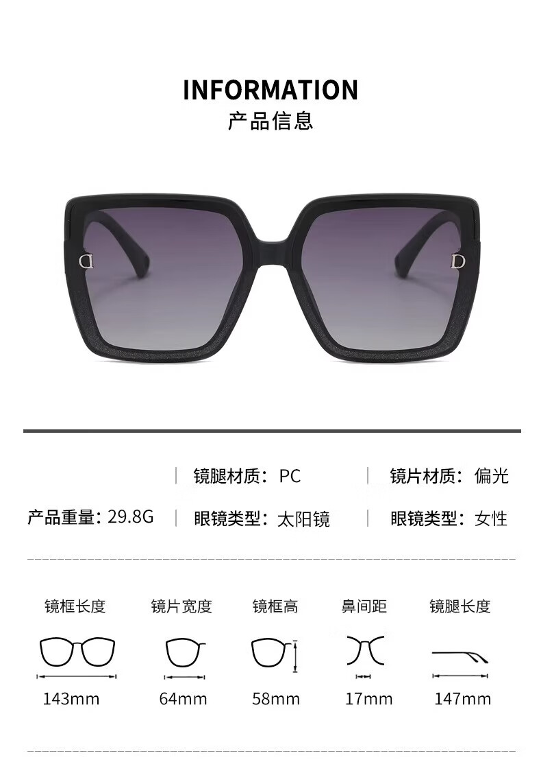 CONCISE KITE sunglasses for women, anti-UV polarized driving, non-slip sunshade sunglasses, women's glasses, high-end, small face, black
