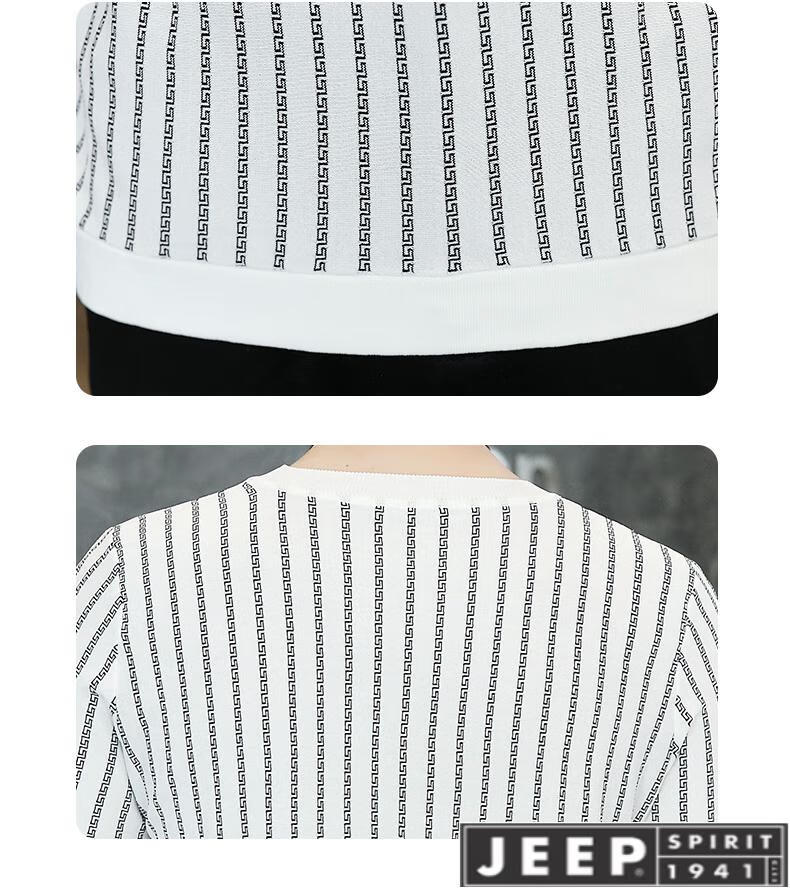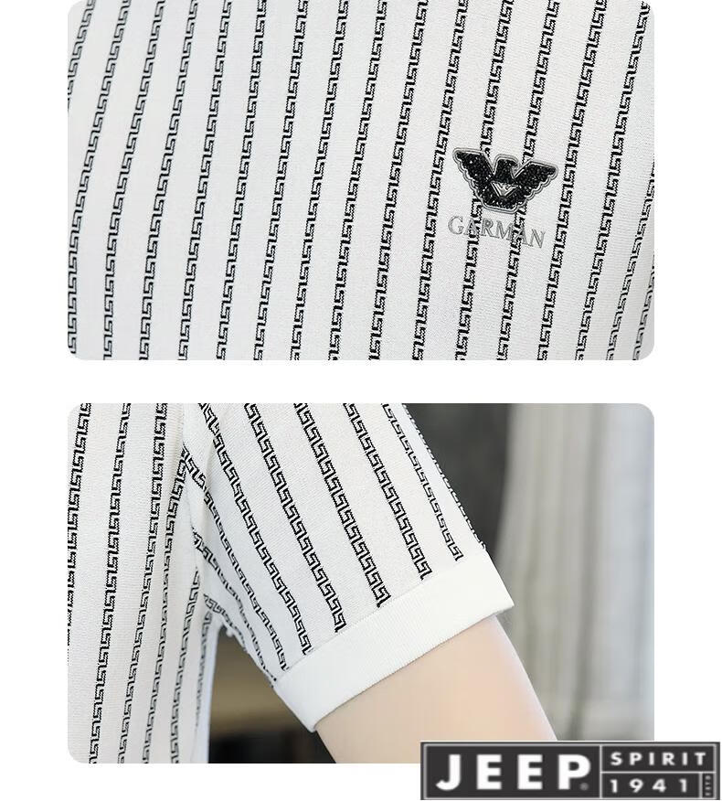JEEP高档条纹短袖t恤夏季高端潮牌休闲半袖T恤冰丝透气欧货男装上衣男 B黑色6623 1-6-58 M