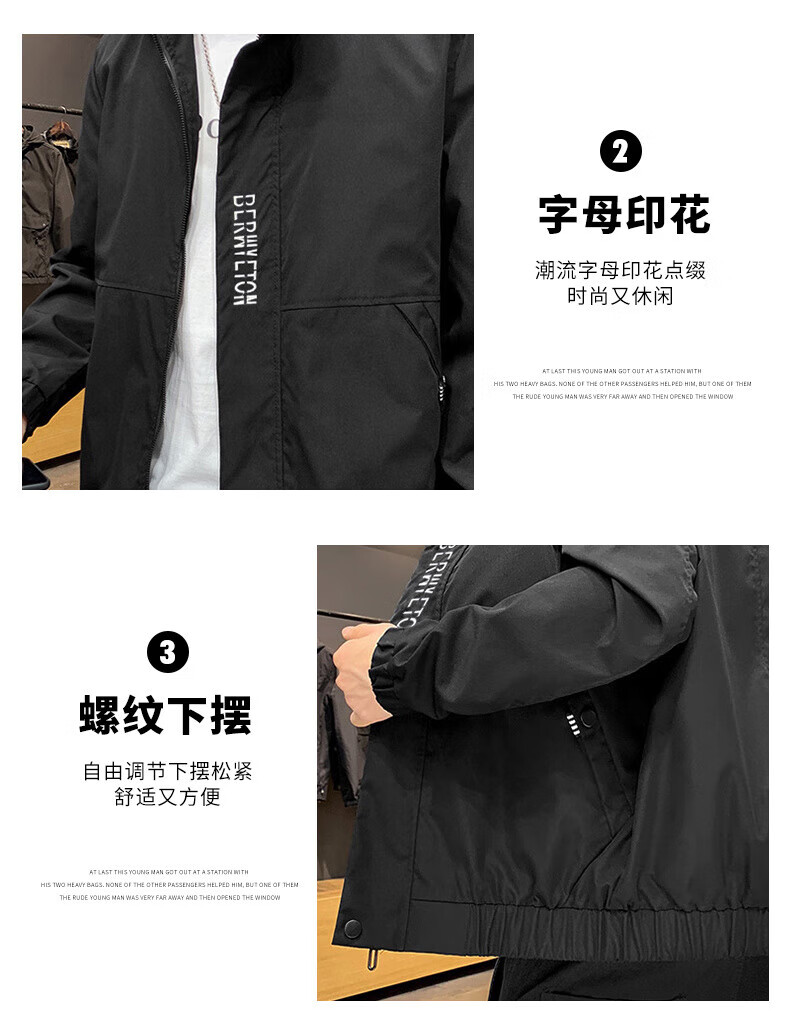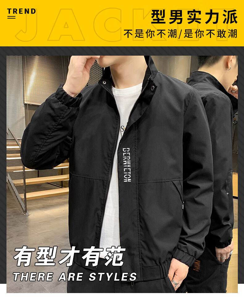 胖东来夹克男士外套2022新款春秋季立领潮流工装百搭加绒冬 6189黑色【春秋款】 M