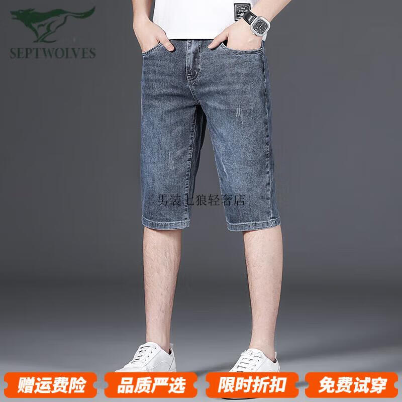 Septwolves pantalones cortos de mezclilla para hombre, pantalones de longitud media, delgados, delgados, rectos, elásticos, 2025, nuevos pantalones casuales de verano de tres cuartos 679 azul 28