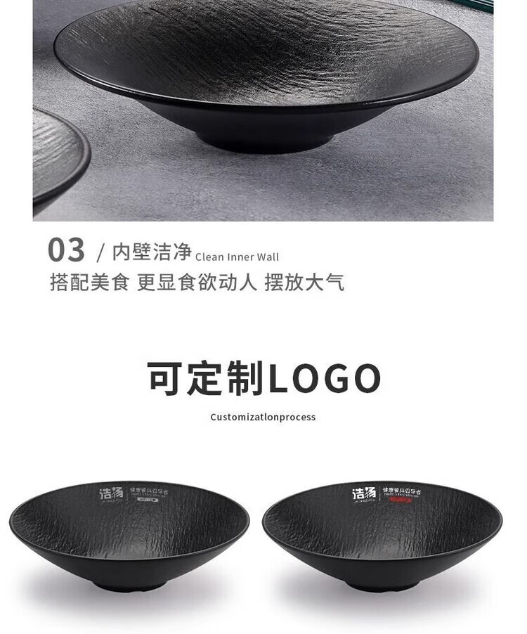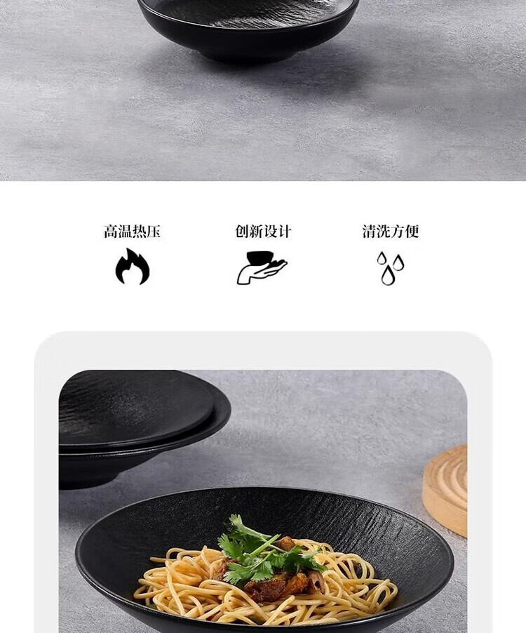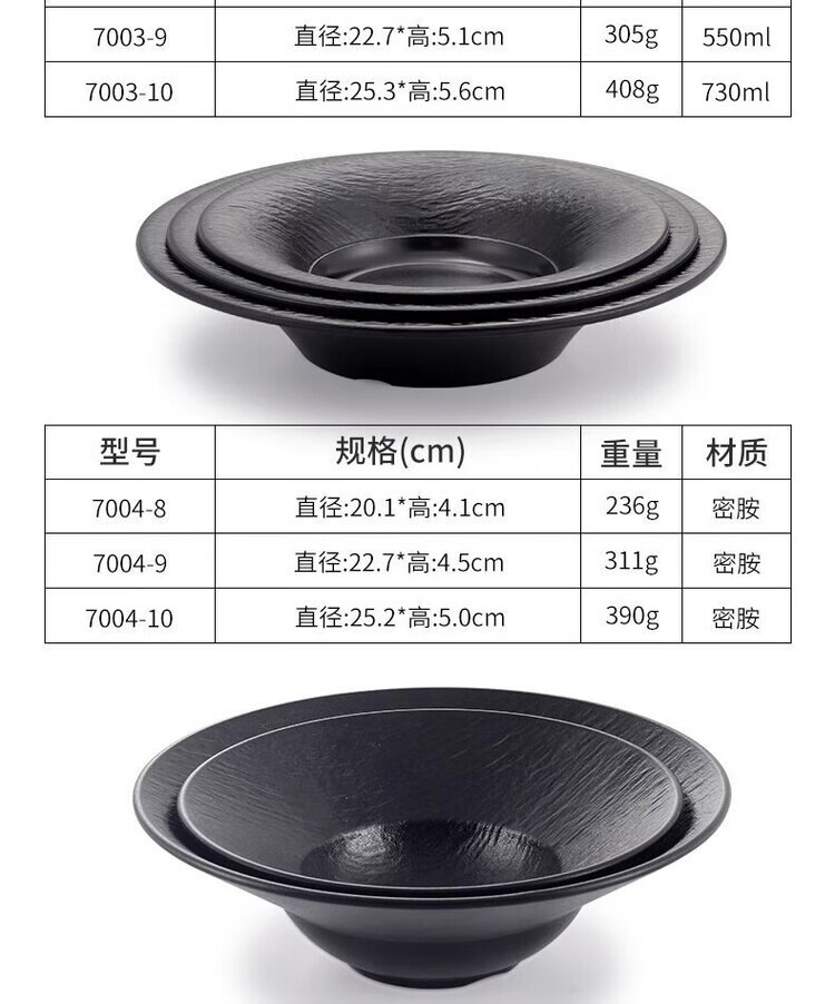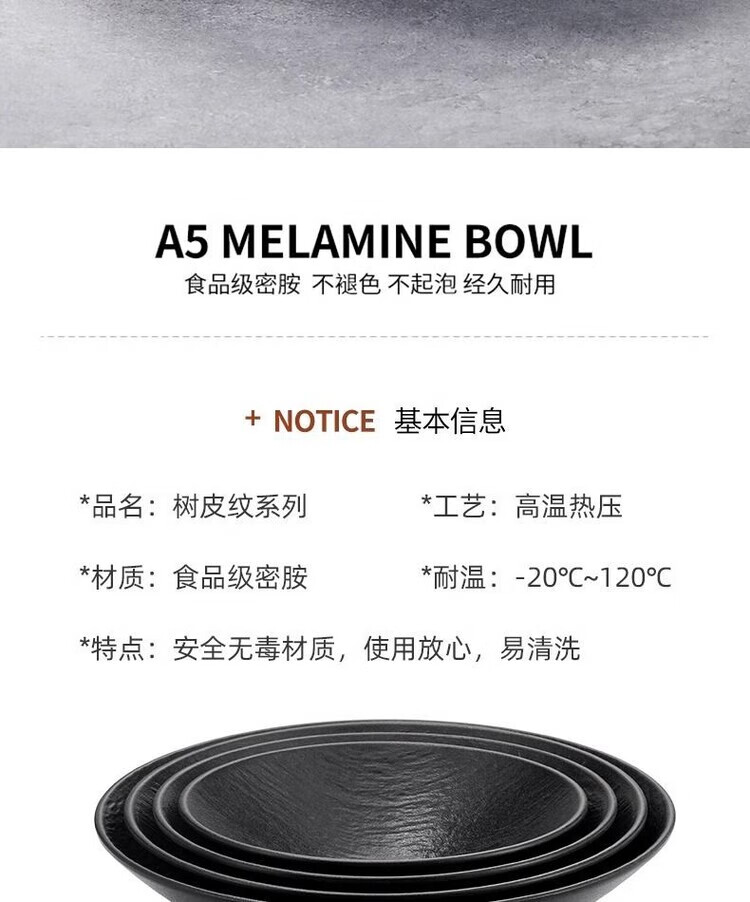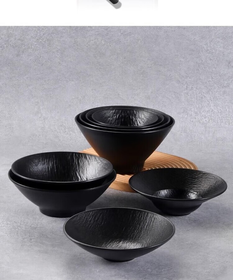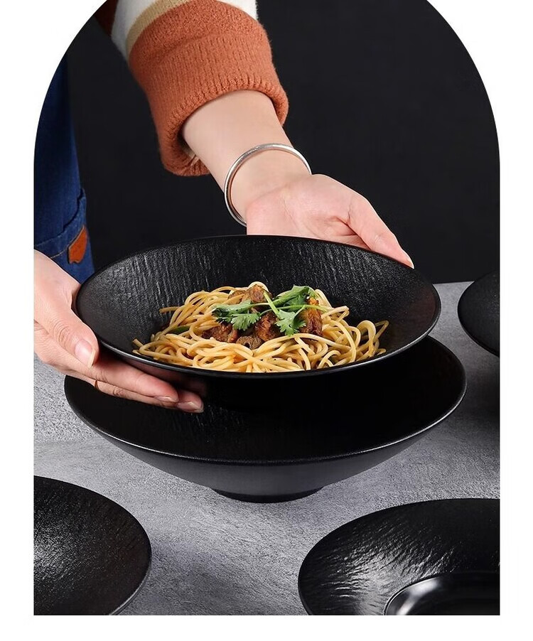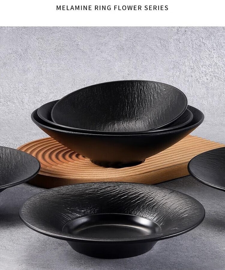 柏登居密胺餐具浅口碗拌面碗沙拉碗黑色日式斗笠碗面碗汤碗饭碗商用塑料 7029-62 黑色树皮纹 0英寸 可定制店铺专属LOGO