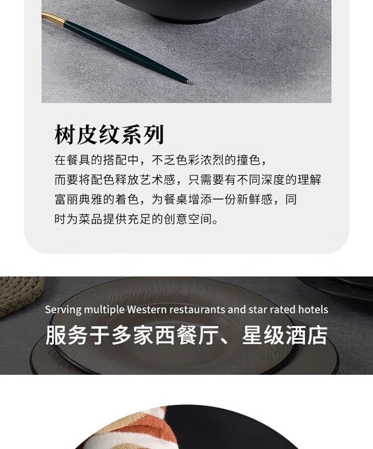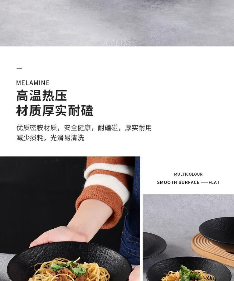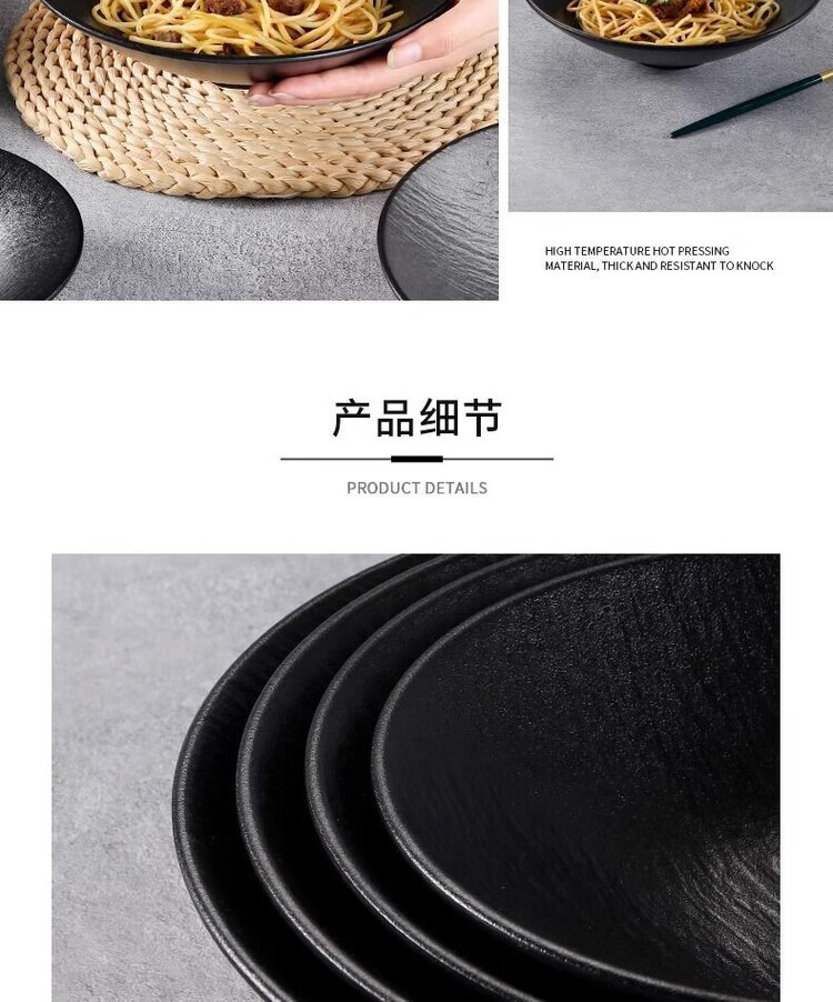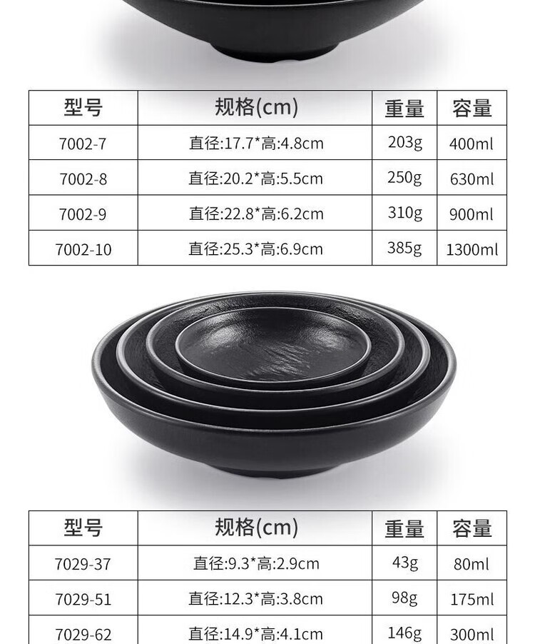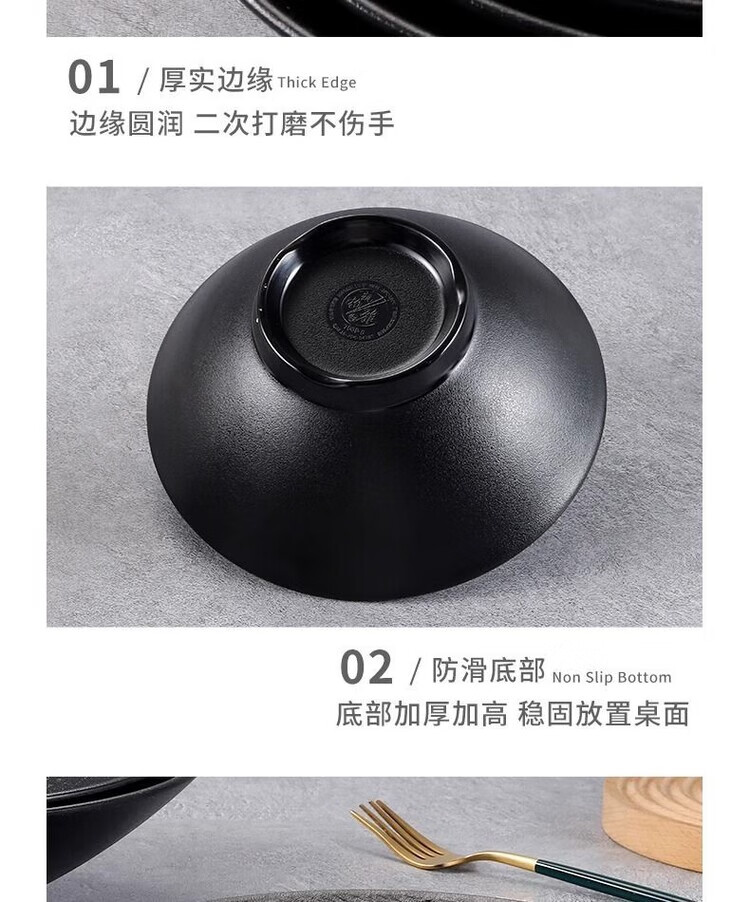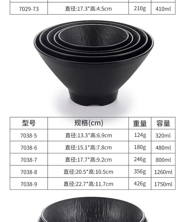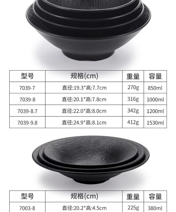 柏登居密胺餐具浅口碗拌面碗沙拉碗黑色日式斗笠碗面碗汤碗饭碗商用塑料 7029-62 黑色树皮纹 0英寸 可定制店铺专属LOGO