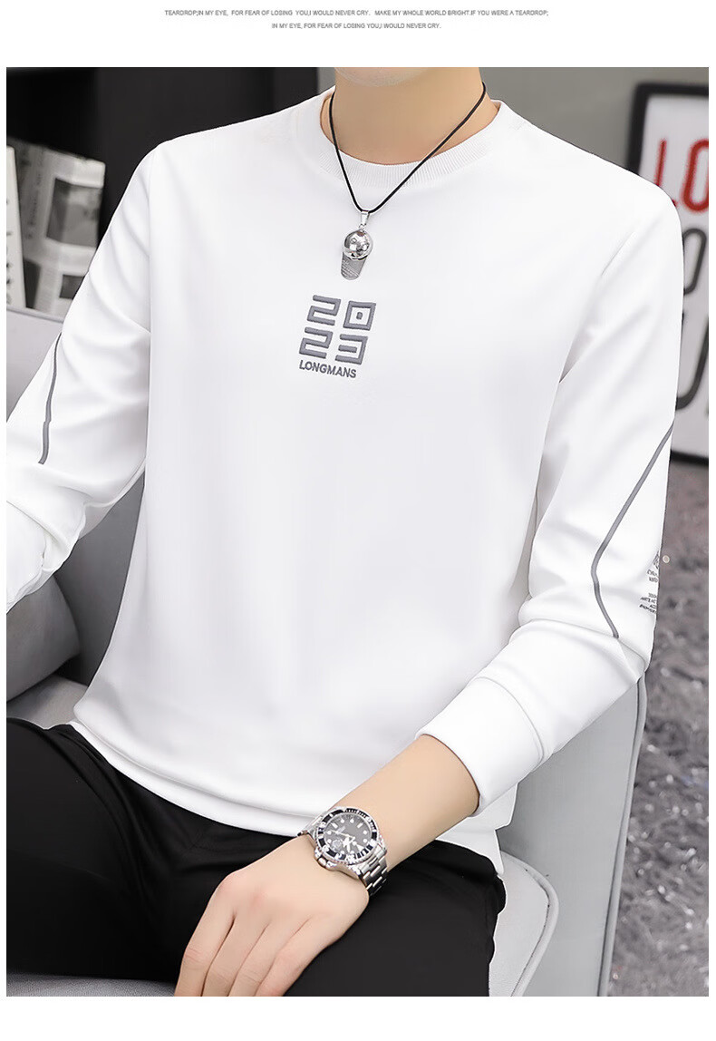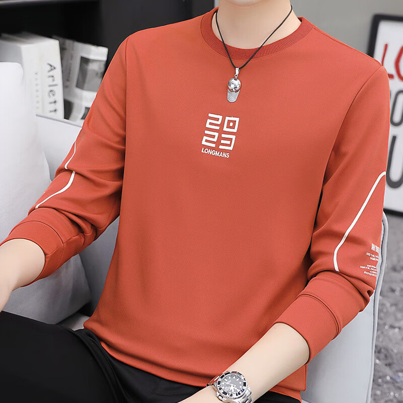 Changluzhu Sweat-Shirt Mince pour Hommes Printemps et Automne Nouvelle Chemise à Col Rond Mode Jeunes et d'âge Moyen T-Shirt à Manches Longues Tendance Polyvalente Caramel XQ9905 Pas de Velours L