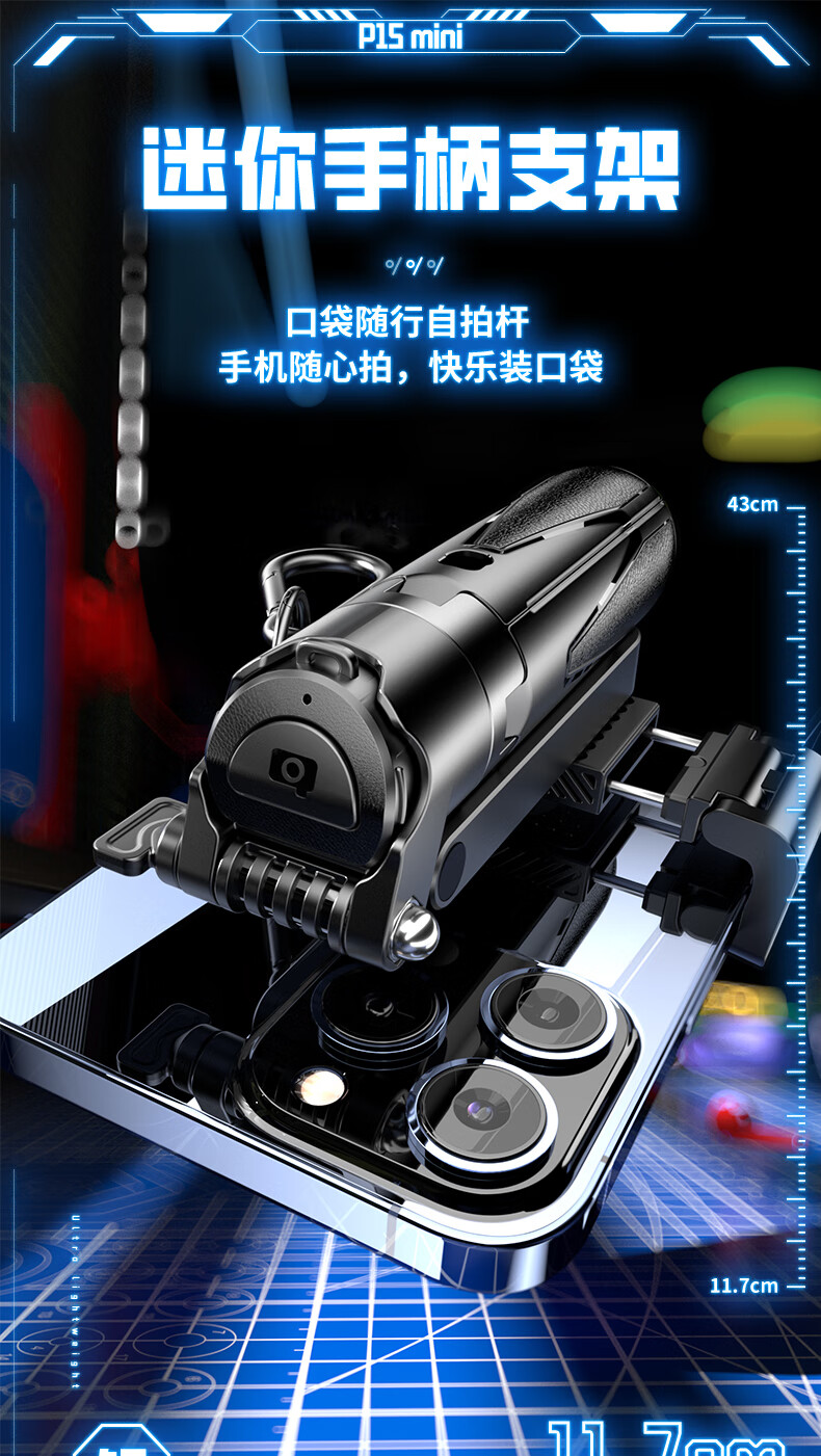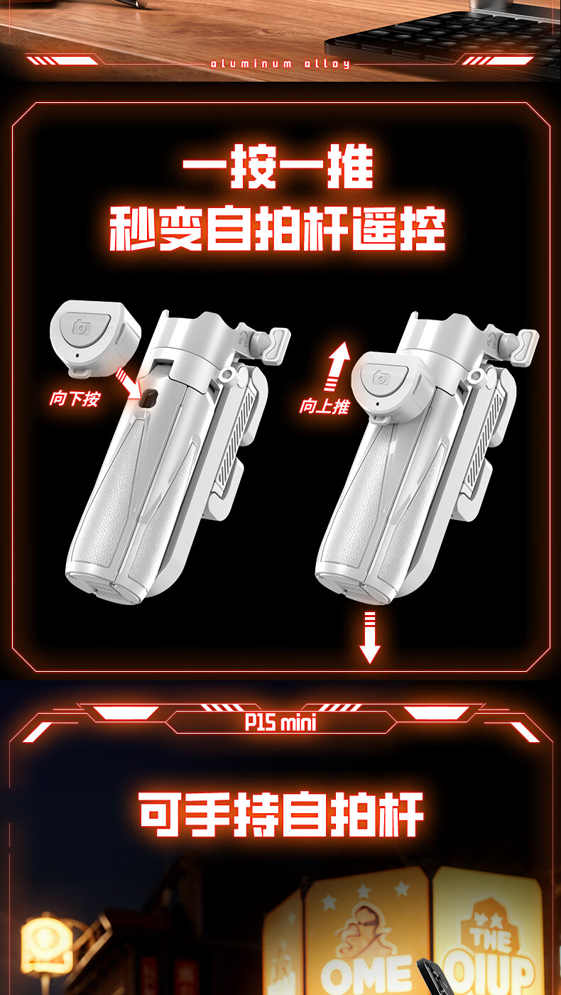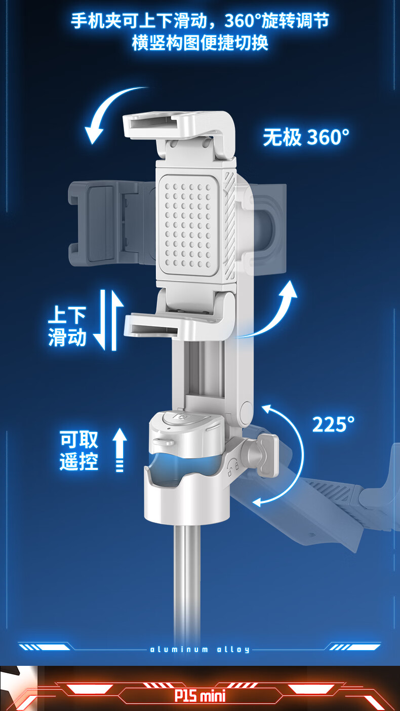 逗映(FUNSNAP)新款通用迷你自拍杆落地四脚支架360度旋转拍摄拍照神器多功能手持蓝牙铝合金mini自拍杆 【黑色基础款】手持桌面单柄助拍+充电蓝牙遥控器